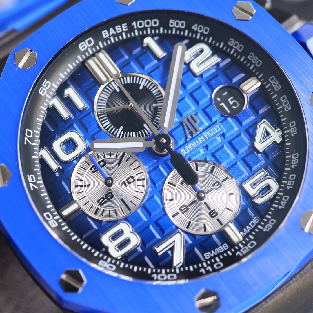 这款手表是AAAAA 1:1 质量 (非常棒). 使用了和原版一模一样的材料. 商标部分也保持了和爱彼/Audemars Piguet一样. 图片拍摄是实物手表拍摄, 您所收到的实物保证和我们图片一模一样.