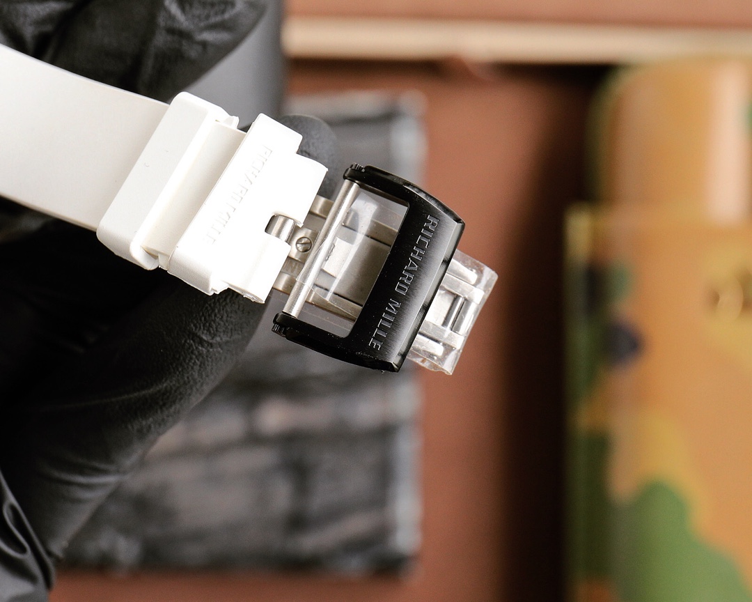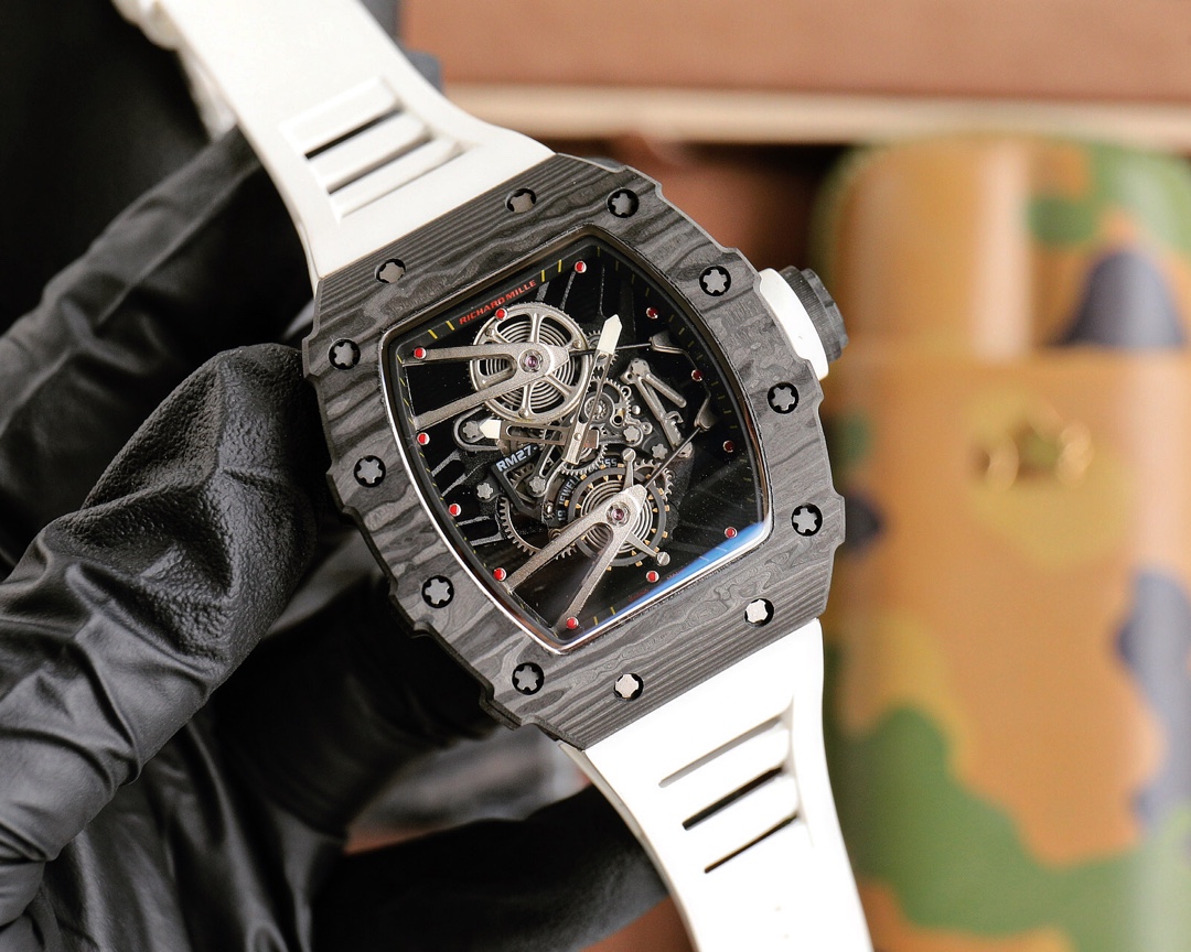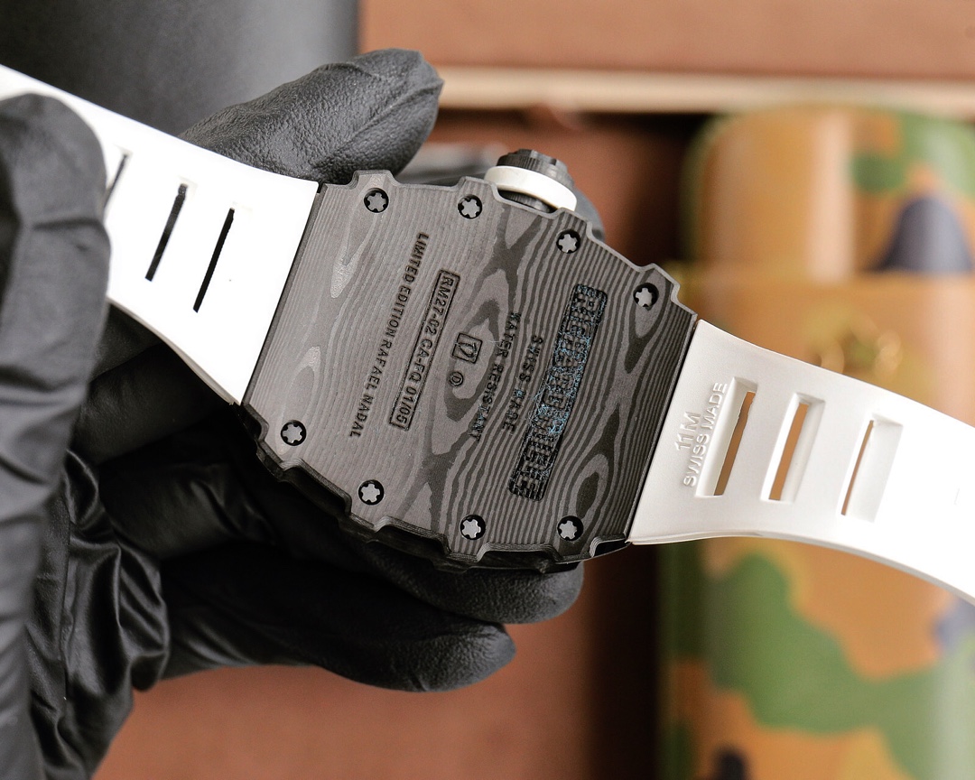 这款手表是AAAAA 1:1 质量 (非常棒). 使用了和原版一模一样的材料. 商标部分也保持了和理查德·米尔/Richard Mille一样. 图片拍摄是实物手表拍摄, 您所收到的实物保证和我们图片一模一样.