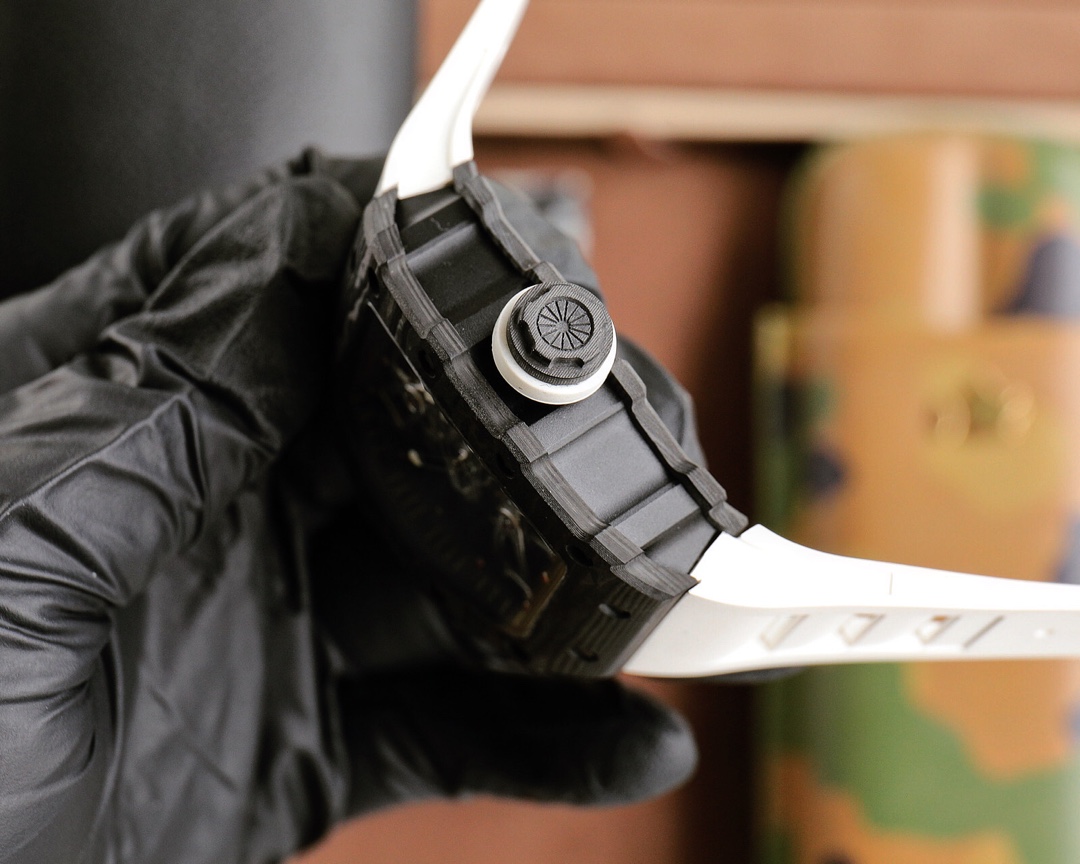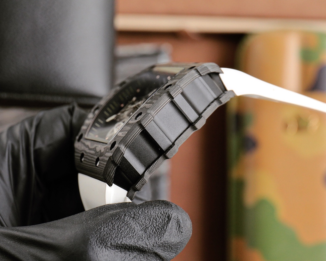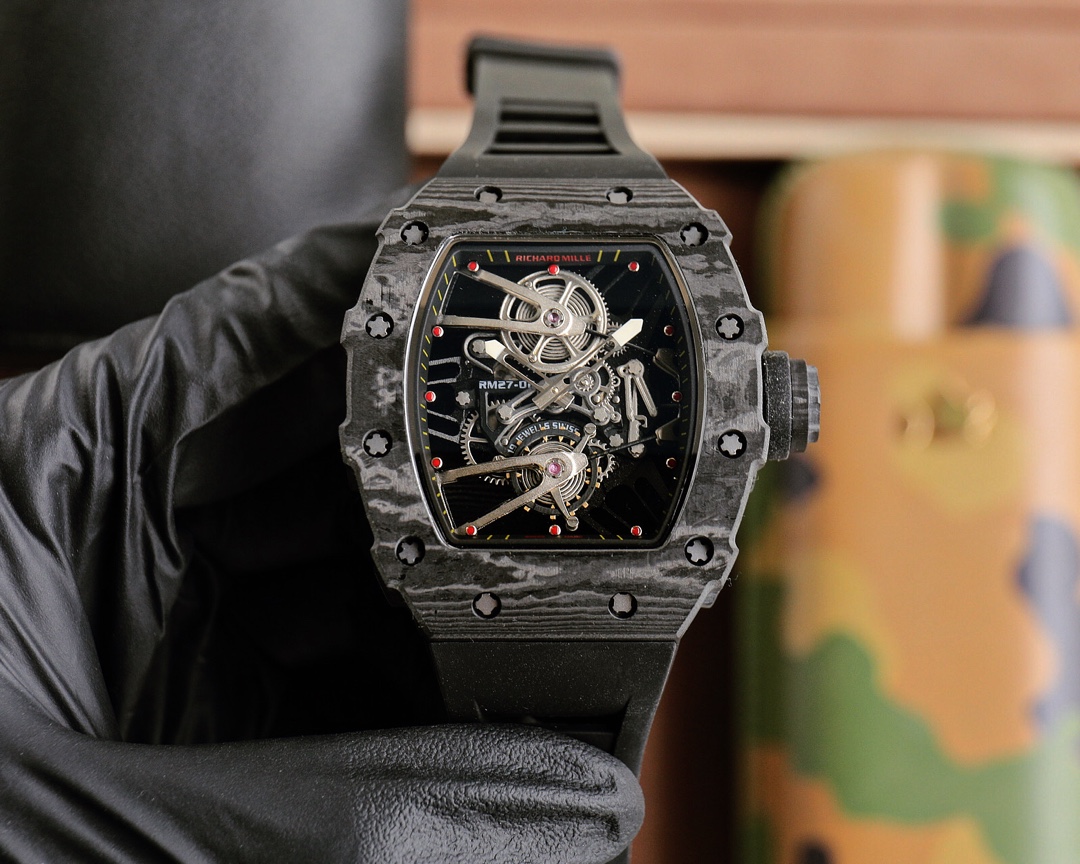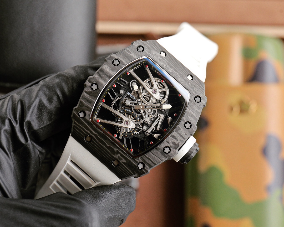 这款手表是AAAAA 1:1 质量 (非常棒). 使用了和原版一模一样的材料. 商标部分也保持了和理查德·米尔/Richard Mille一样. 图片拍摄是实物手表拍摄, 您所收到的实物保证和我们图片一模一样.