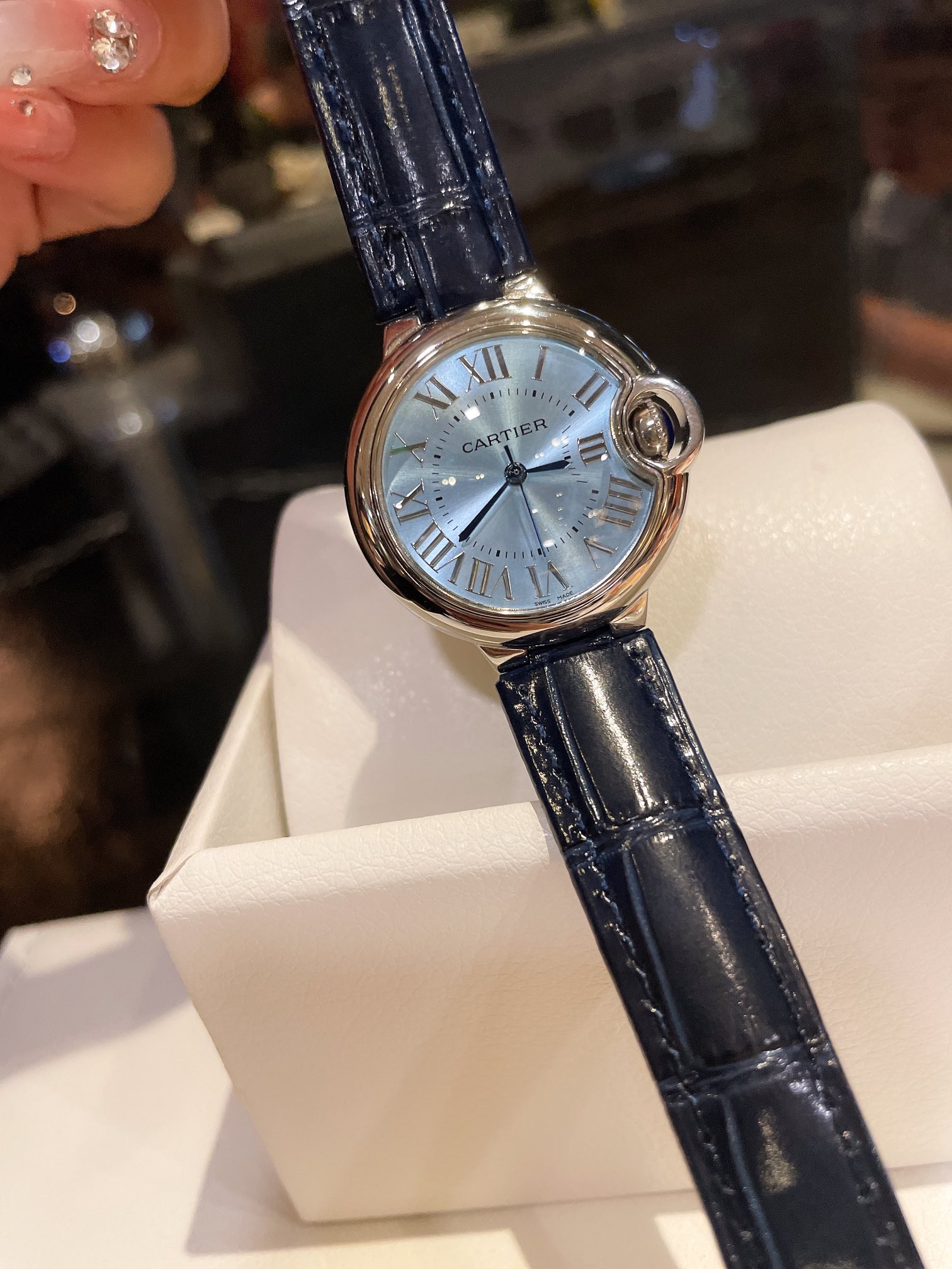 这款手表是AAAAA 1:1 质量 (非常棒). 使用了和原版一模一样的材料. 商标部分也保持了和卡地亚/Cartier一样. 图片拍摄是实物手表拍摄, 您所收到的实物保证和我们图片一模一样.