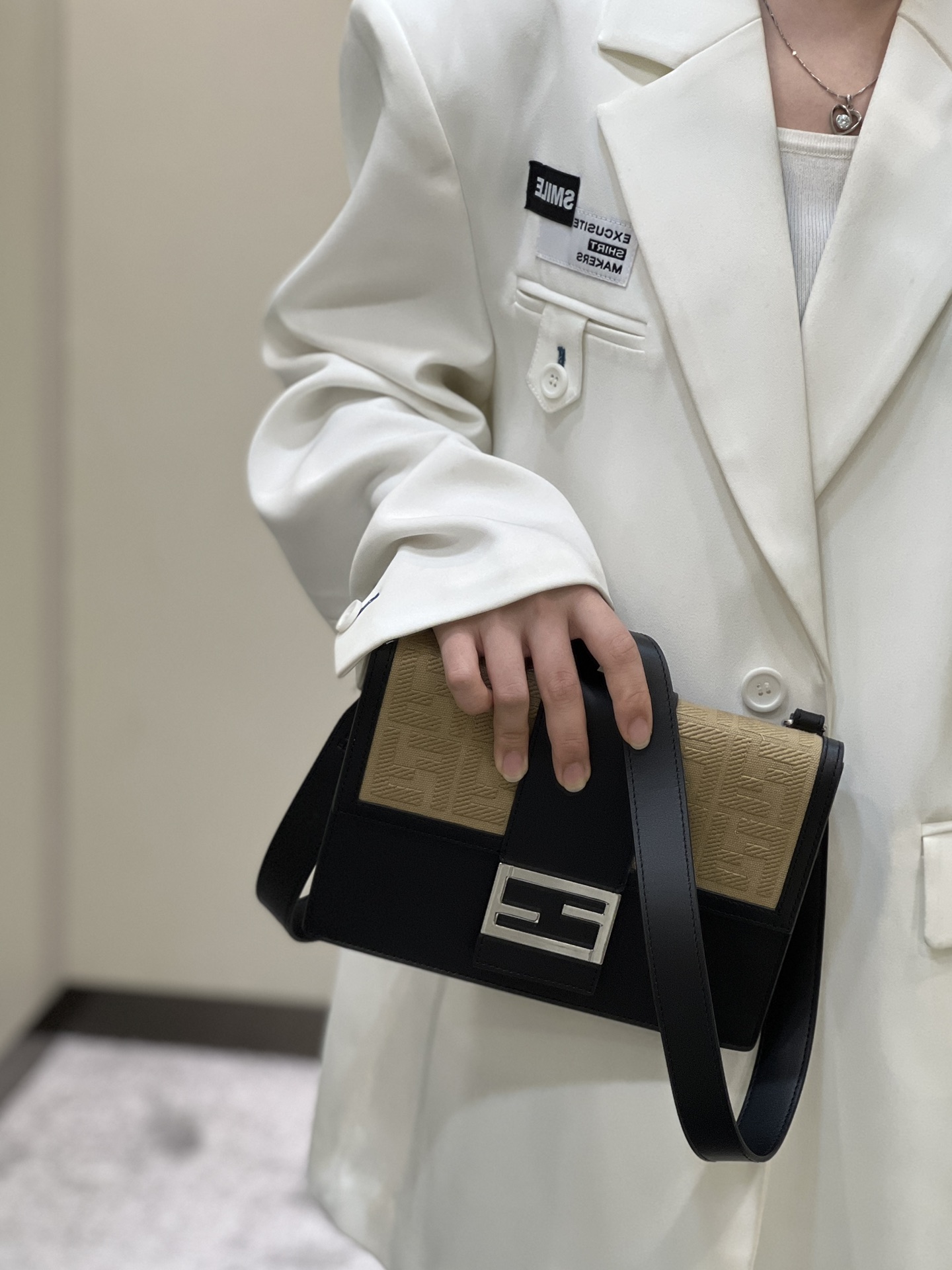 这款包包是AAAAA 1:1 质量 (非常棒). 使用了和原版一模一样的材料. 商标部分也保持了和芬迪/Fendi一样. 图片拍摄是实物包包拍摄, 您所收到的实物保证和我们图片一模一样.