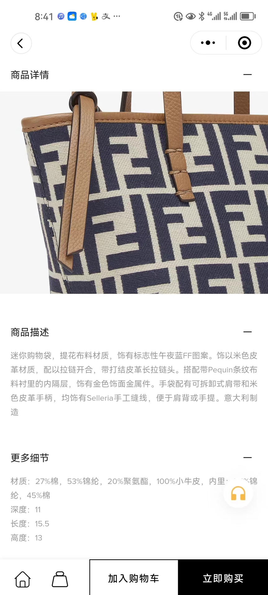 这款包包是AAAAA 1:1 质量 (非常棒). 使用了和原版一模一样的材料. 商标部分也保持了和芬迪/Fendi一样. 图片拍摄是实物包包拍摄, 您所收到的实物保证和我们图片一模一样.