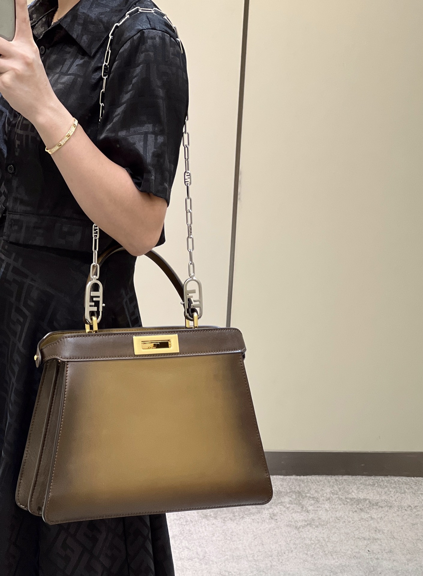 这款包包是AAAAA 1:1 质量 (非常棒). 使用了和原版一模一样的材料. 商标部分也保持了和芬迪/Fendi一样. 图片拍摄是实物包包拍摄, 您所收到的实物保证和我们图片一模一样.