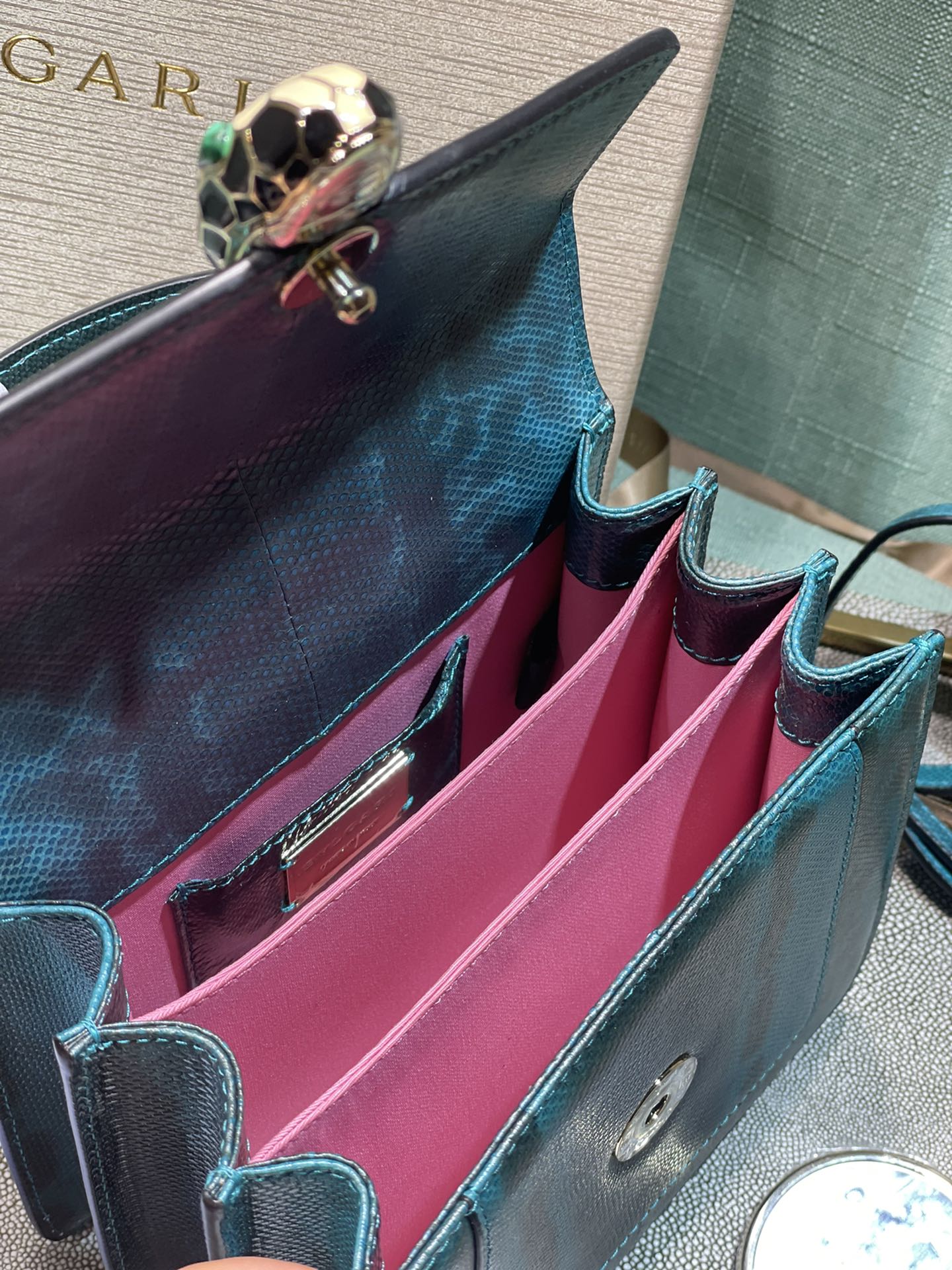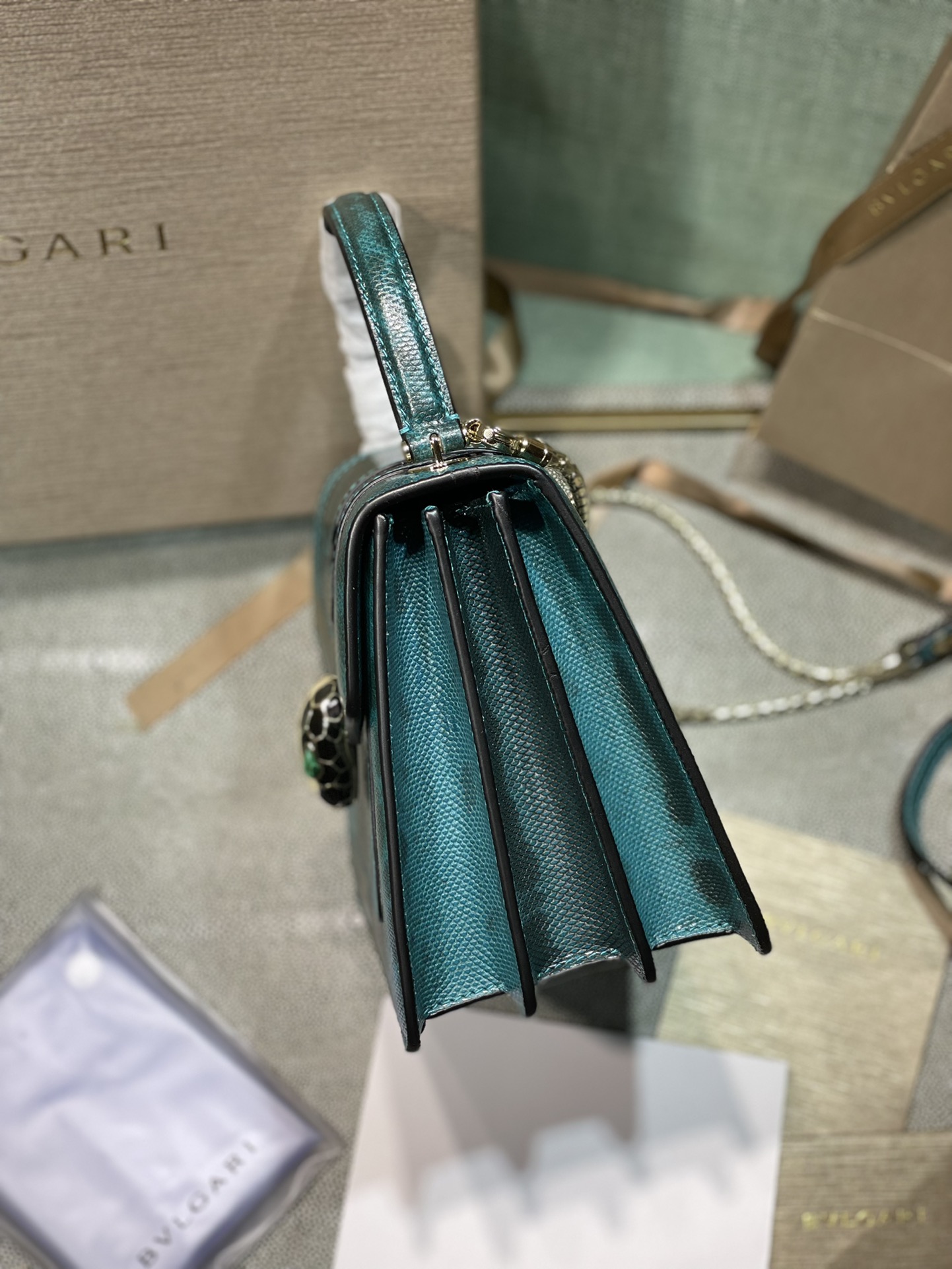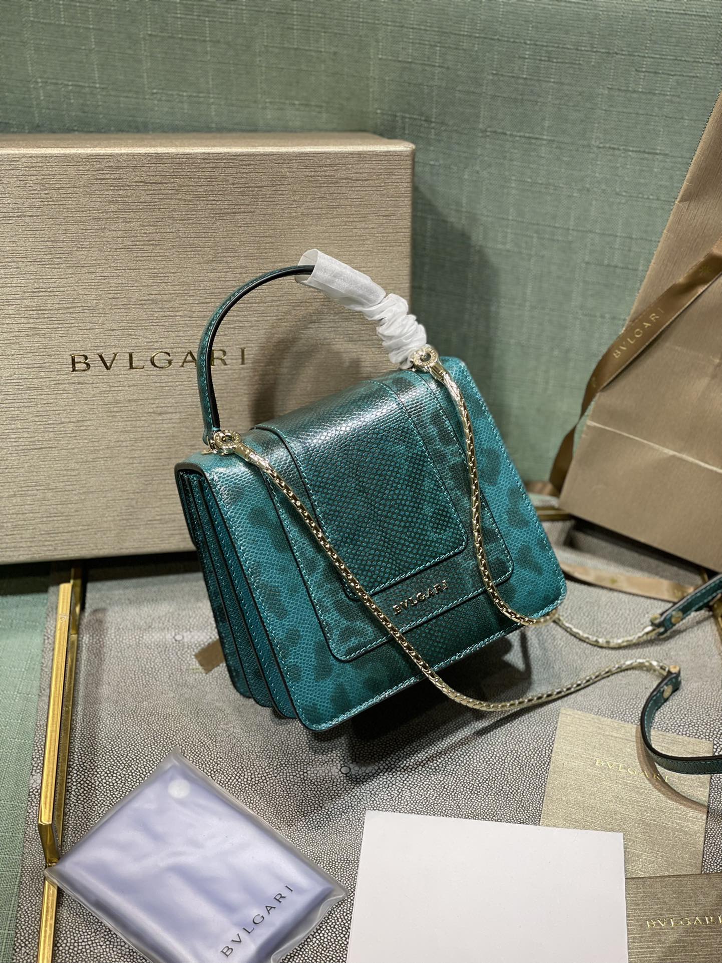 这款包包是AAAAA 1:1 质量 (非常棒). 使用了和原版一模一样的材料. 商标部分也保持了和宝格丽/Bulgari一样. 图片拍摄是实物包包拍摄, 您所收到的实物保证和我们图片一模一样.