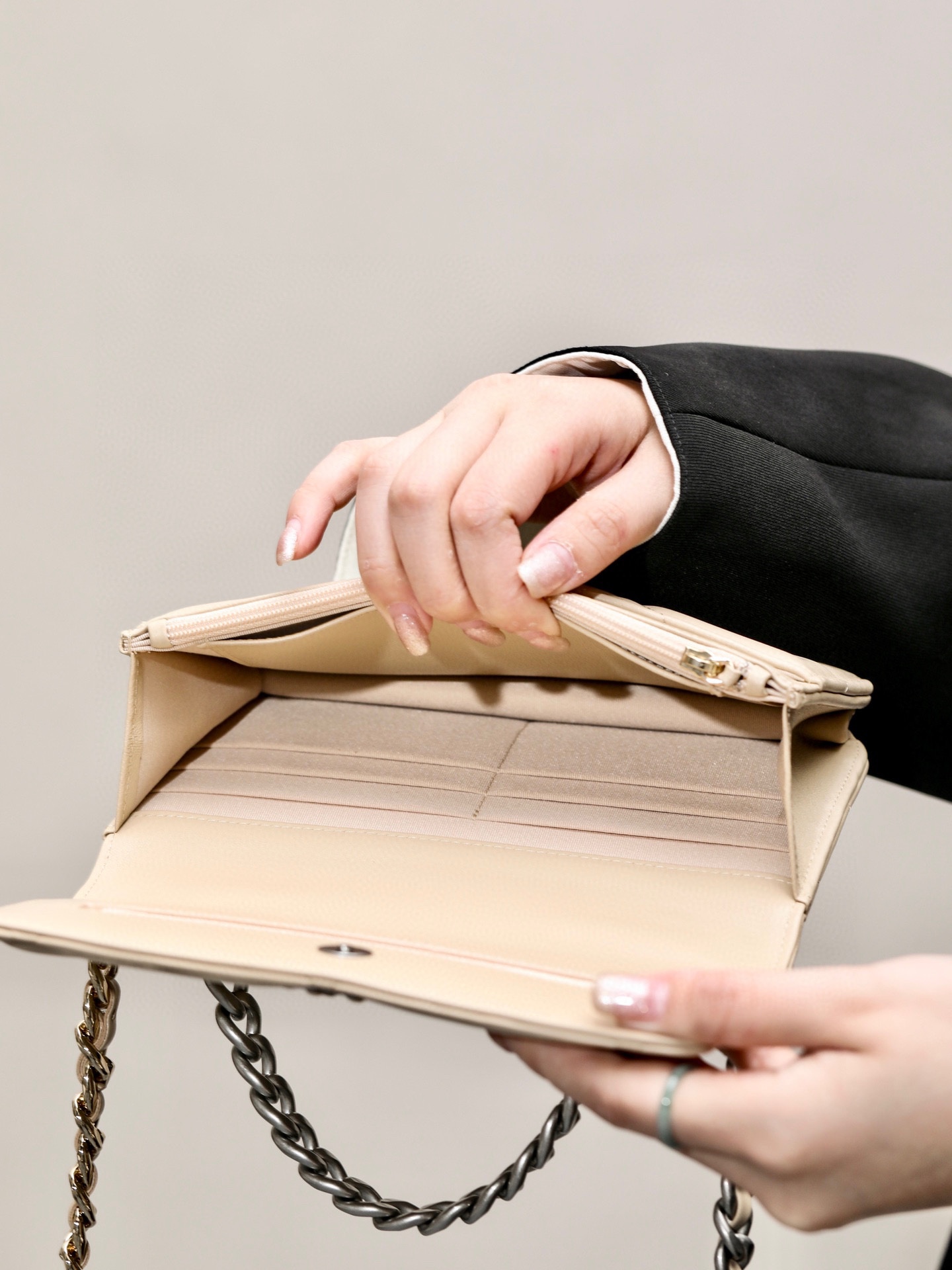这款包包是AAAAA 1:1 质量 (非常棒). 使用了和原版一模一样的材料. 商标部分也保持了和香奈儿/Chanel一样. 图片拍摄是实物包包拍摄, 您所收到的实物保证和我们图片一模一样.