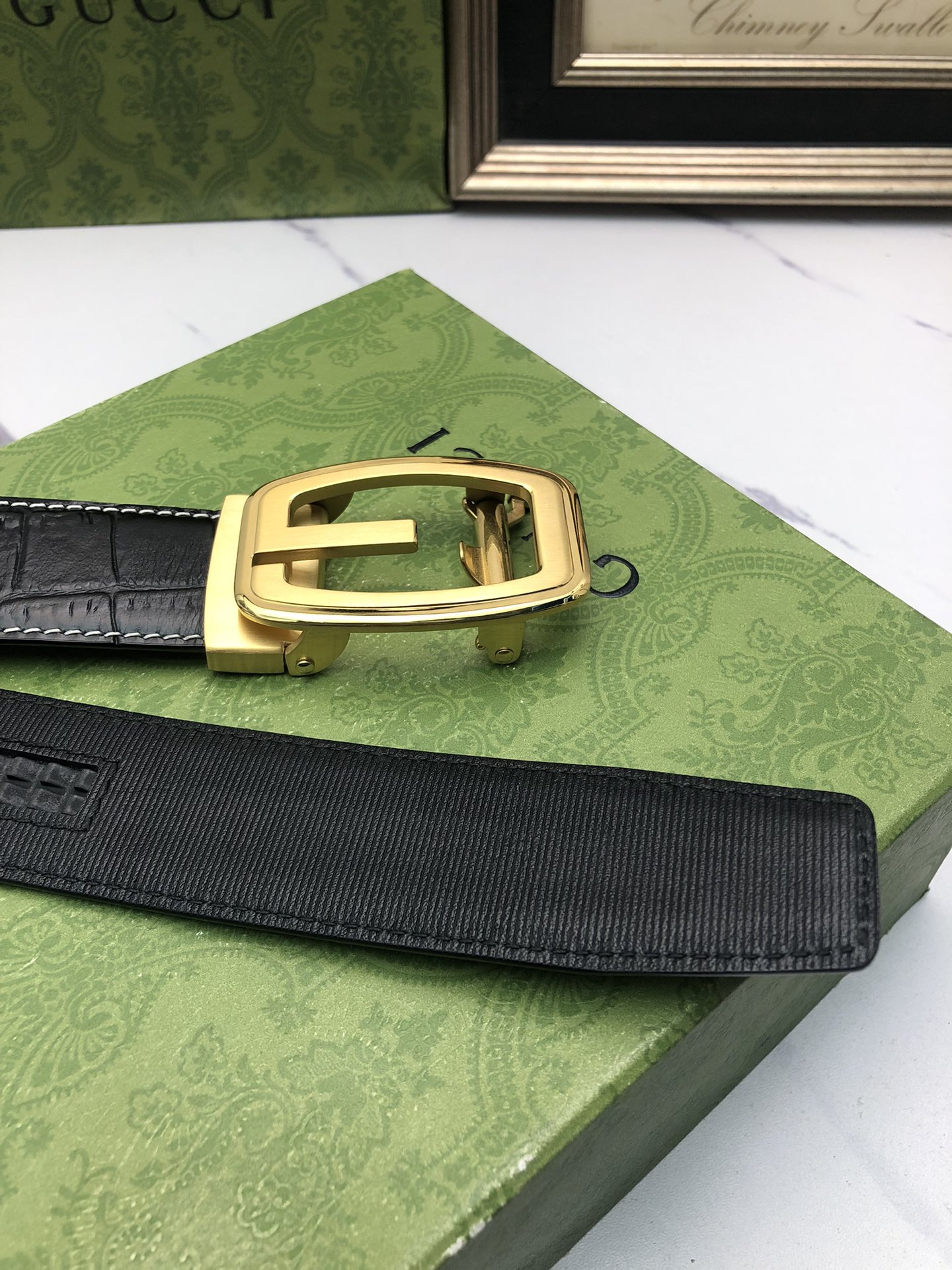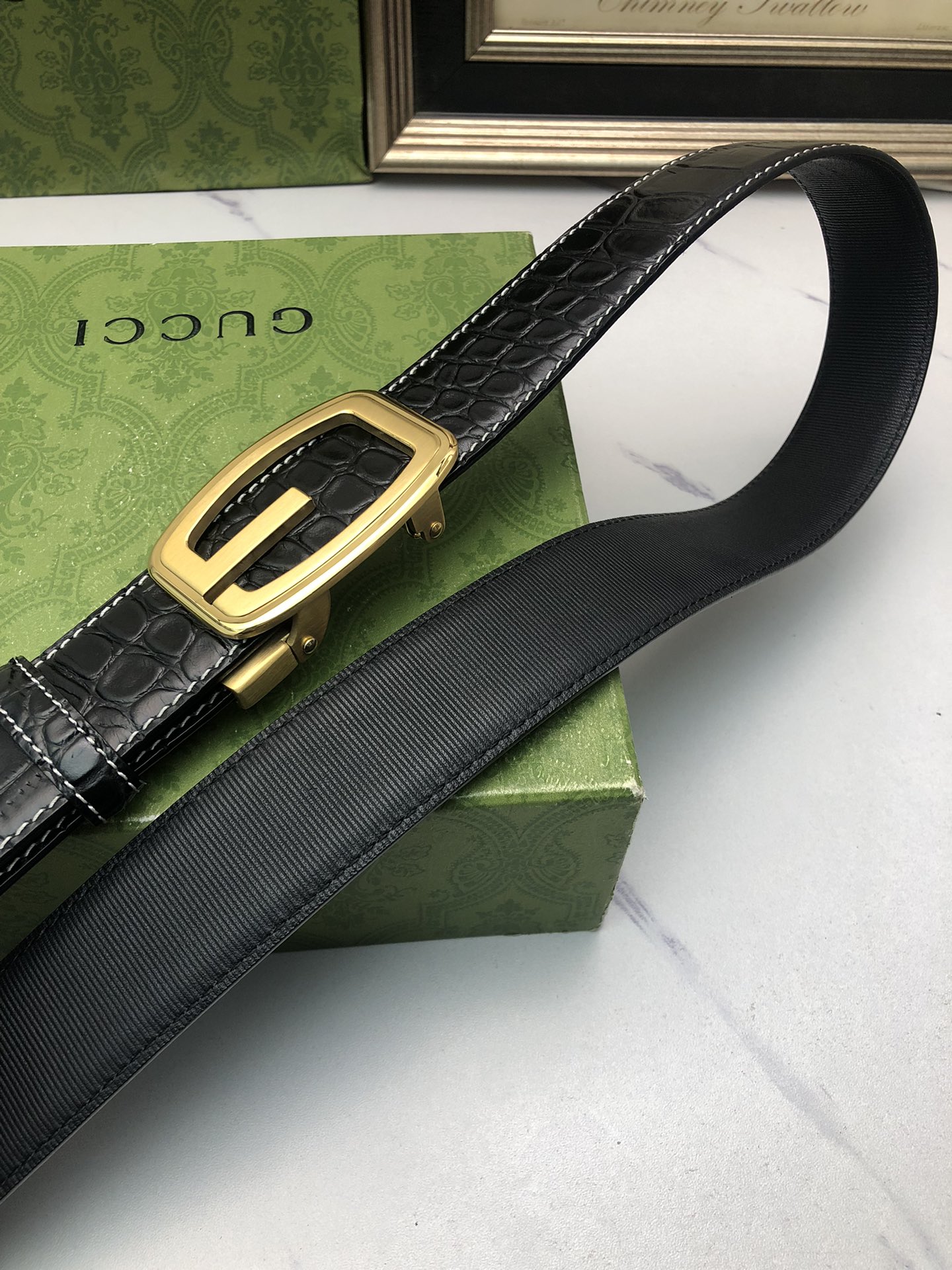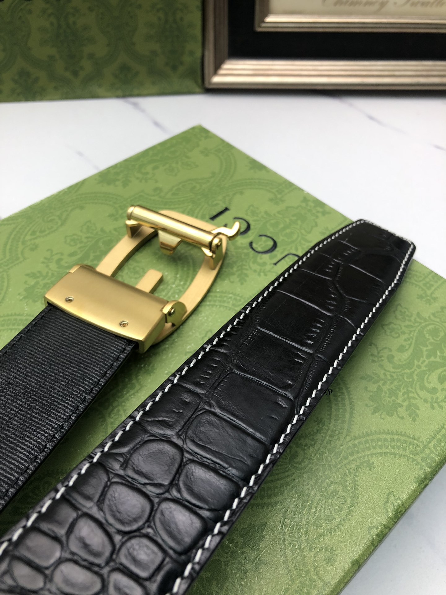 这款皮带是AAAAA 1:1 质量 (非常棒). 使用了和原版一模一样的材料. 商标部分也保持了和古奇/Gucci一样. 图片拍摄是实物皮带拍摄, 您所收到的实物保证和我们图片一模一样.
