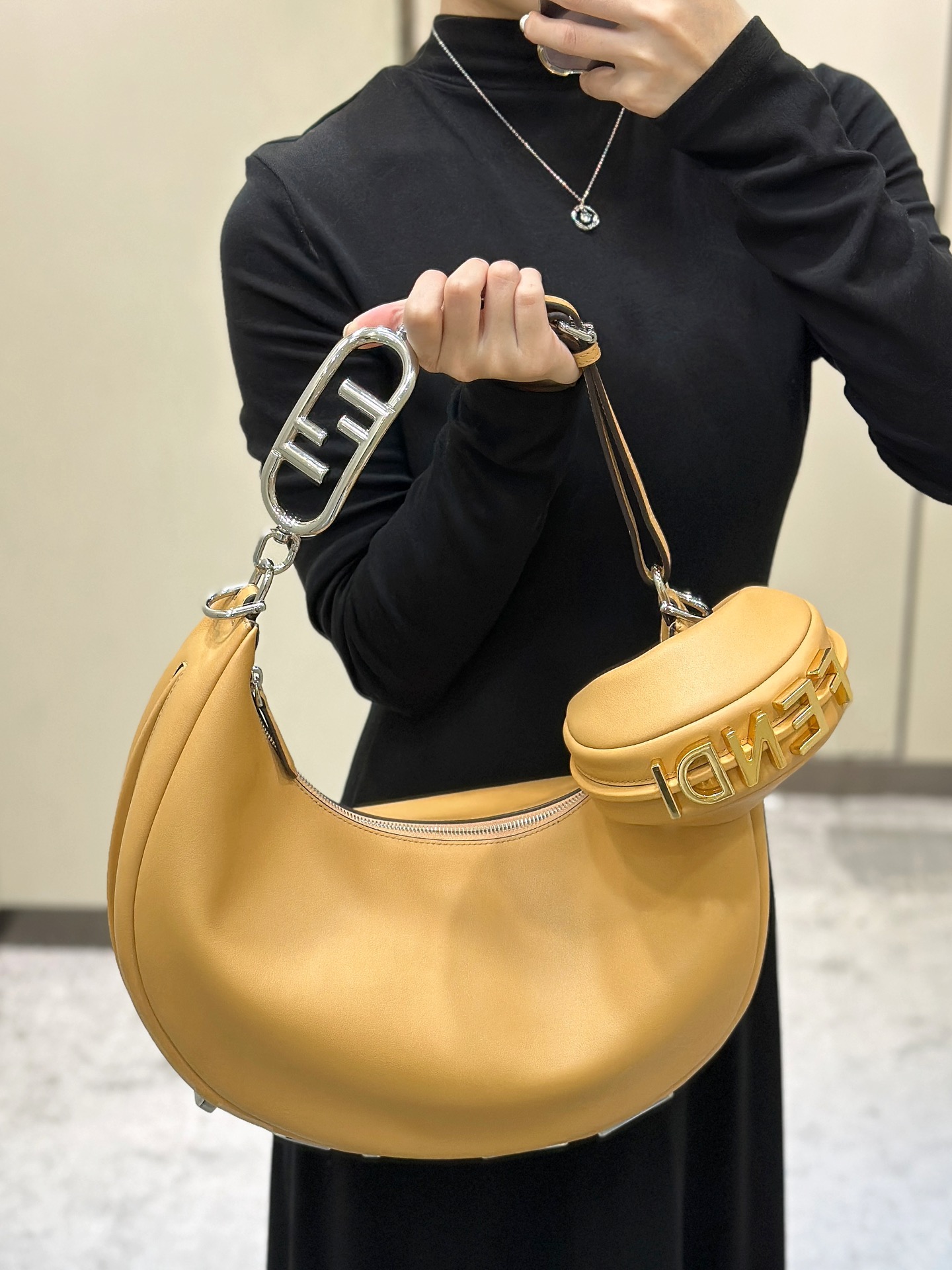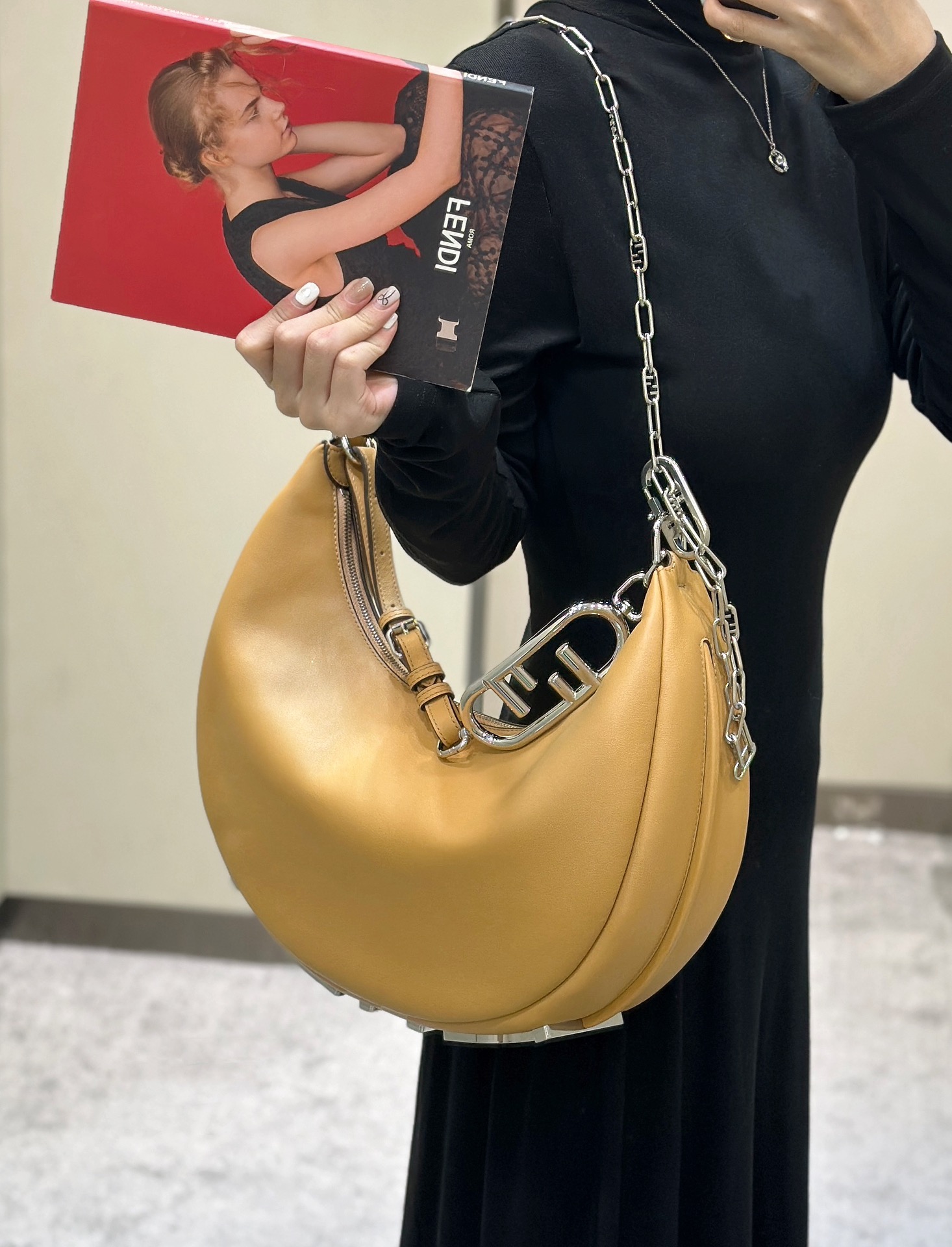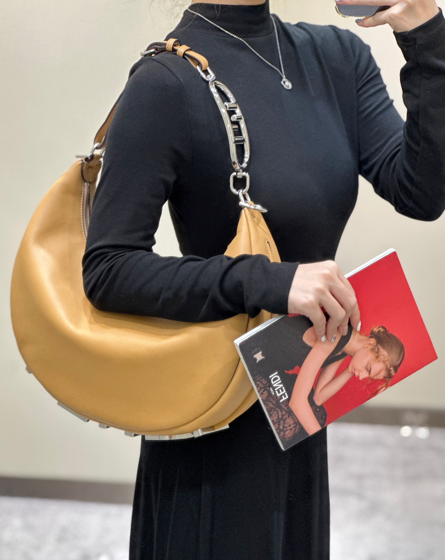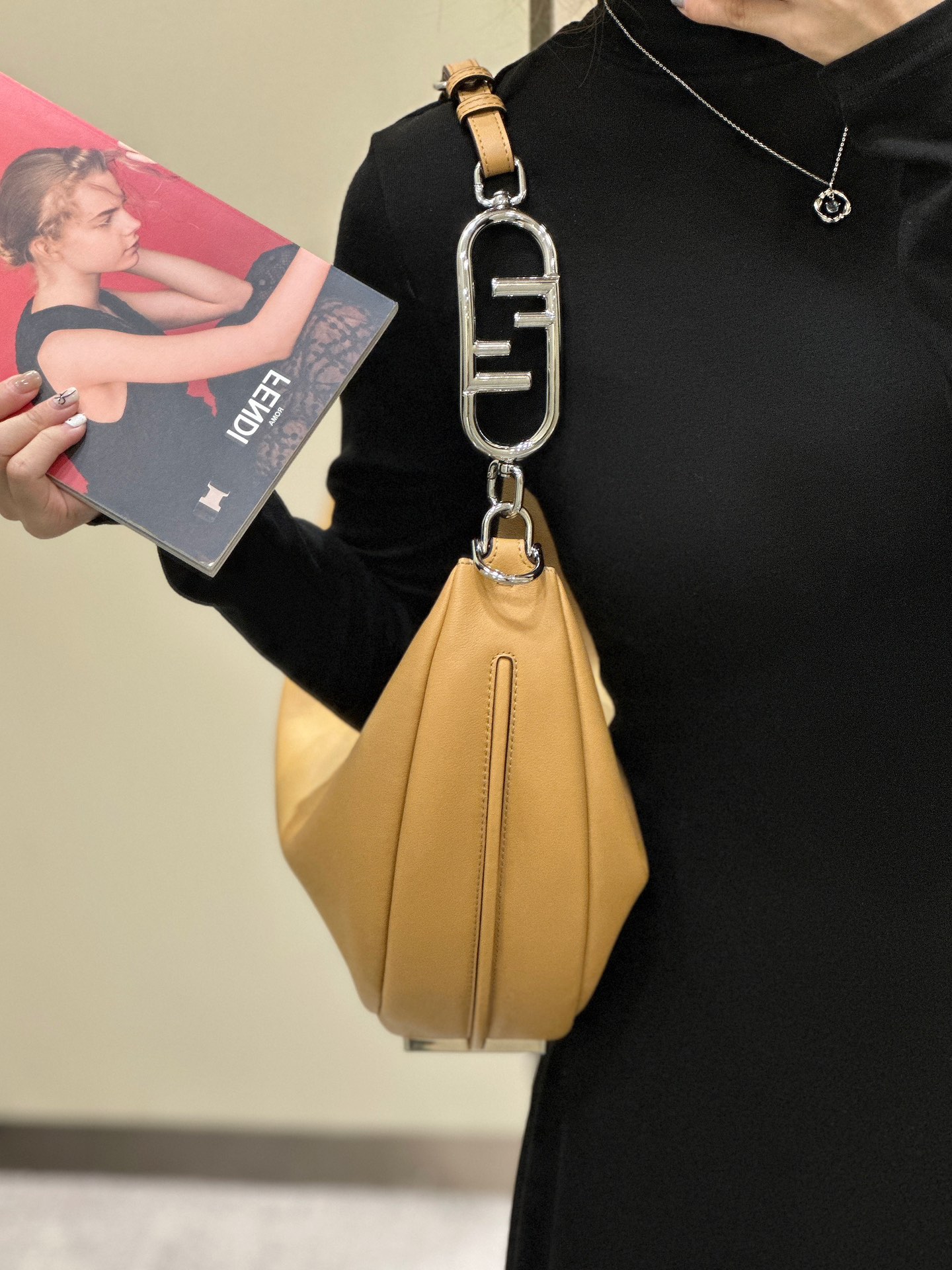 这款包包是AAAAA 1:1 质量 (非常棒). 使用了和原版一模一样的材料. 商标部分也保持了和芬迪/Fendi一样. 图片拍摄是实物包包拍摄, 您所收到的实物保证和我们图片一模一样.