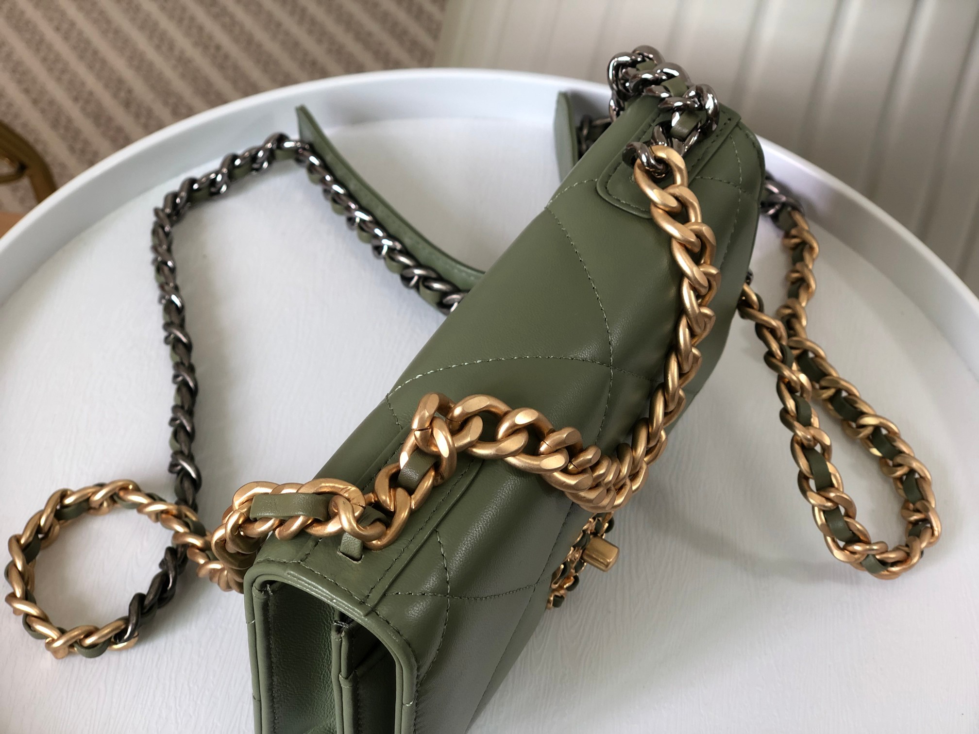 这款包包是AAAAA 1:1 质量 (非常棒). 使用了和原版一模一样的材料. 商标部分也保持了和香奈儿/Chanel一样. 图片拍摄是实物包包拍摄, 您所收到的实物保证和我们图片一模一样.