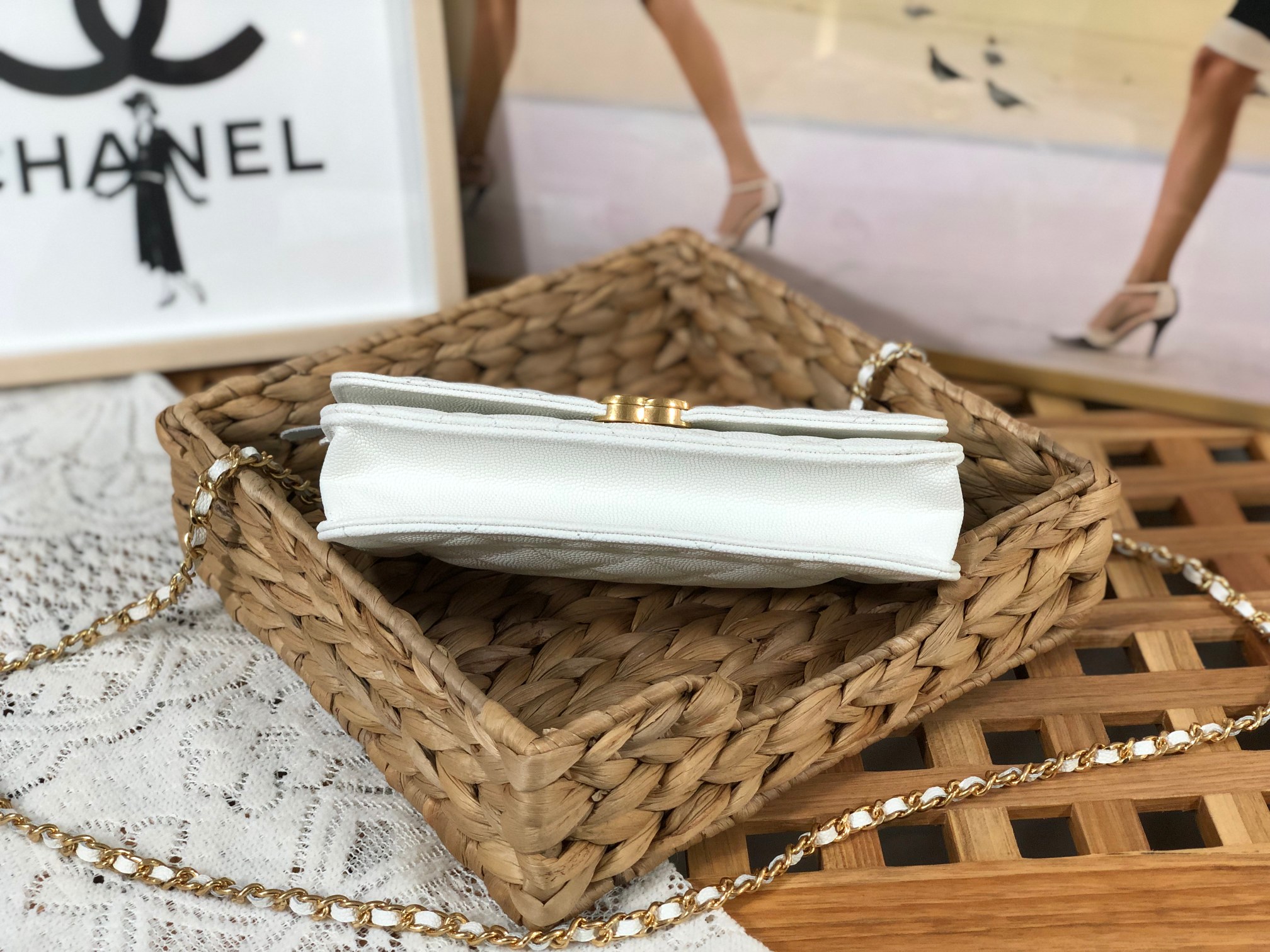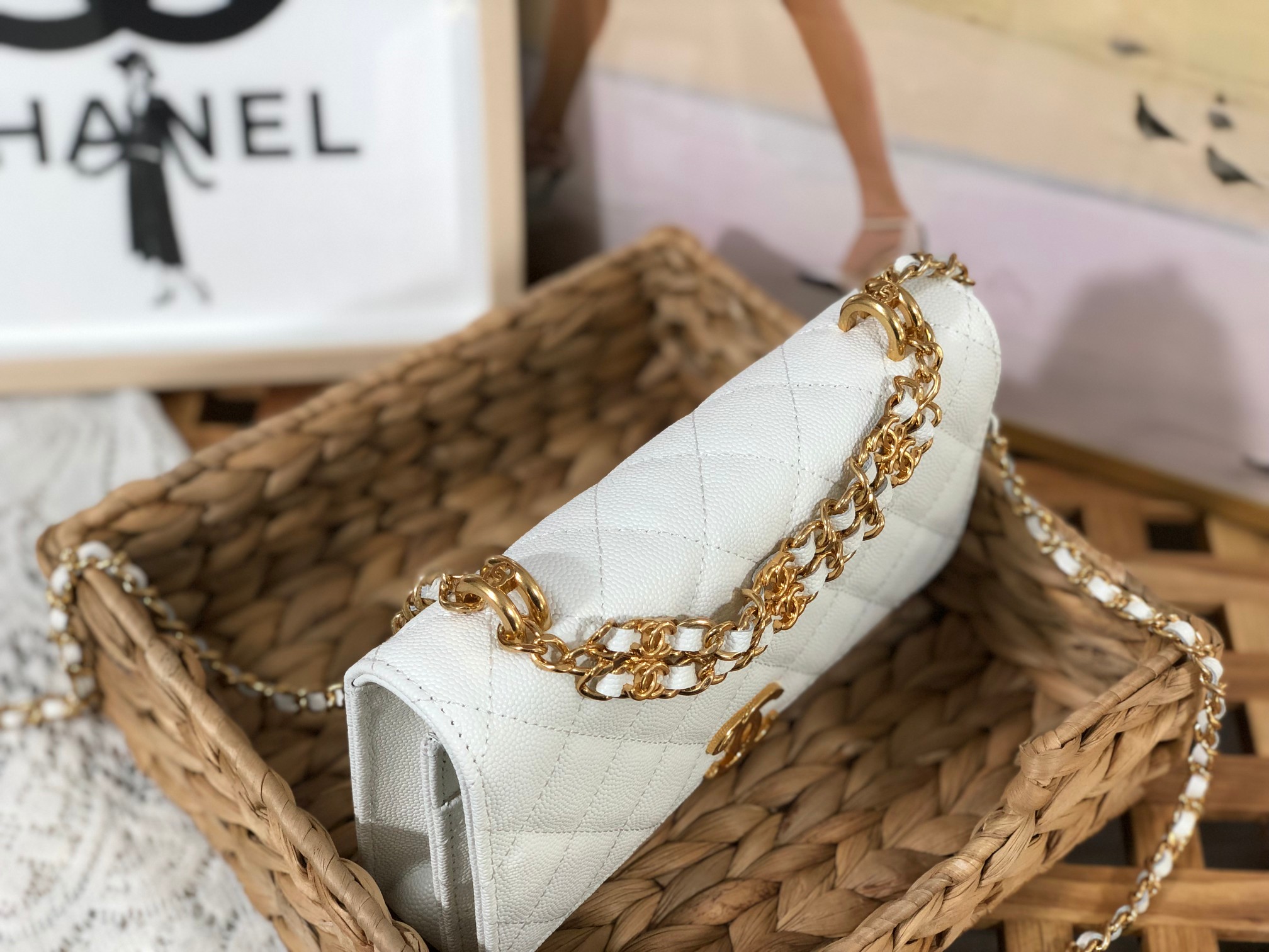 这款包包是AAAAA 1:1 质量 (非常棒). 使用了和原版一模一样的材料. 商标部分也保持了和香奈儿/Chanel一样. 图片拍摄是实物包包拍摄, 您所收到的实物保证和我们图片一模一样.
