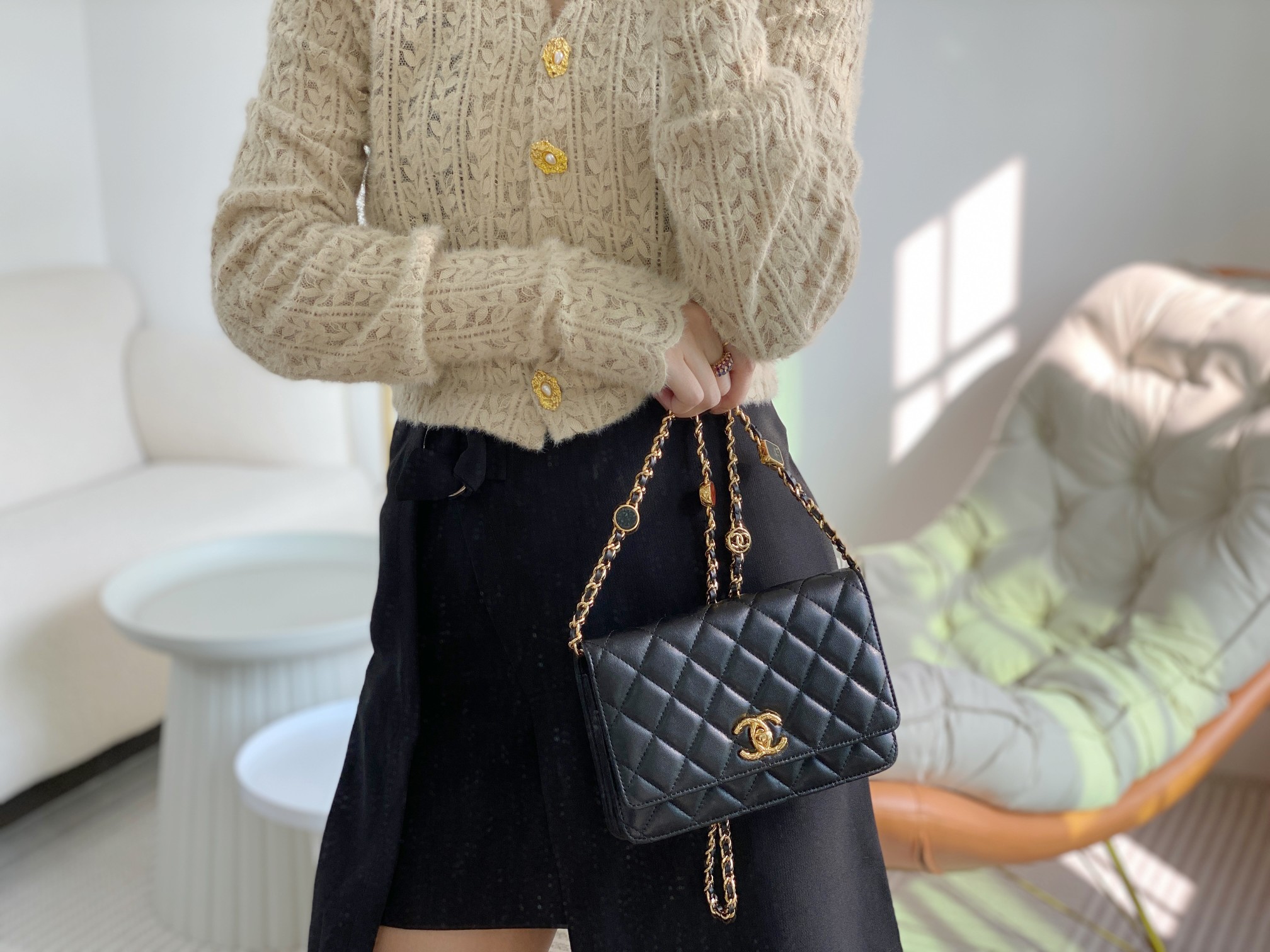 这款包包是AAAAA 1:1 质量 (非常棒). 使用了和原版一模一样的材料. 商标部分也保持了和香奈儿/Chanel一样. 图片拍摄是实物包包拍摄, 您所收到的实物保证和我们图片一模一样.