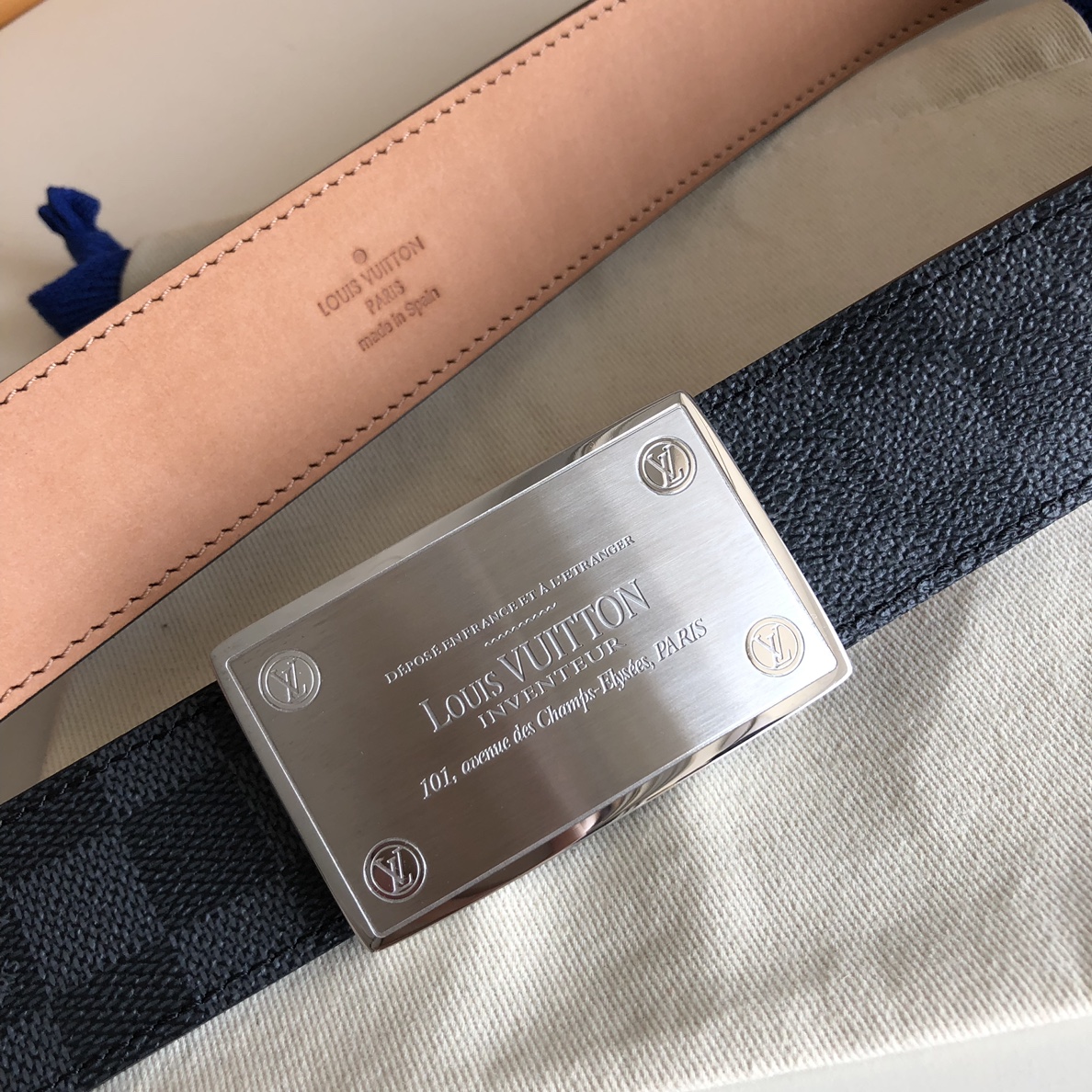 这款皮带是AAAAA 1:1 质量 (非常棒). 使用了和原版一模一样的材料. 商标部分也保持了和路易威登/Louis Vuitton一样. 图片拍摄是实物皮带拍摄, 您所收到的实物保证和我们图片一模一样.