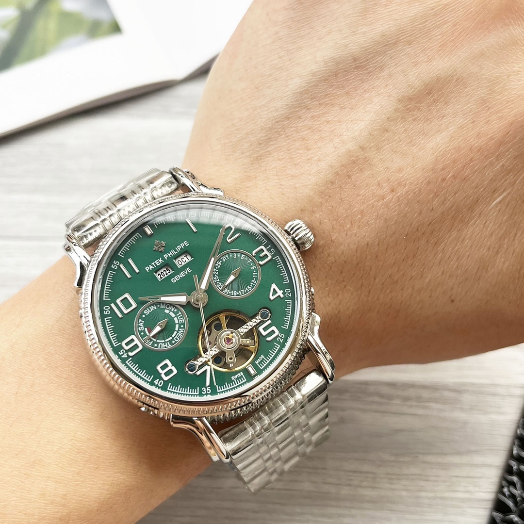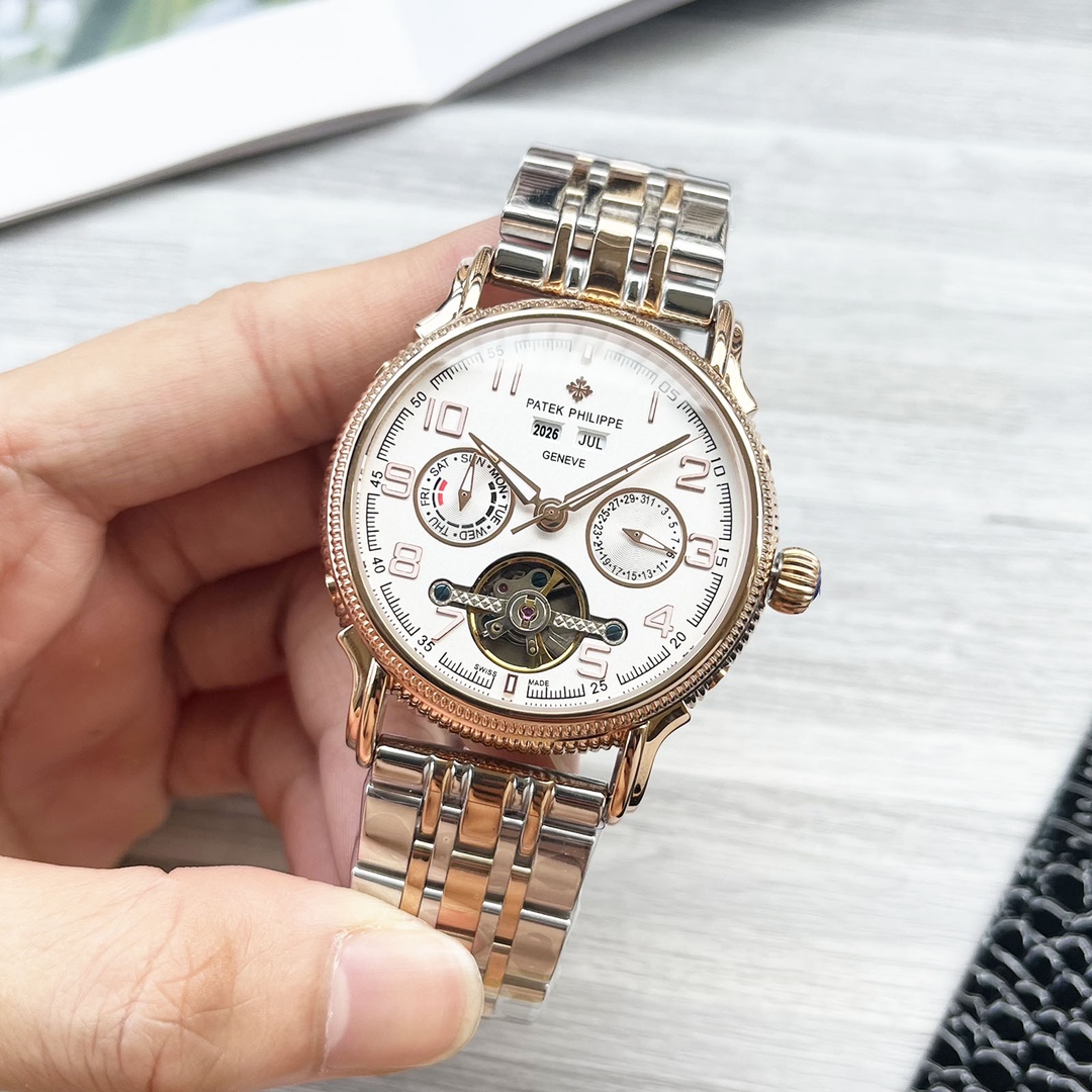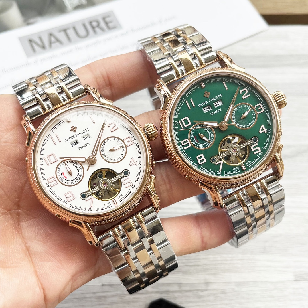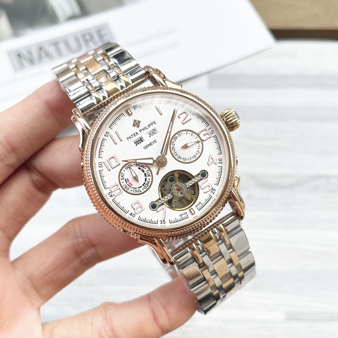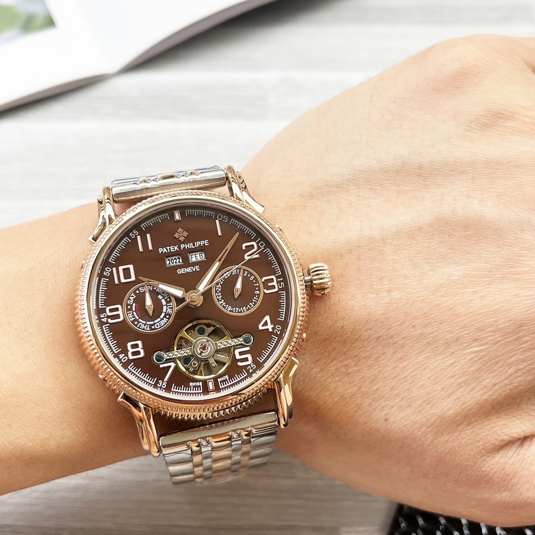 这款手表是AAAAA 1:1 质量 (非常棒). 使用了和原版一模一样的材料. 商标部分也保持了和百达翡丽/Patek Philippe一样. 图片拍摄是实物手表拍摄, 您所收到的实物保证和我们图片一模一样.