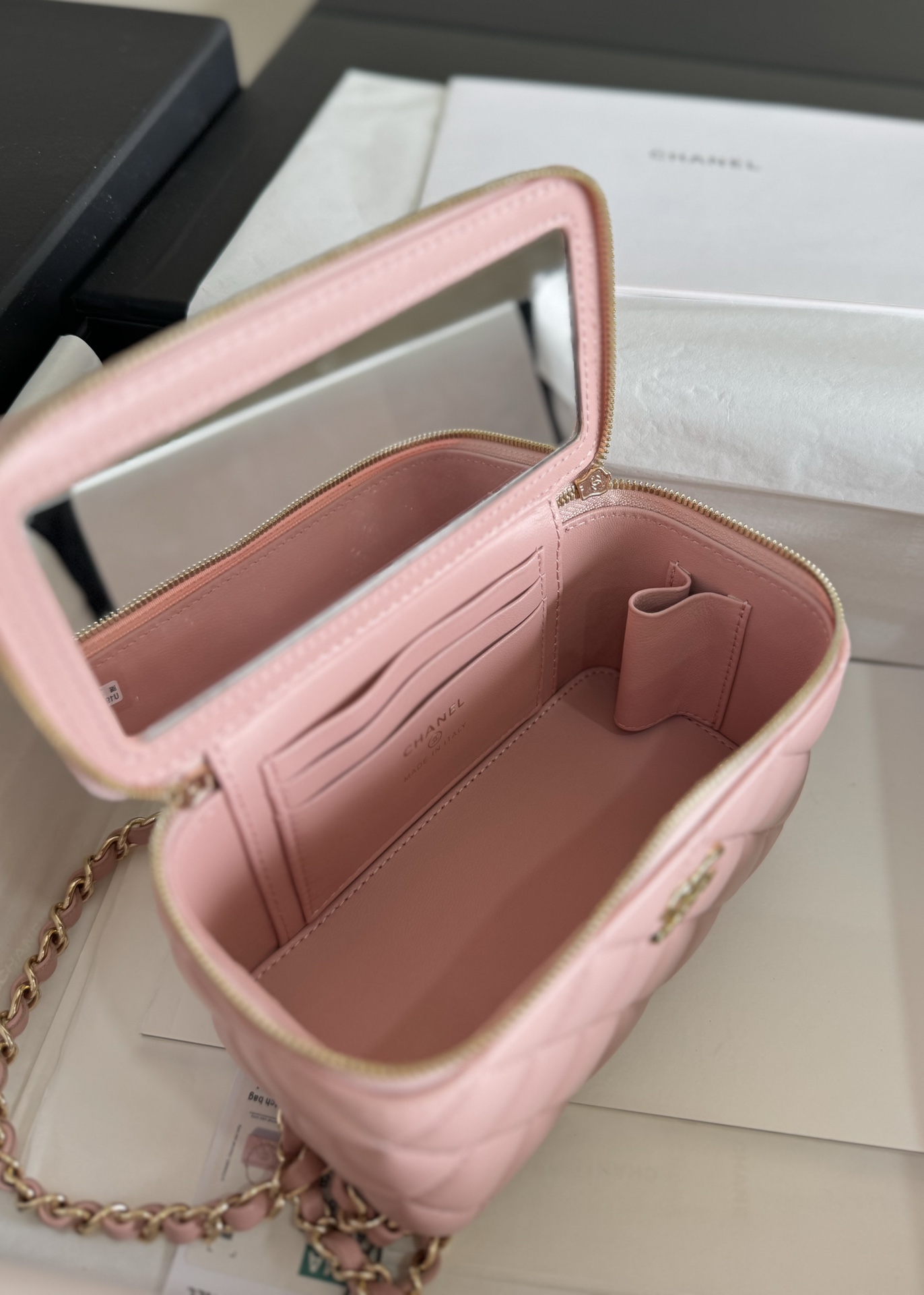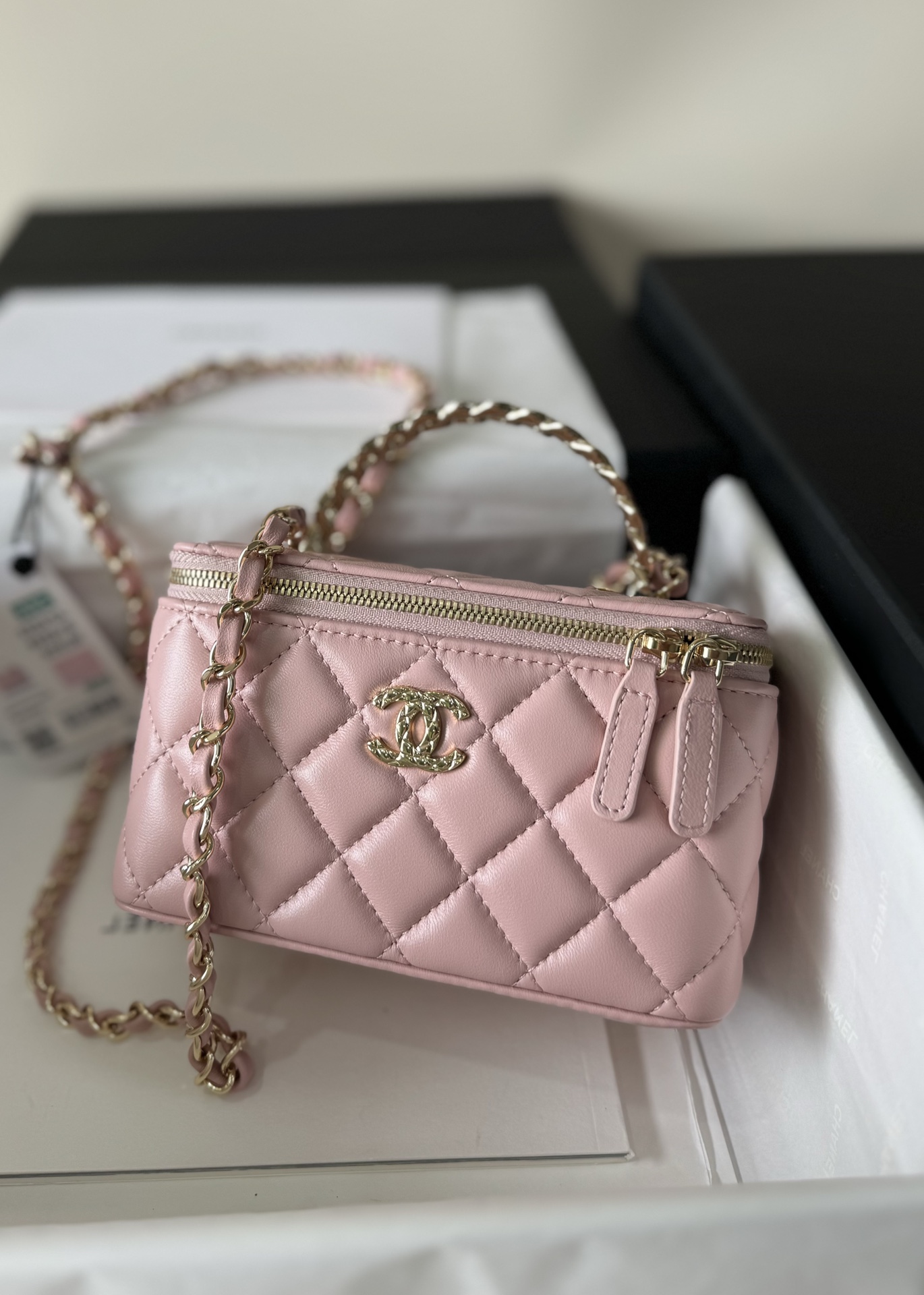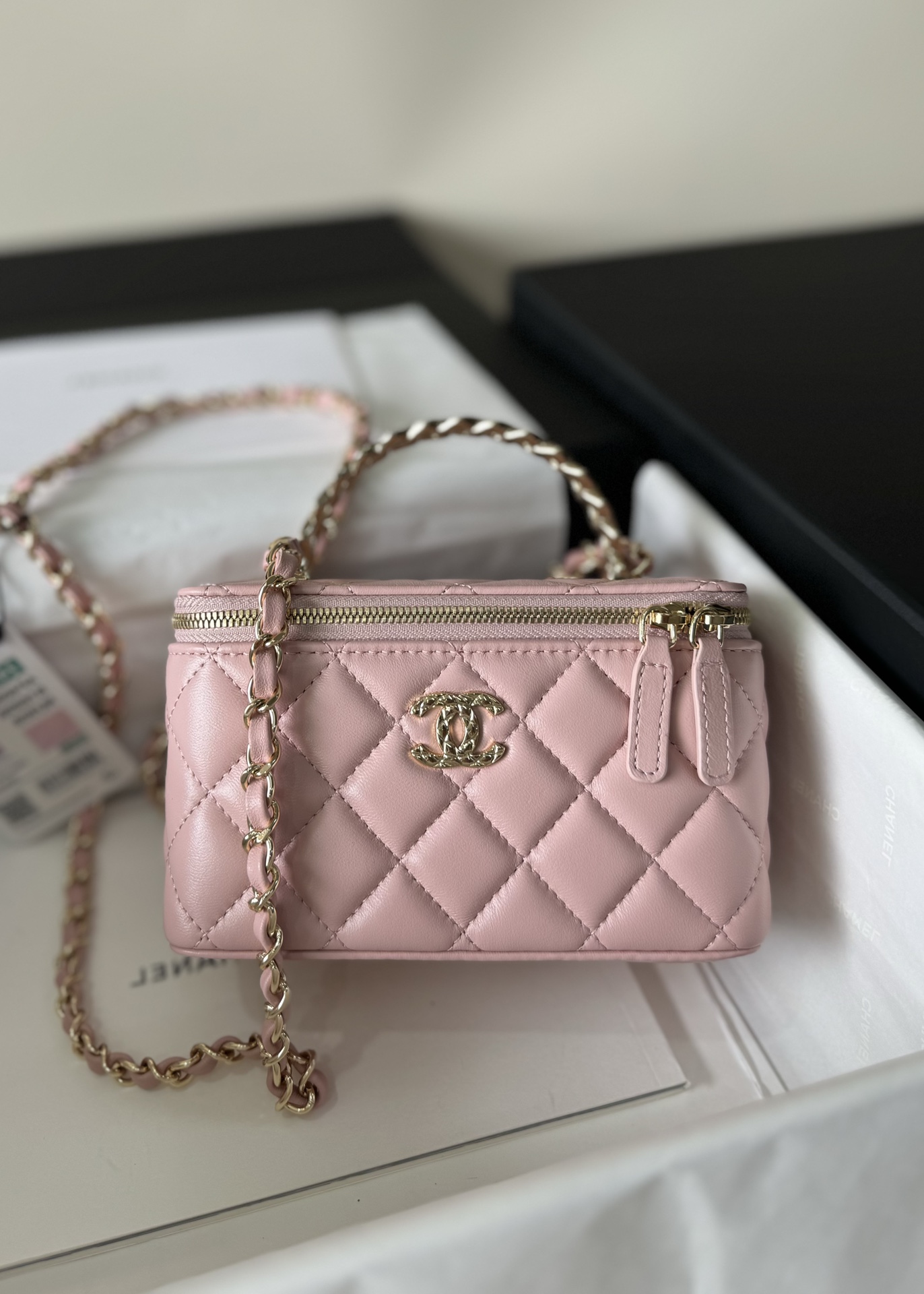 这款包包是AAAAA 1:1 质量 (非常棒). 使用了和原版一模一样的材料. 商标部分也保持了和香奈儿/Chanel一样. 图片拍摄是实物包包拍摄, 您所收到的实物保证和我们图片一模一样.