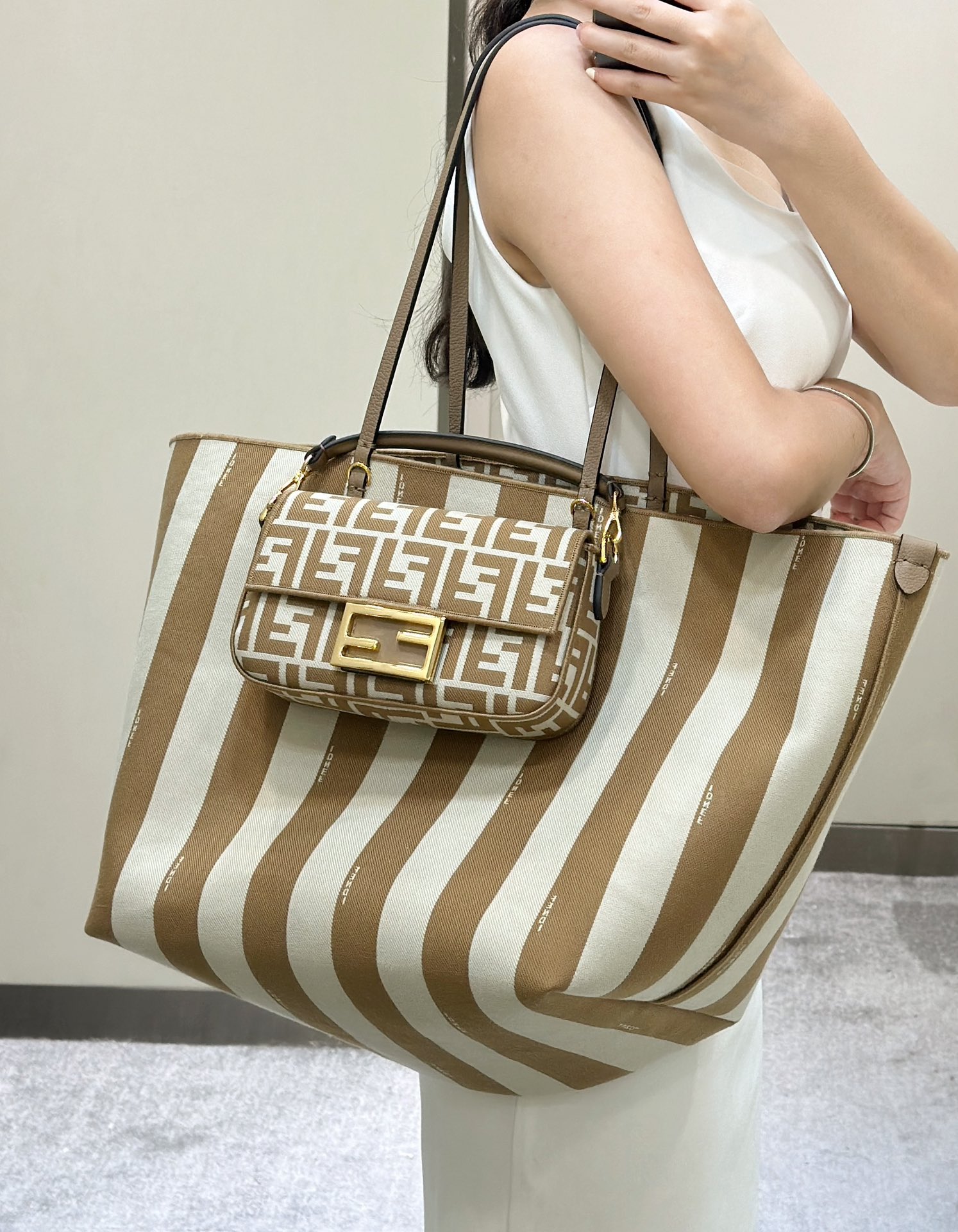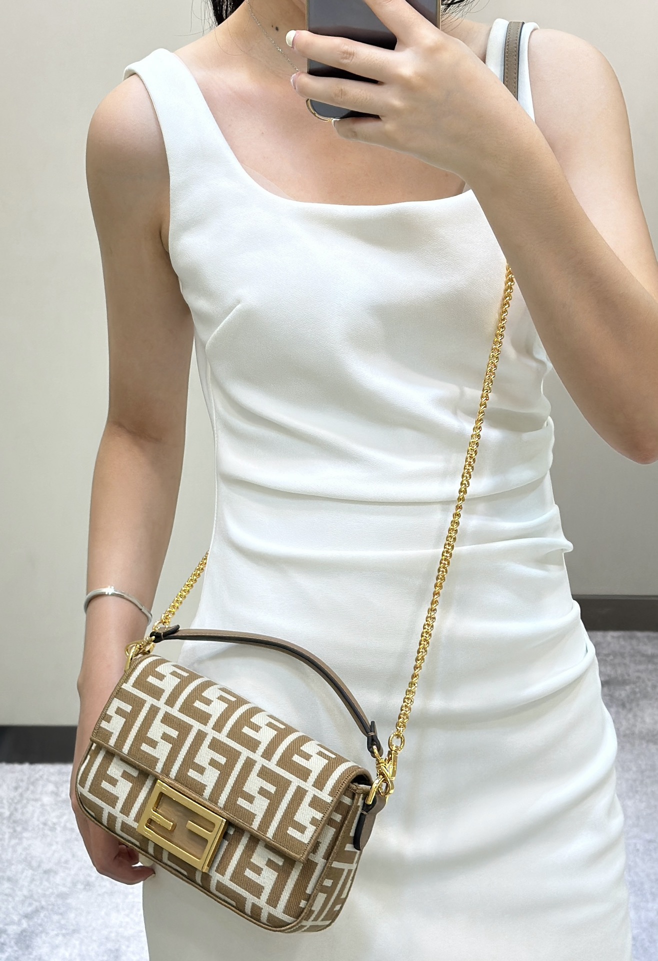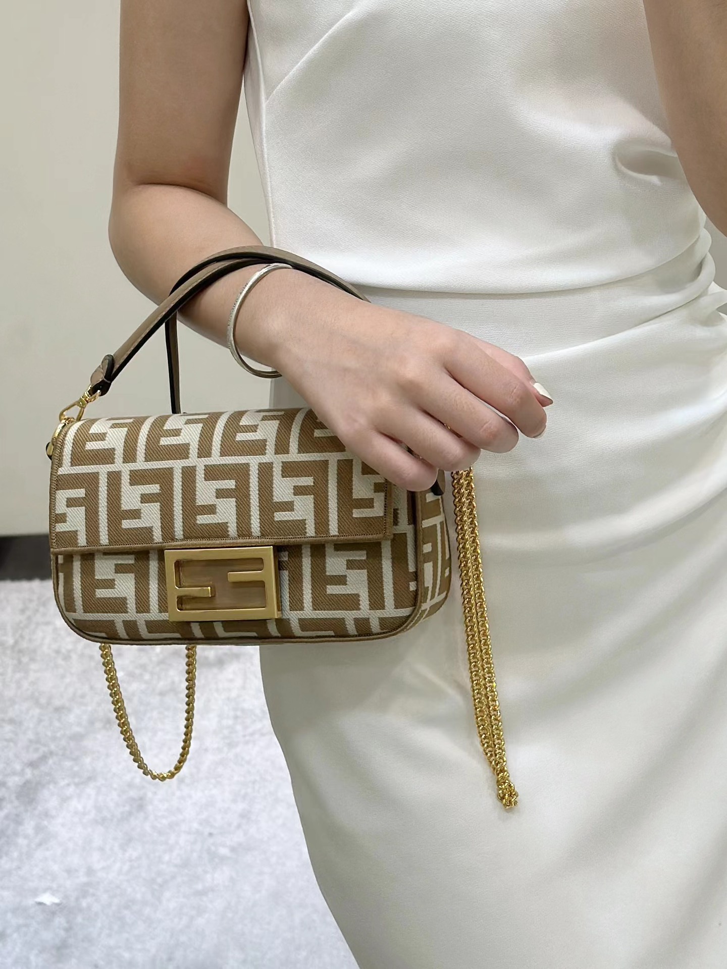 这款包包是AAAAA 1:1 质量 (非常棒). 使用了和原版一模一样的材料. 商标部分也保持了和芬迪/Fendi一样. 图片拍摄是实物包包拍摄, 您所收到的实物保证和我们图片一模一样.