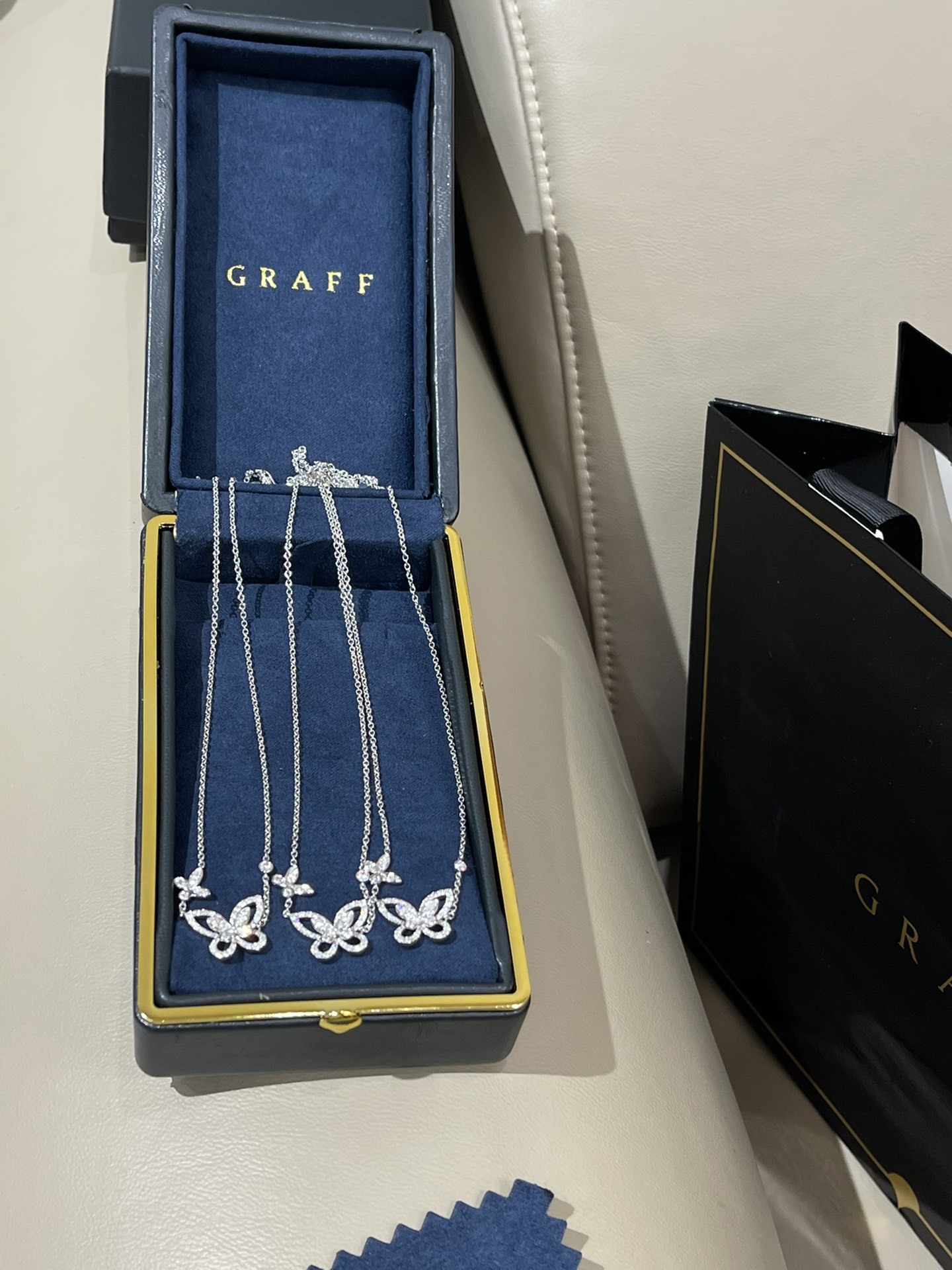 这款首饰是AAAAA 1:1 质量 (非常棒). 使用了和原版一模一样的材料. 商标部分也保持了和GRAFF一样. 图片拍摄是实物首饰拍摄, 您所收到的实物保证和我们图片一模一样.