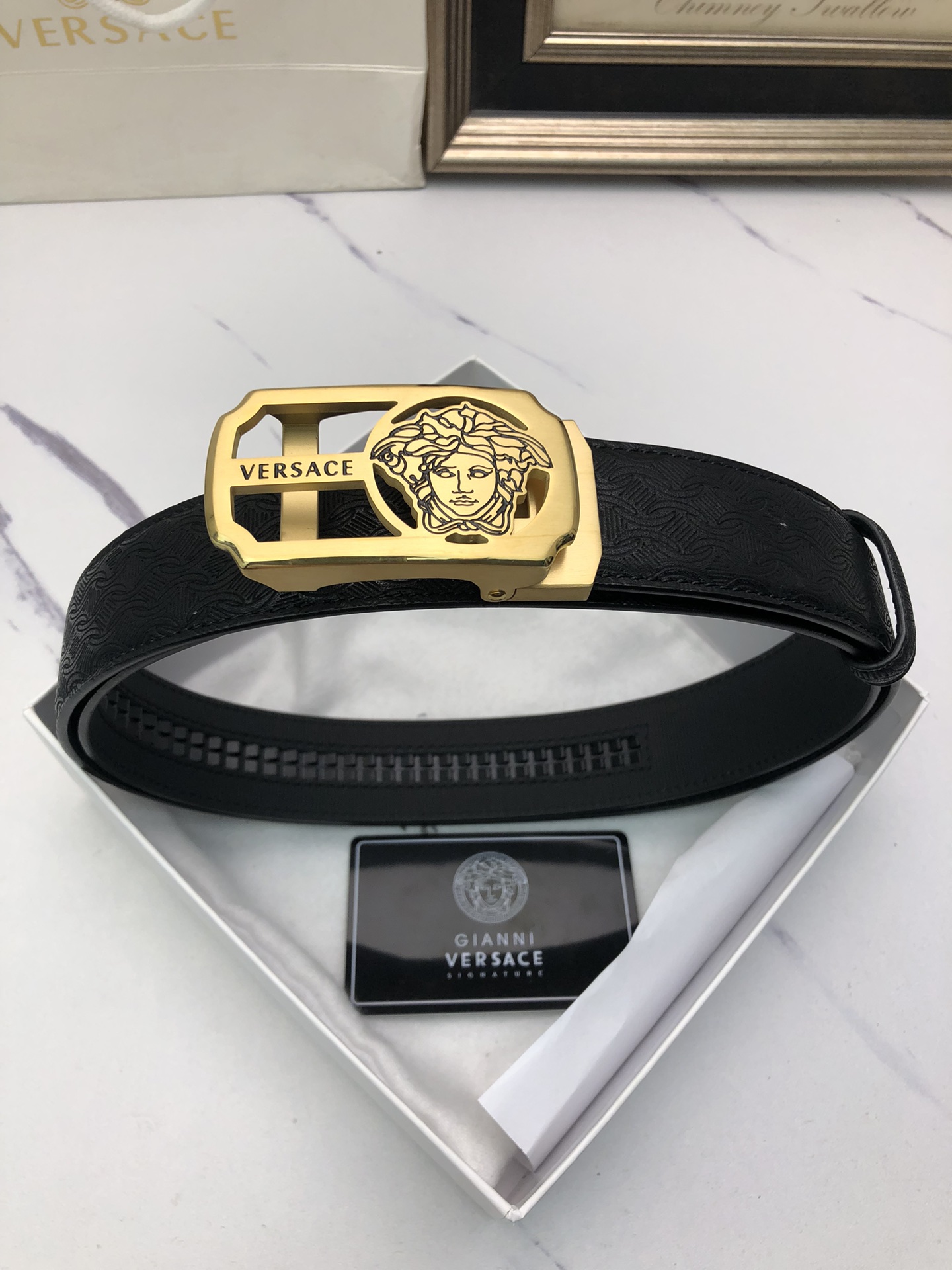这款皮带是AAAAA 1:1 质量 (非常棒). 使用了和原版一模一样的材料. 商标部分也保持了和范思哲/Versace一样. 图片拍摄是实物皮带拍摄, 您所收到的实物保证和我们图片一模一样.