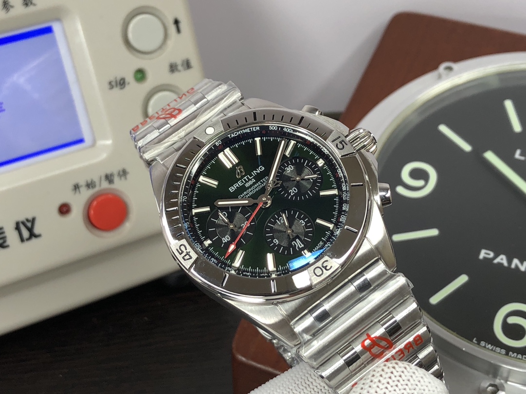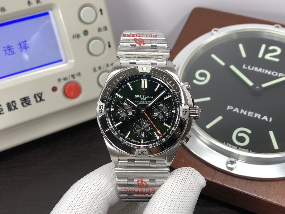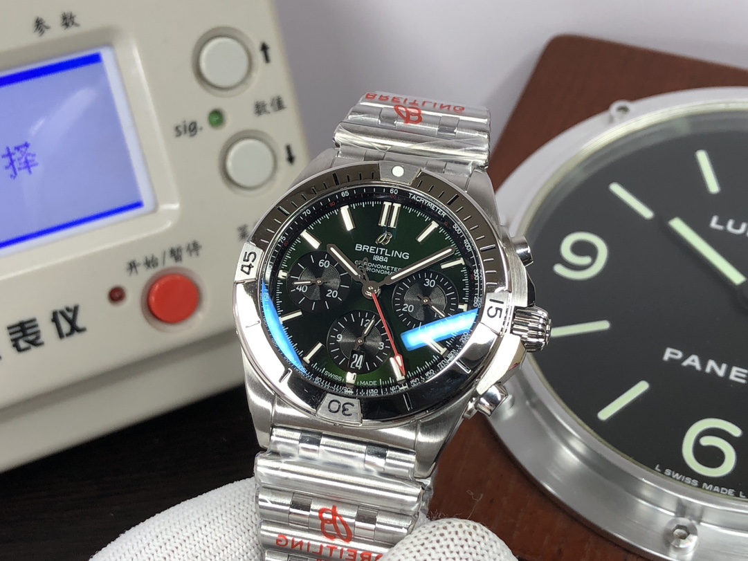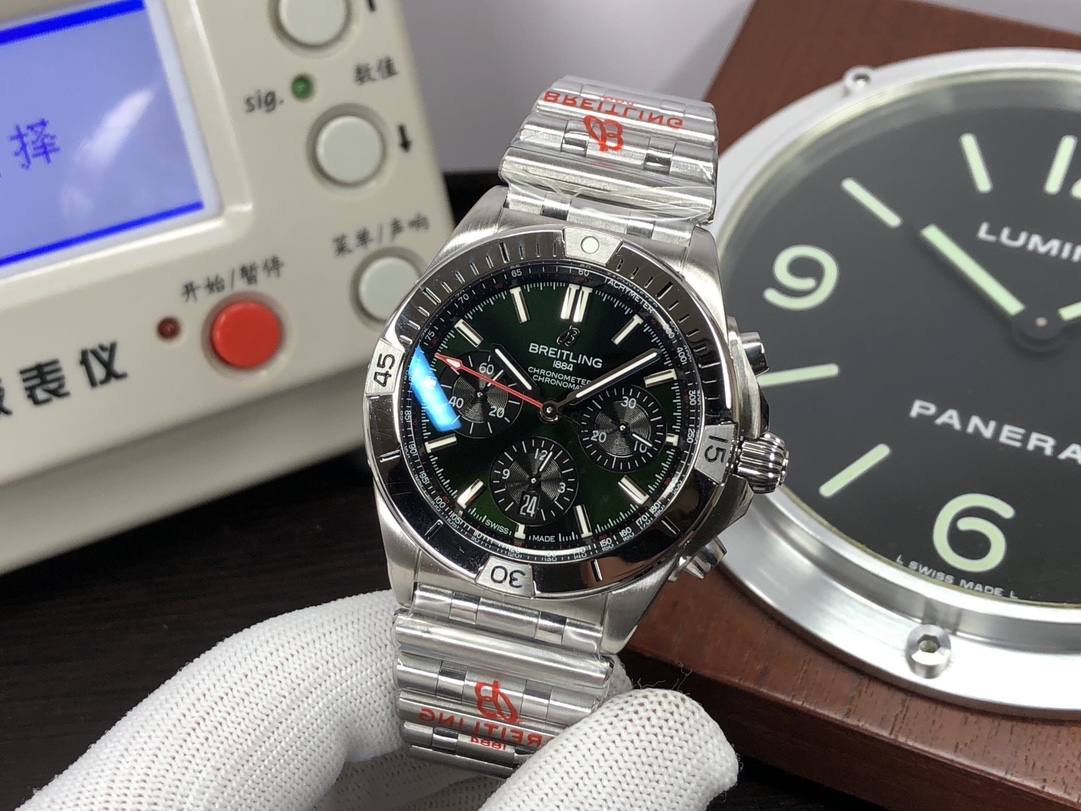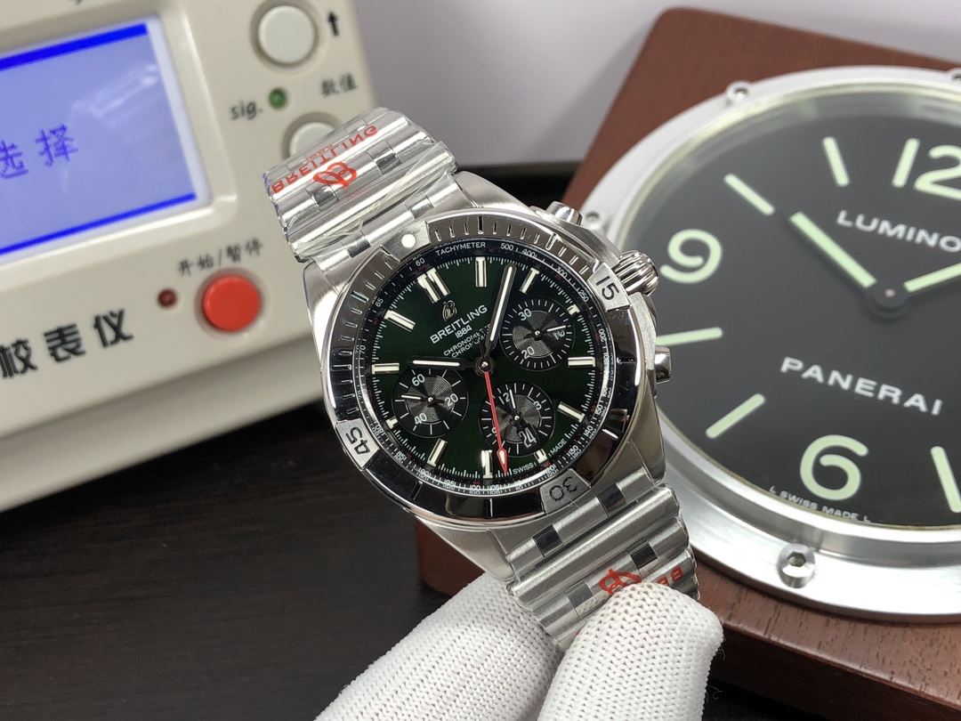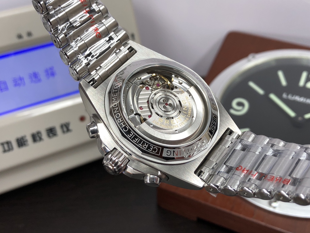 这款手表是AAAAA 1:1 质量 (非常棒). 使用了和原版一模一样的材料. 商标部分也保持了和Breitling一样. 图片拍摄是实物手表拍摄, 您所收到的实物保证和我们图片一模一样.
