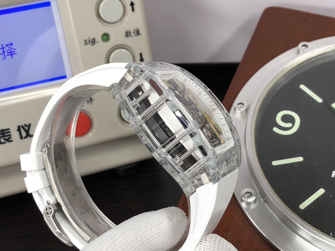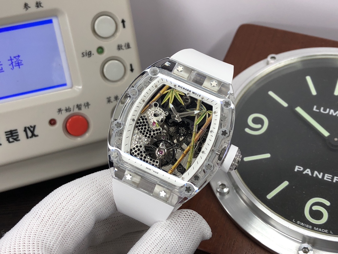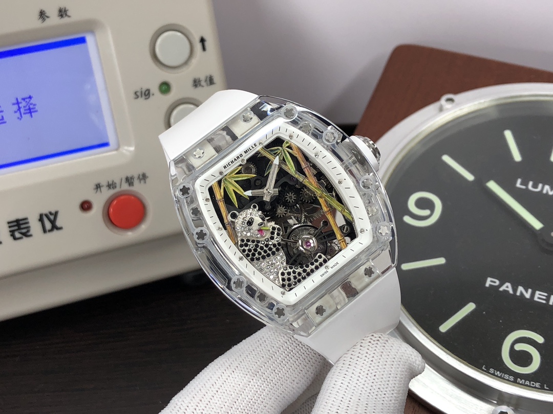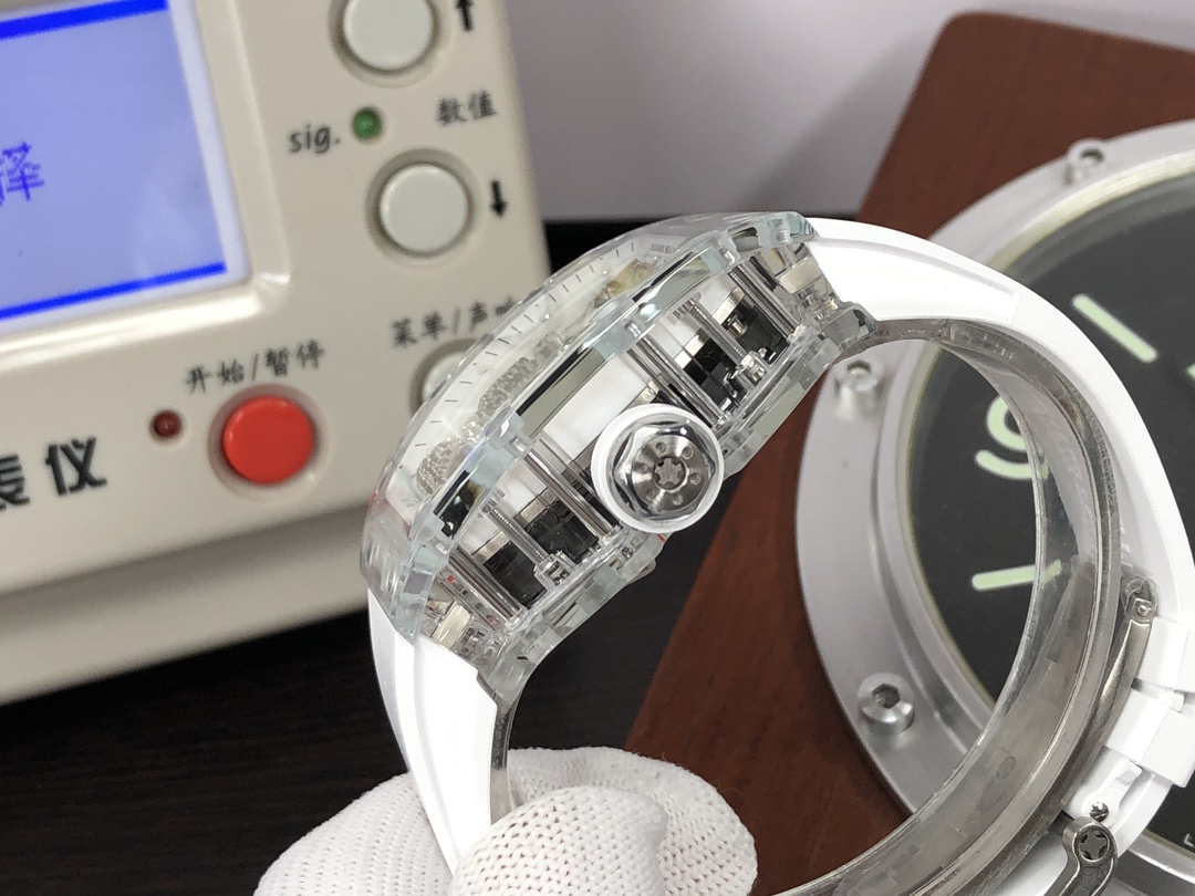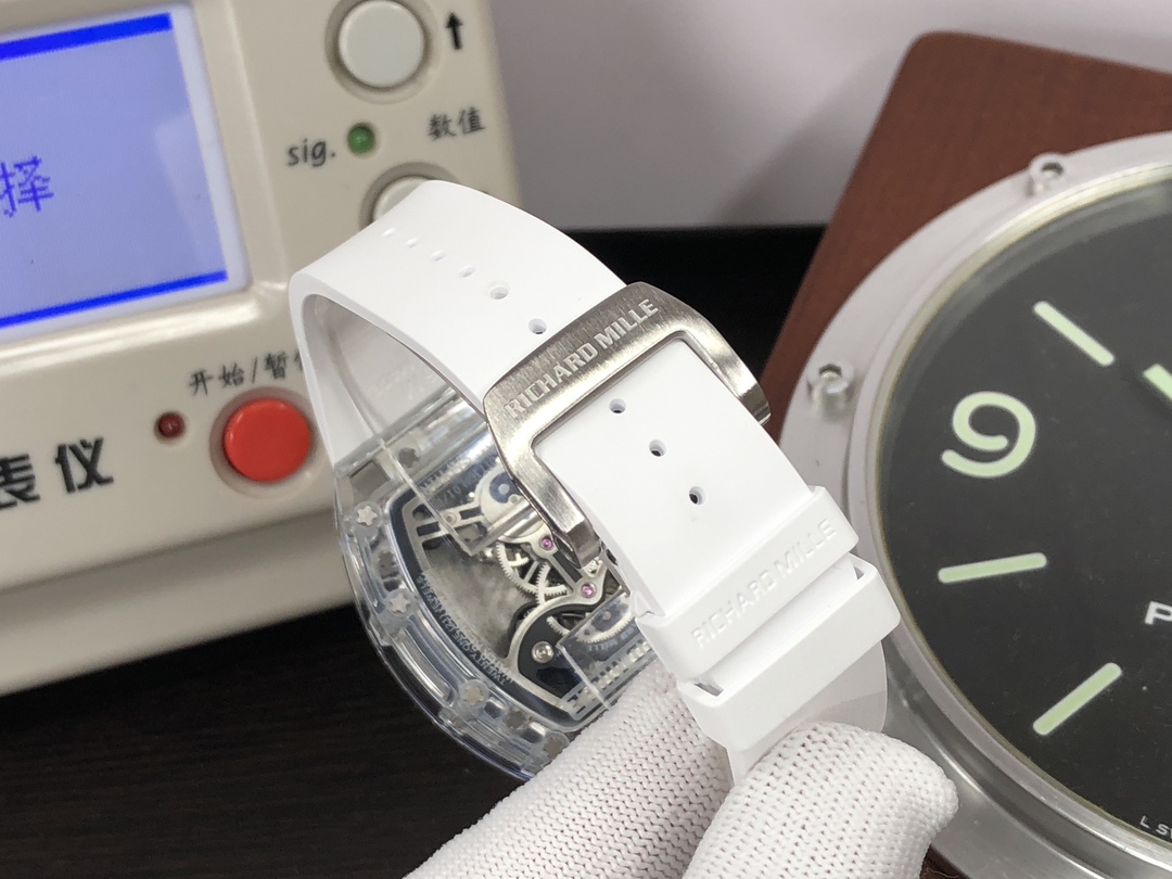 这款手表是AAAAA 1:1 质量 (非常棒). 使用了和原版一模一样的材料. 商标部分也保持了和理查德·米尔/Richard Mille一样. 图片拍摄是实物手表拍摄, 您所收到的实物保证和我们图片一模一样.