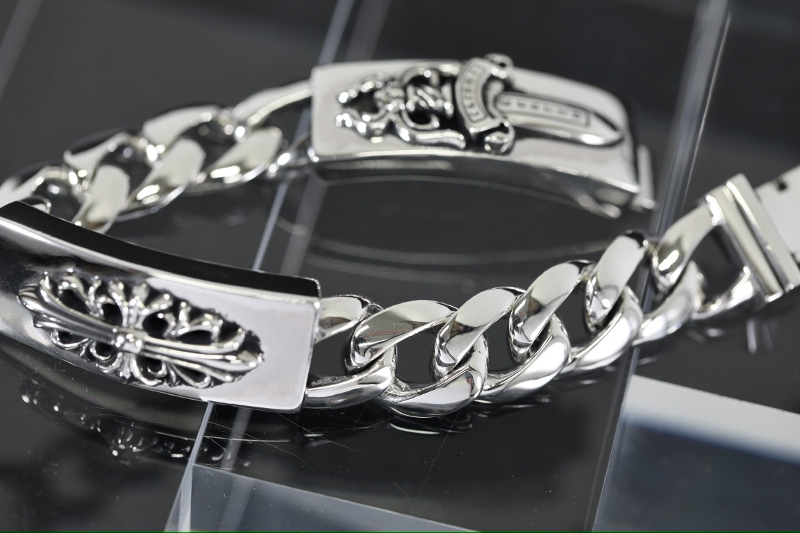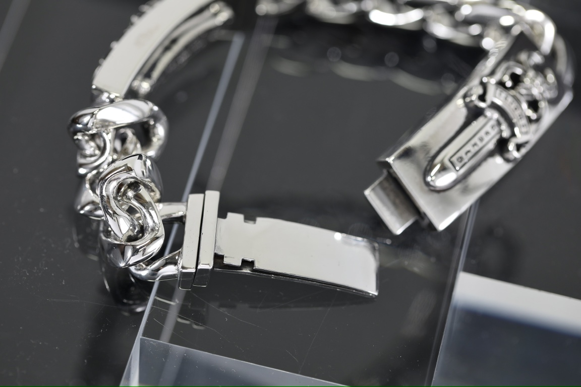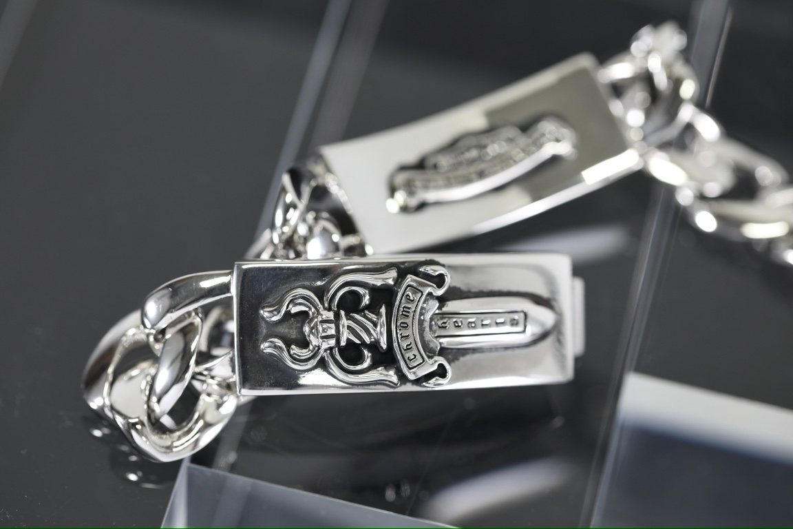 这款首饰是AAAAA 1:1 质量 (非常棒). 使用了和原版一模一样的材料. 商标部分也保持了和克罗心/Chrome Hearts一样. 图片拍摄是实物首饰拍摄, 您所收到的实物保证和我们图片一模一样.