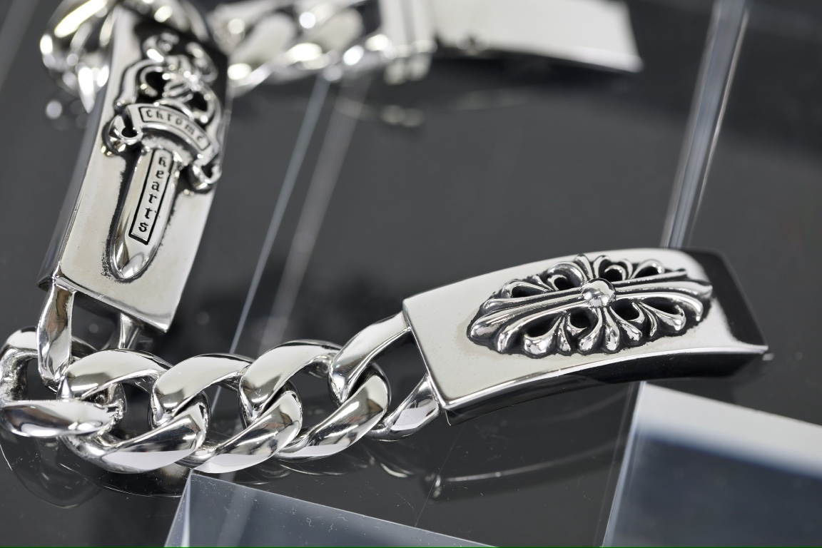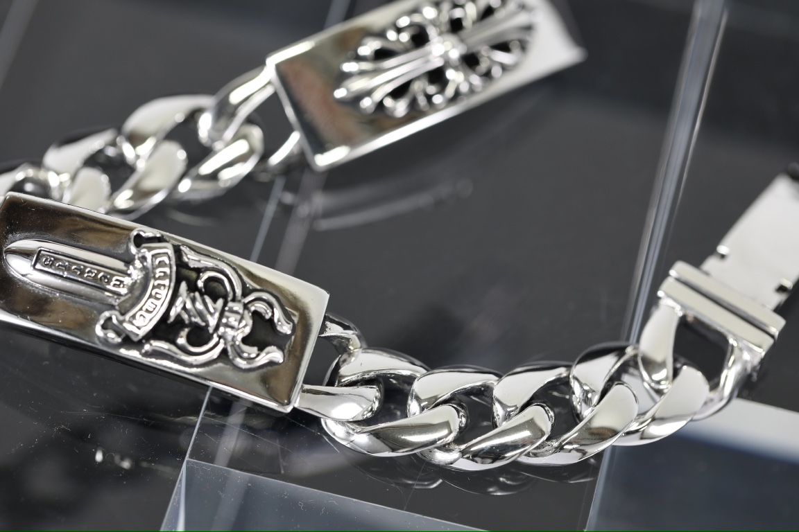 这款首饰是AAAAA 1:1 质量 (非常棒). 使用了和原版一模一样的材料. 商标部分也保持了和克罗心/Chrome Hearts一样. 图片拍摄是实物首饰拍摄, 您所收到的实物保证和我们图片一模一样.