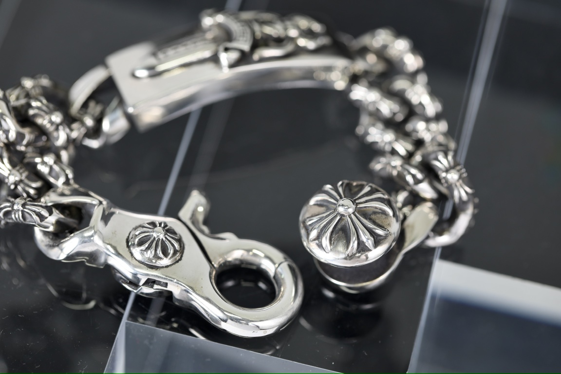 这款首饰是AAAAA 1:1 质量 (非常棒). 使用了和原版一模一样的材料. 商标部分也保持了和克罗心/Chrome Hearts一样. 图片拍摄是实物首饰拍摄, 您所收到的实物保证和我们图片一模一样.