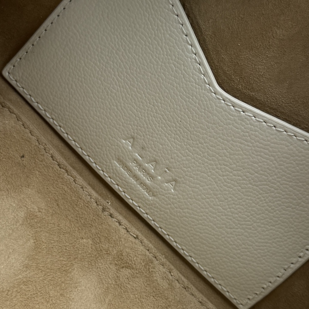这款包包是AAAAA 1:1 质量 (非常棒). 使用了和原版一模一样的材料. 商标部分也保持了和Alaia一样. 图片拍摄是实物包包拍摄, 您所收到的实物保证和我们图片一模一样.