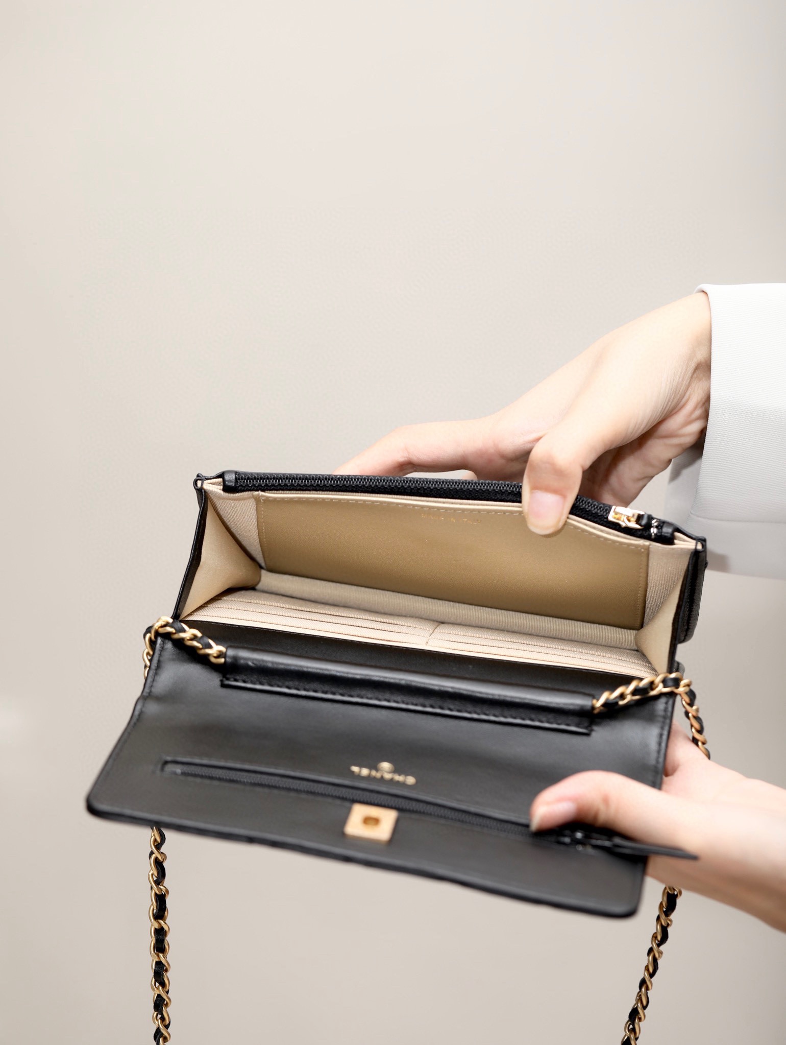 这款包包是AAAAA 1:1 质量 (非常棒). 使用了和原版一模一样的材料. 商标部分也保持了和香奈儿/Chanel一样. 图片拍摄是实物包包拍摄, 您所收到的实物保证和我们图片一模一样.