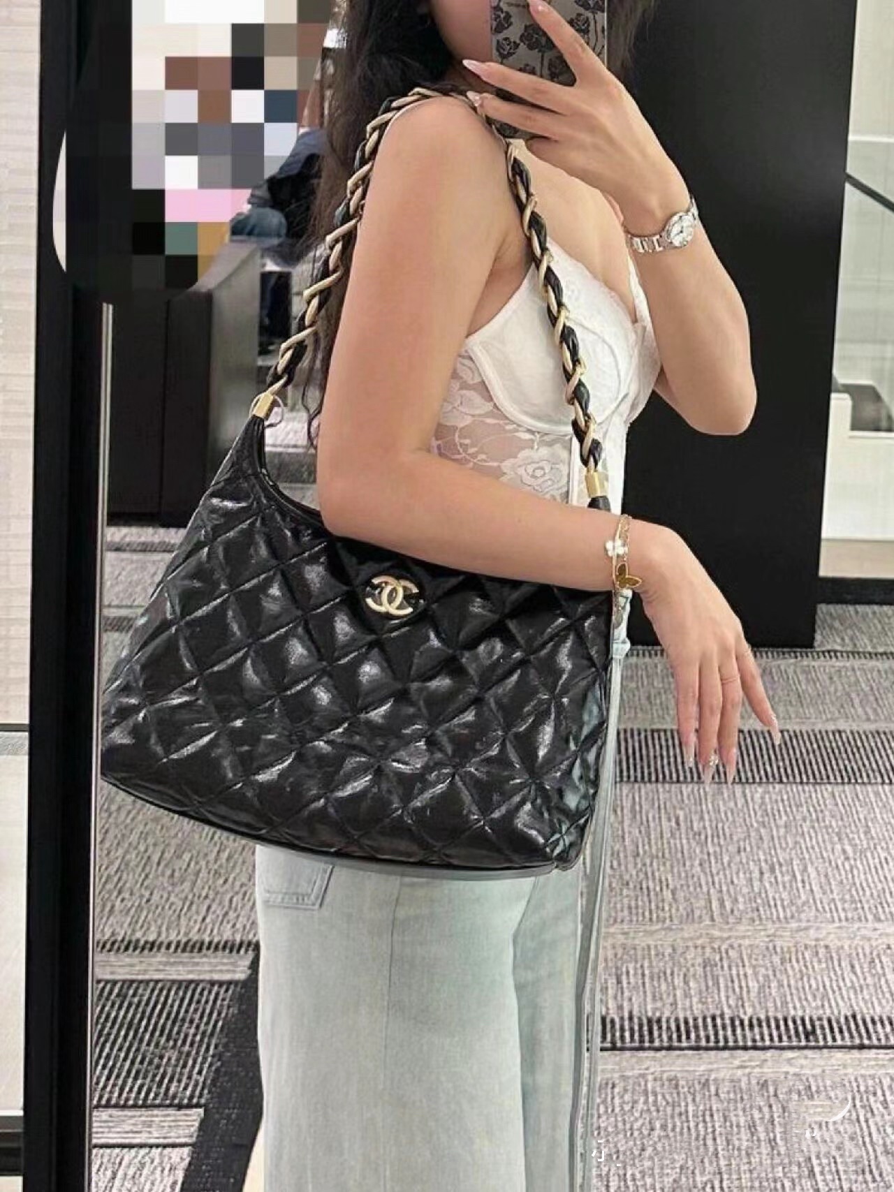 这款包包是AAAAA 1:1 质量 (非常棒). 使用了和原版一模一样的材料. 商标部分也保持了和香奈儿/Chanel一样. 图片拍摄是实物包包拍摄, 您所收到的实物保证和我们图片一模一样.