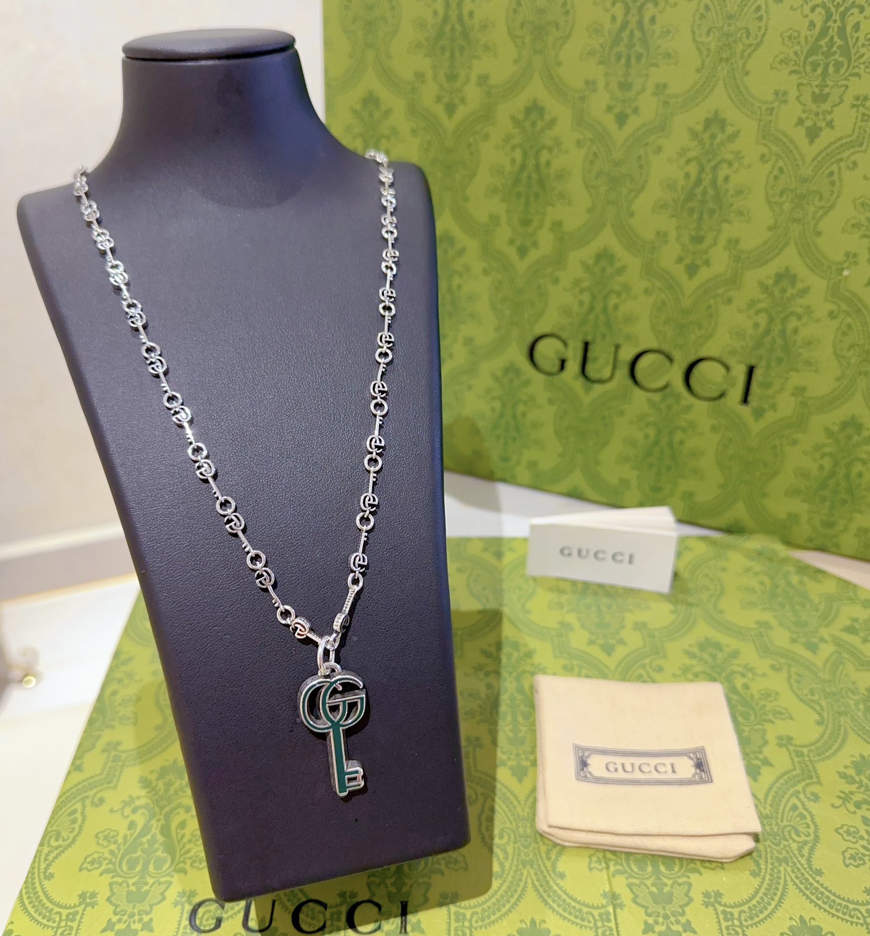 这款首饰是AAAAA 1:1 质量 (非常棒). 使用了和原版一模一样的材料. 商标部分也保持了和古奇/Gucci一样. 图片拍摄是实物首饰拍摄, 您所收到的实物保证和我们图片一模一样.