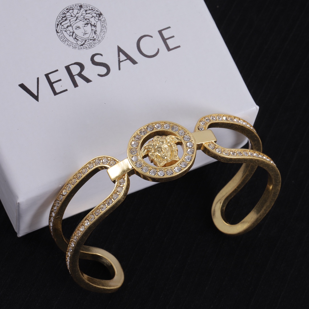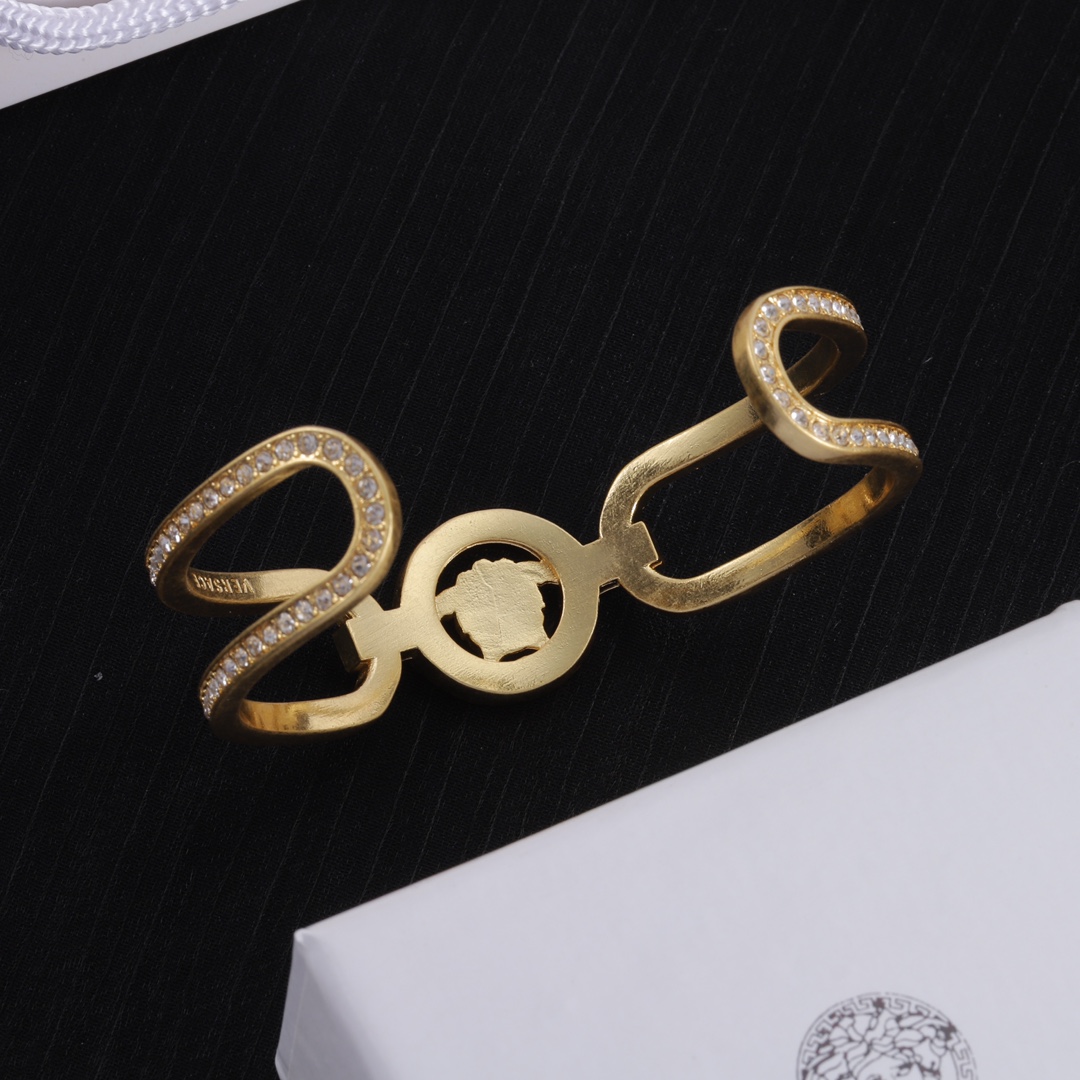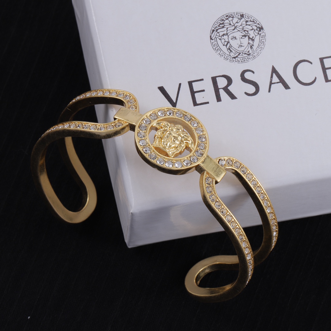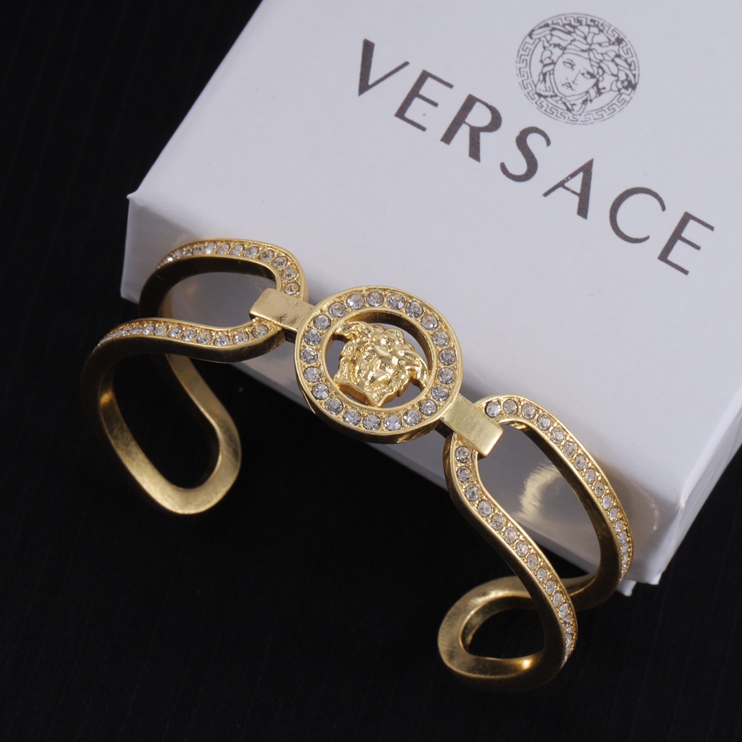 这款首饰是AAAAA 1:1 质量 (非常棒). 使用了和原版一模一样的材料. 商标部分也保持了和范思哲/Versace一样. 图片拍摄是实物首饰拍摄, 您所收到的实物保证和我们图片一模一样.