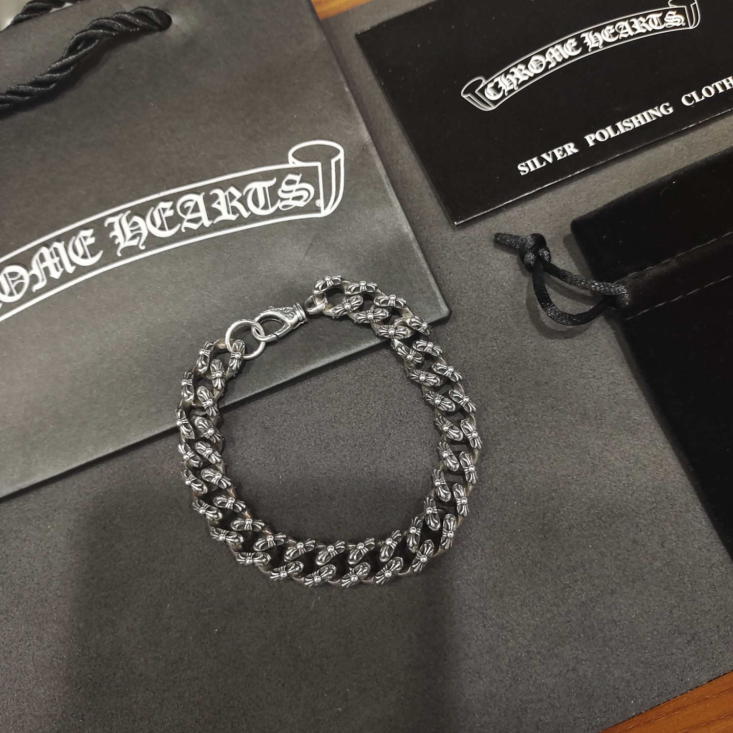 这款首饰是AAAAA 1:1 质量 (非常棒). 使用了和原版一模一样的材料. 商标部分也保持了和克罗心/Chrome Hearts一样. 图片拍摄是实物首饰拍摄, 您所收到的实物保证和我们图片一模一样.