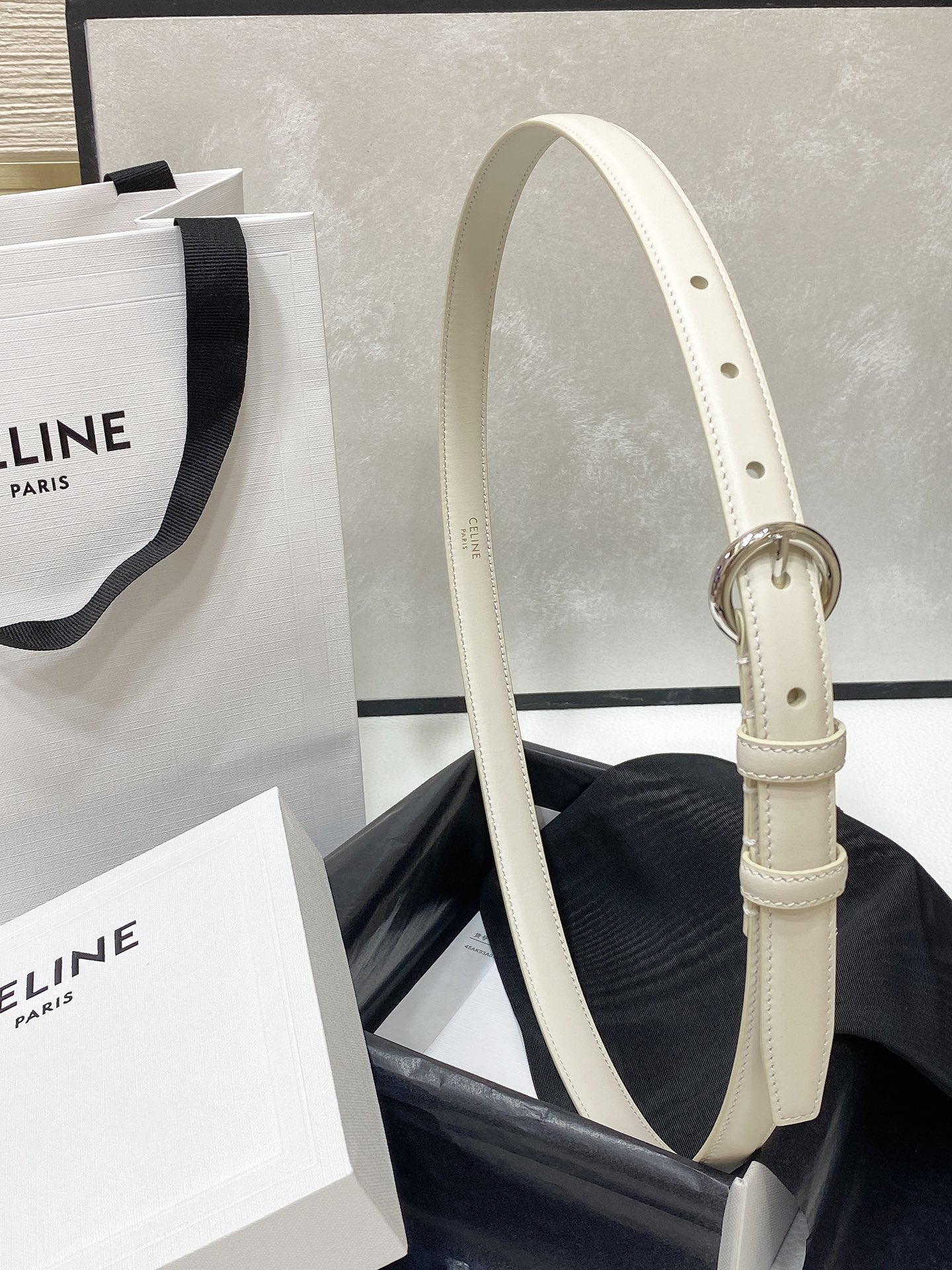 这款皮带是AAAAA 1:1 质量 (非常棒). 使用了和原版一模一样的材料. 商标部分也保持了和思琳/Celine一样. 图片拍摄是实物皮带拍摄, 您所收到的实物保证和我们图片一模一样.
