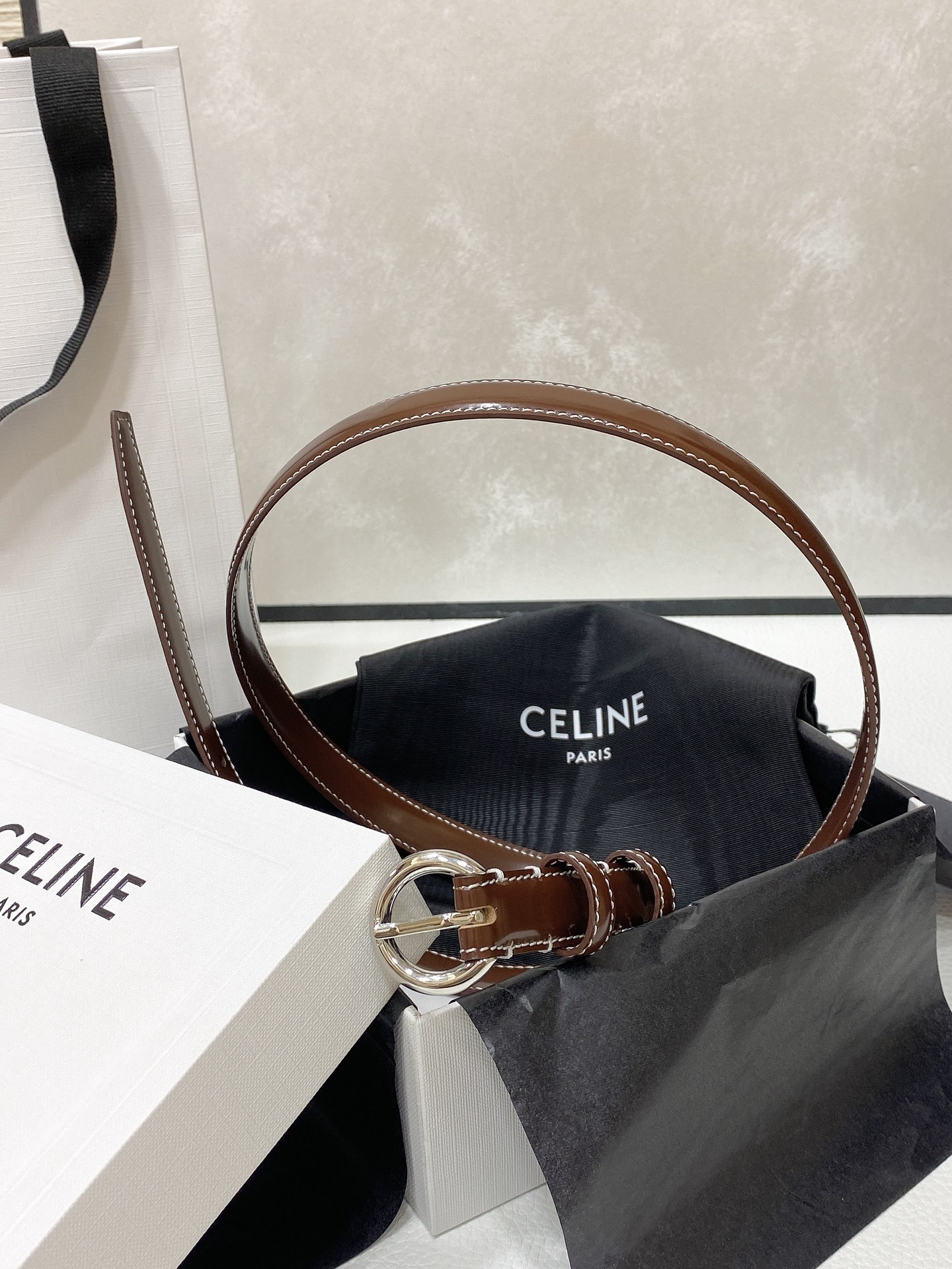 这款皮带是AAAAA 1:1 质量 (非常棒). 使用了和原版一模一样的材料. 商标部分也保持了和思琳/Celine一样. 图片拍摄是实物皮带拍摄, 您所收到的实物保证和我们图片一模一样.