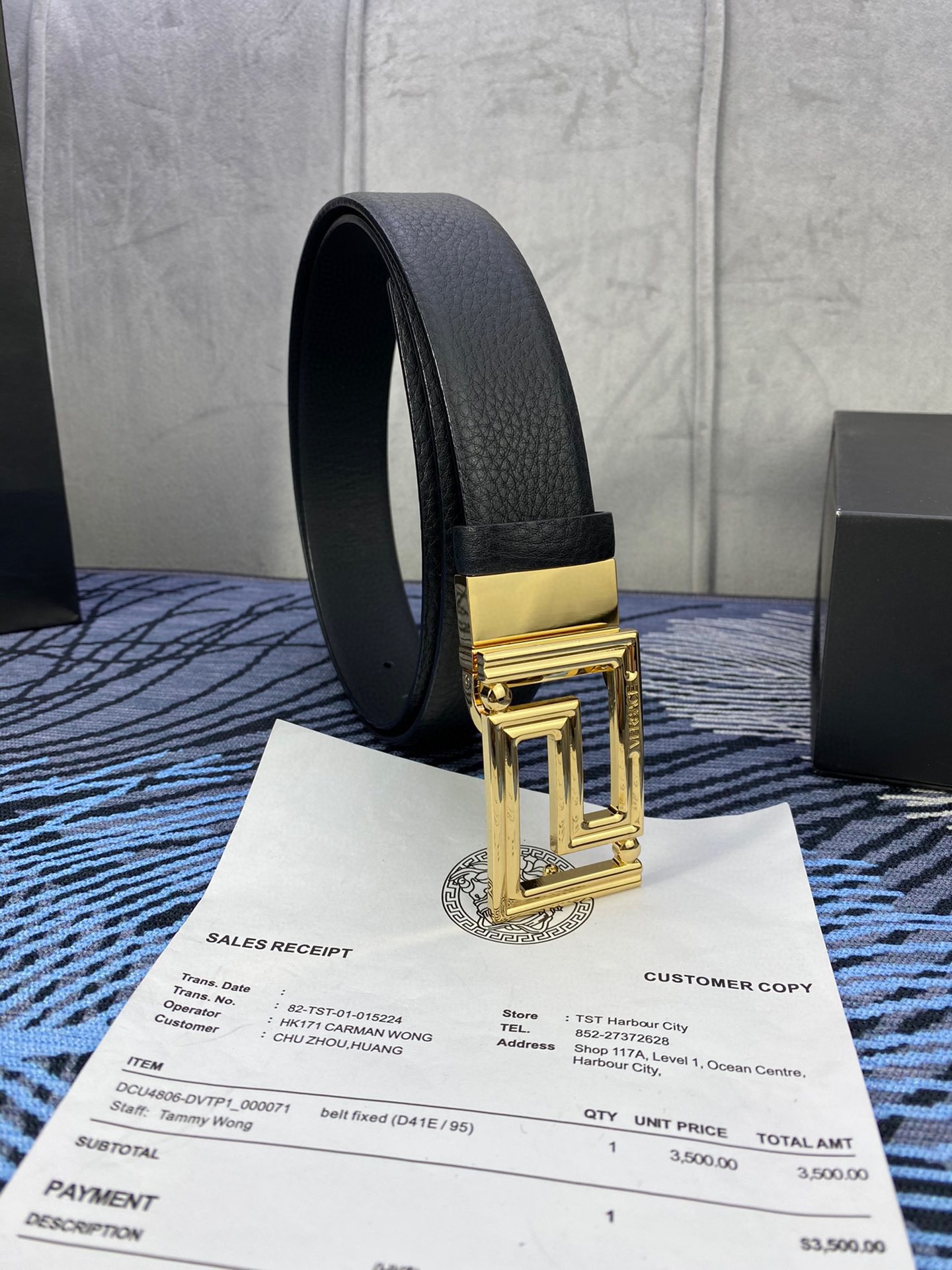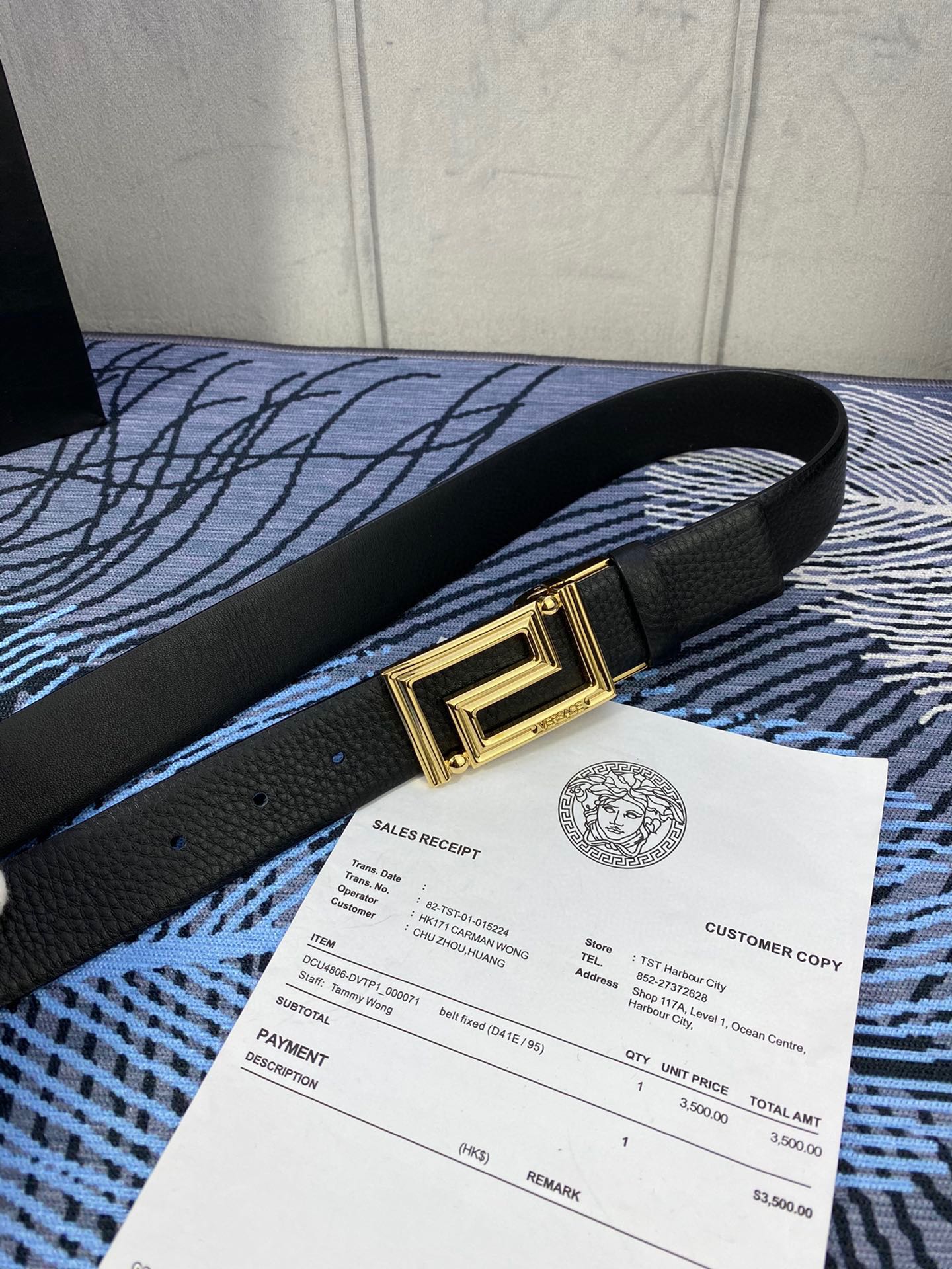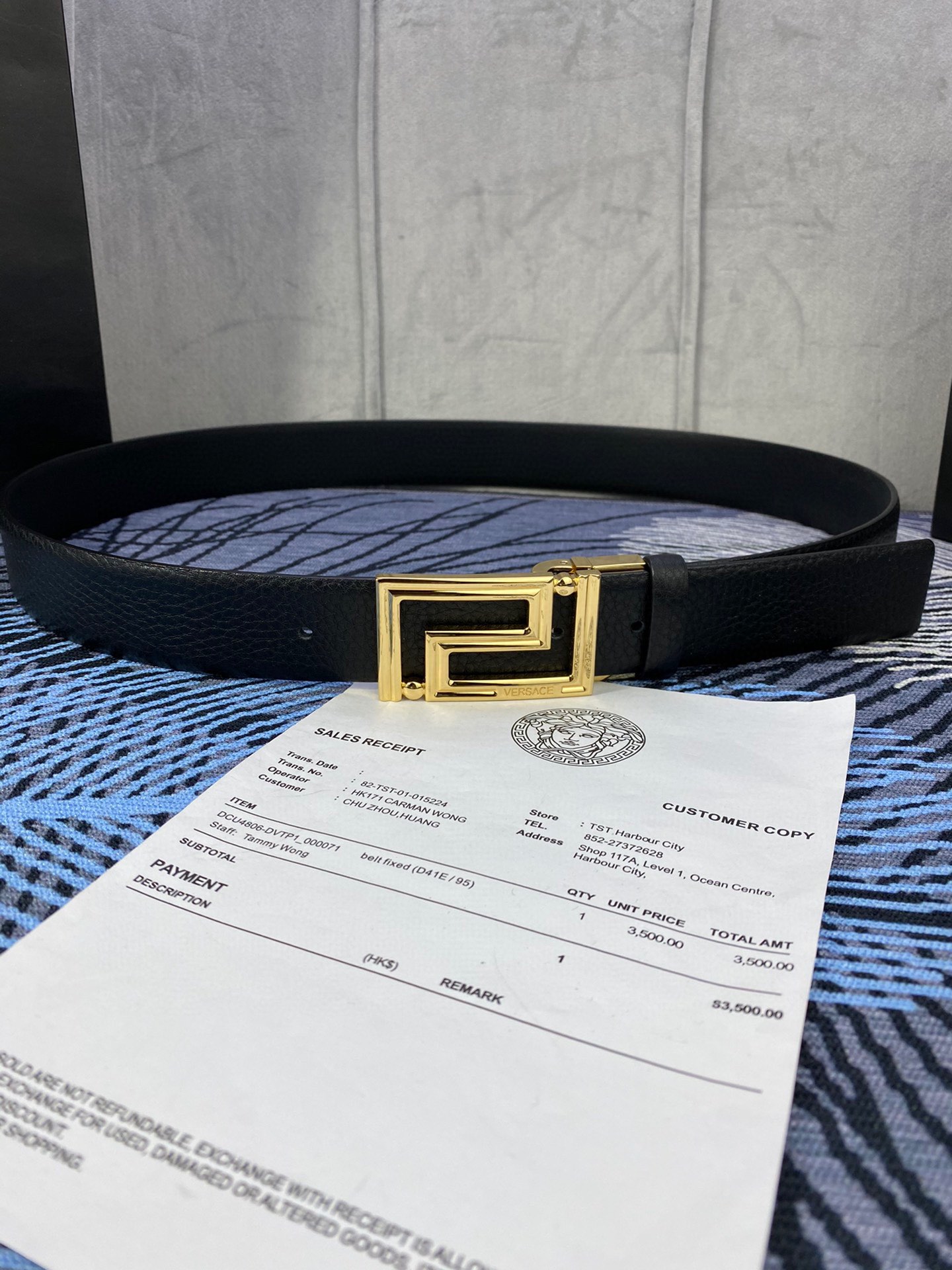 这款皮带是AAAAA 1:1 质量 (非常棒). 使用了和原版一模一样的材料. 商标部分也保持了和范思哲/Versace一样. 图片拍摄是实物皮带拍摄, 您所收到的实物保证和我们图片一模一样.