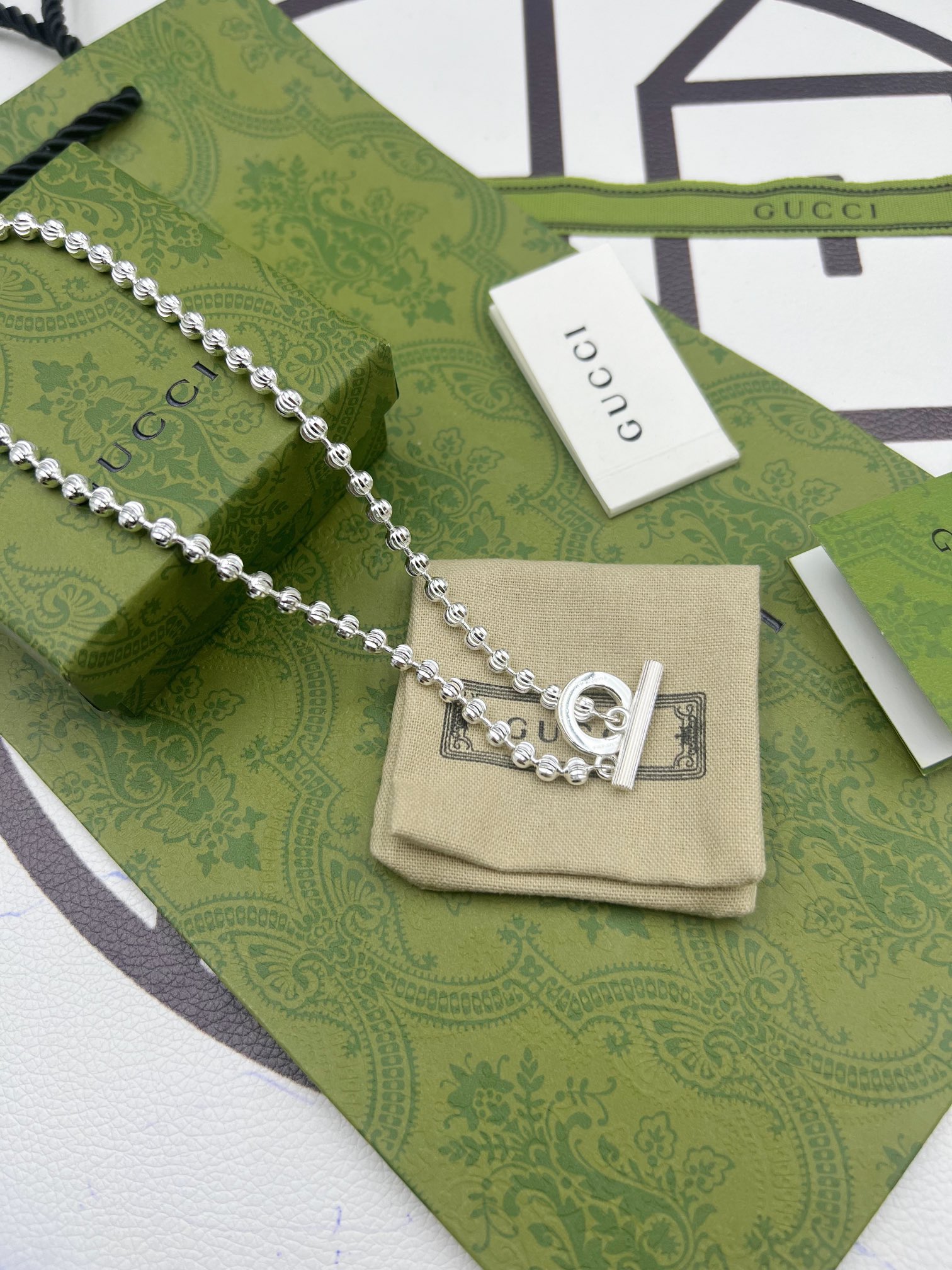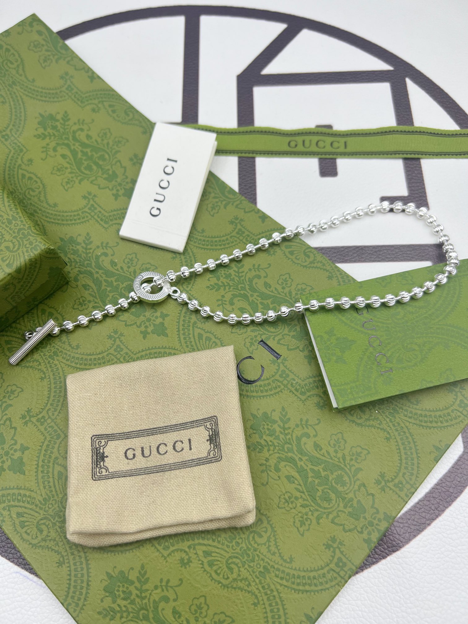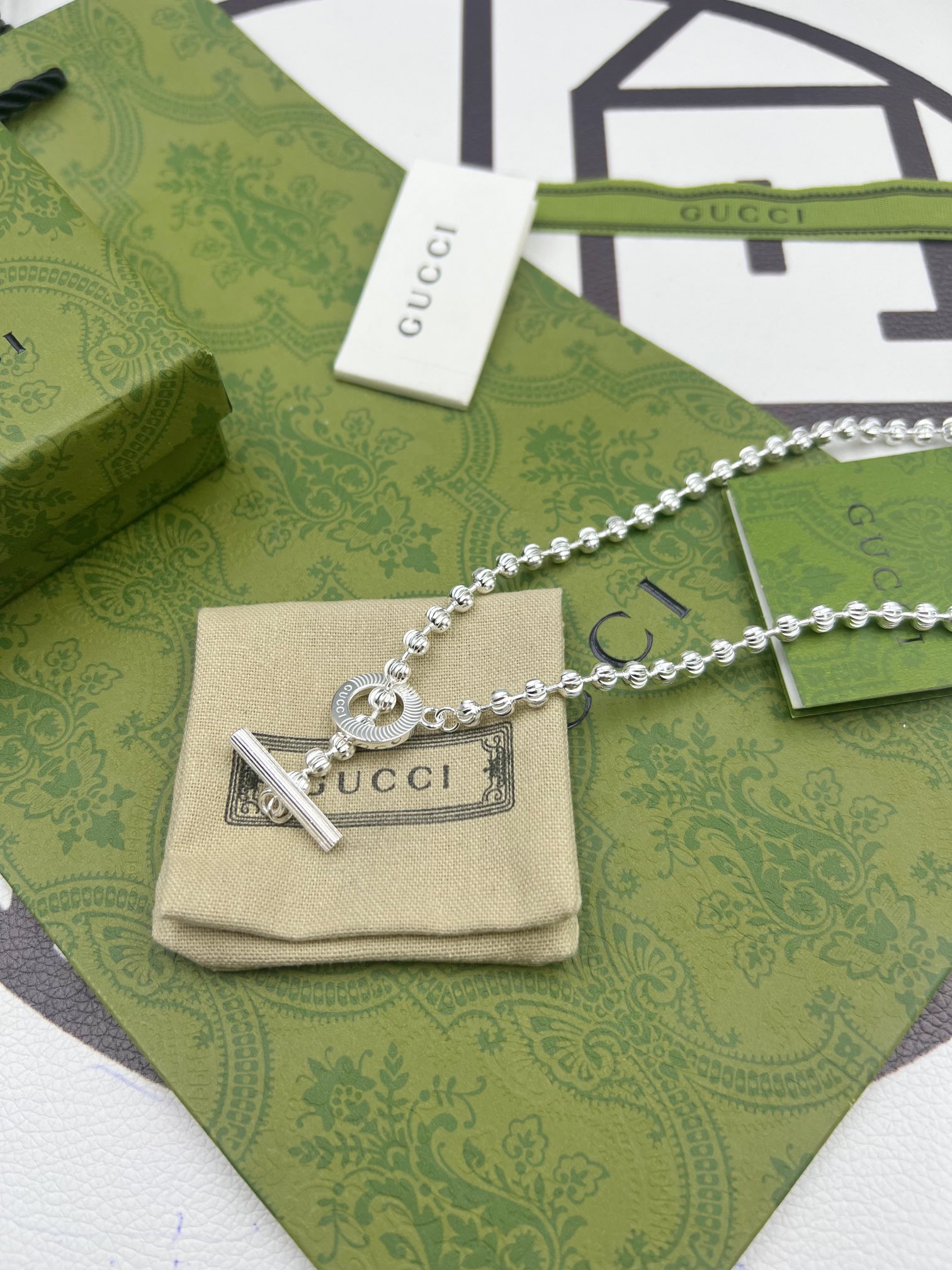 这款首饰是AAAAA 1:1 质量 (非常棒). 使用了和原版一模一样的材料. 商标部分也保持了和古奇/Gucci一样. 图片拍摄是实物首饰拍摄, 您所收到的实物保证和我们图片一模一样.