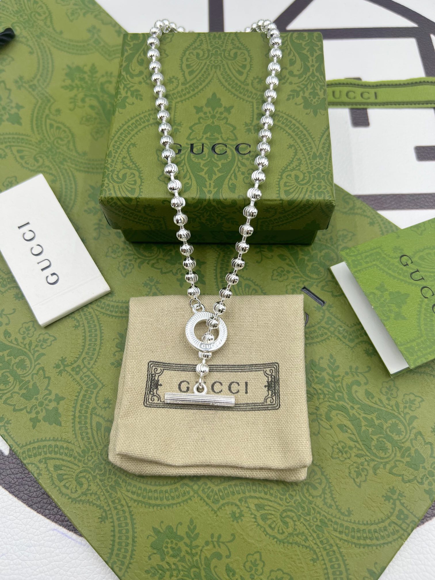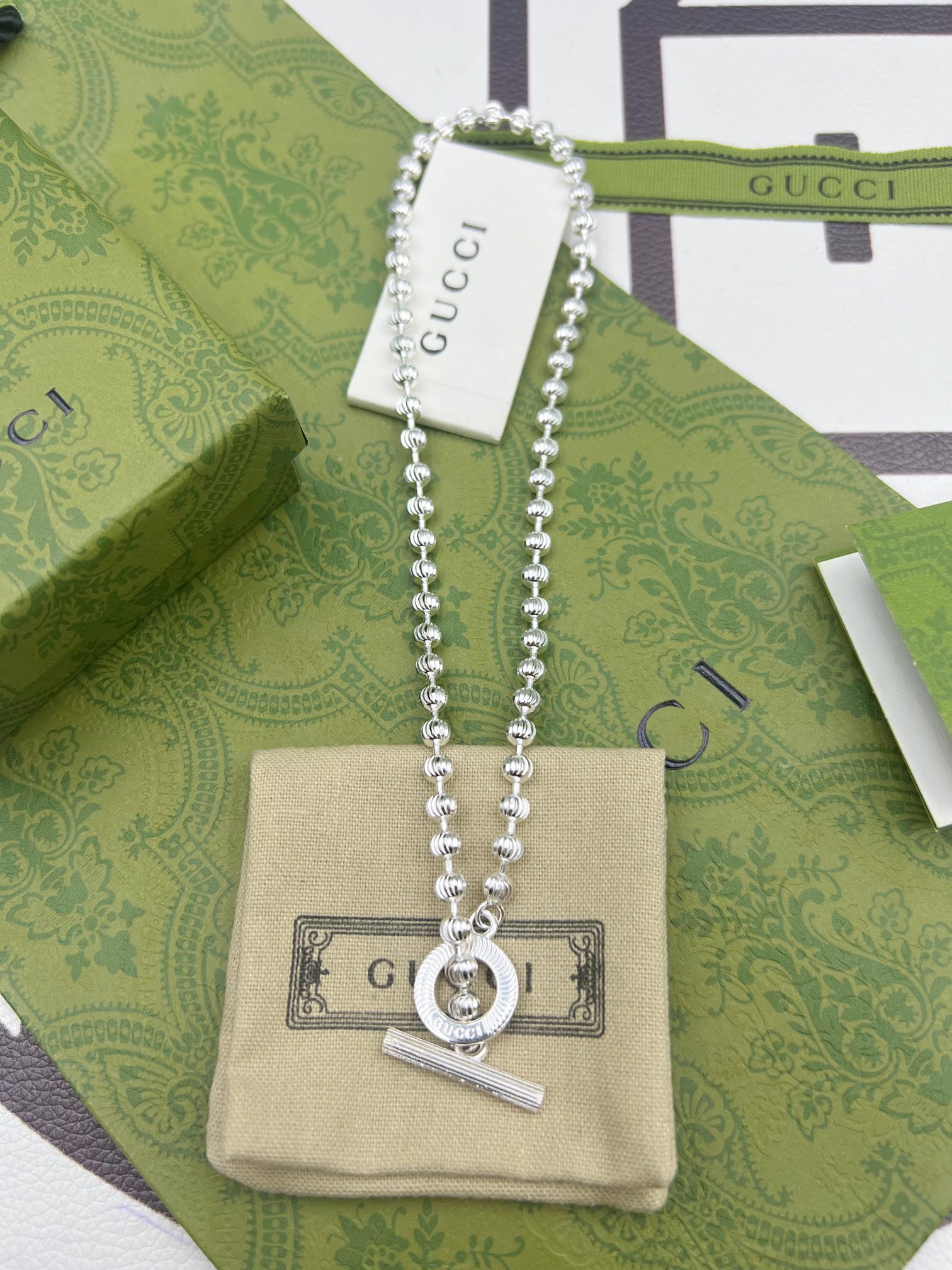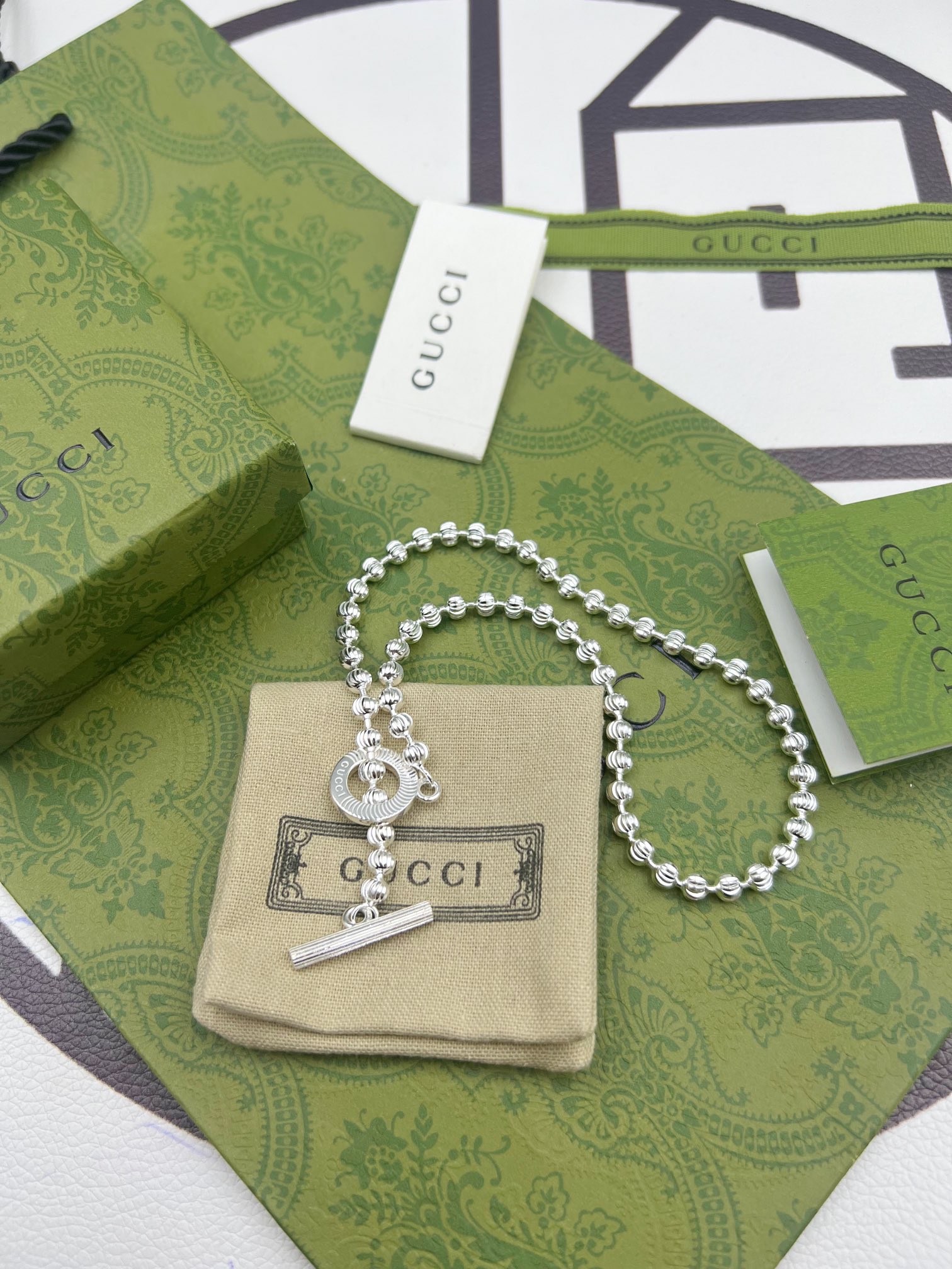 这款首饰是AAAAA 1:1 质量 (非常棒). 使用了和原版一模一样的材料. 商标部分也保持了和古奇/Gucci一样. 图片拍摄是实物首饰拍摄, 您所收到的实物保证和我们图片一模一样.