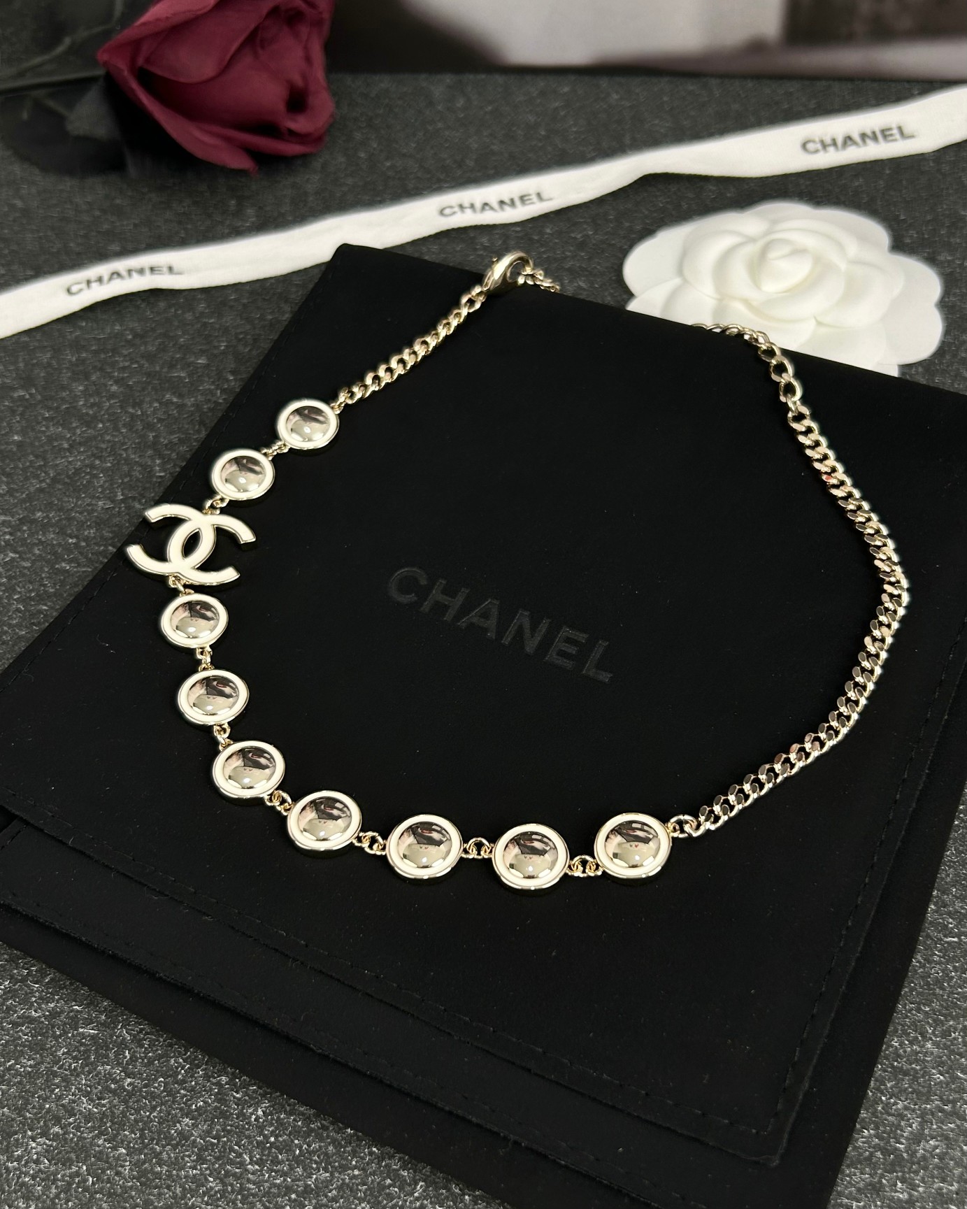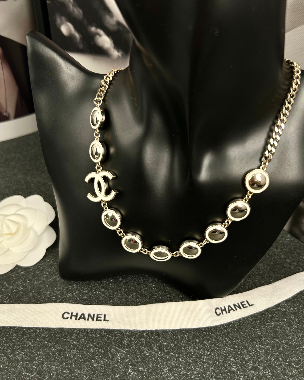 这款首饰是AAAAA 1:1 质量 (非常棒). 使用了和原版一模一样的材料. 商标部分也保持了和香奈儿/Chanel一样. 图片拍摄是实物首饰拍摄, 您所收到的实物保证和我们图片一模一样.
