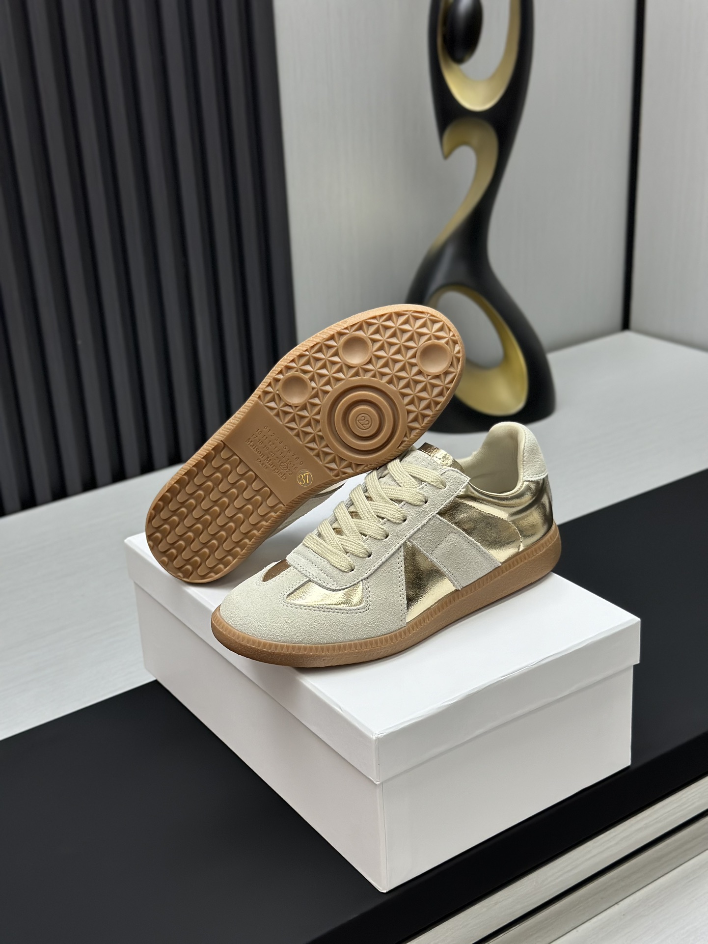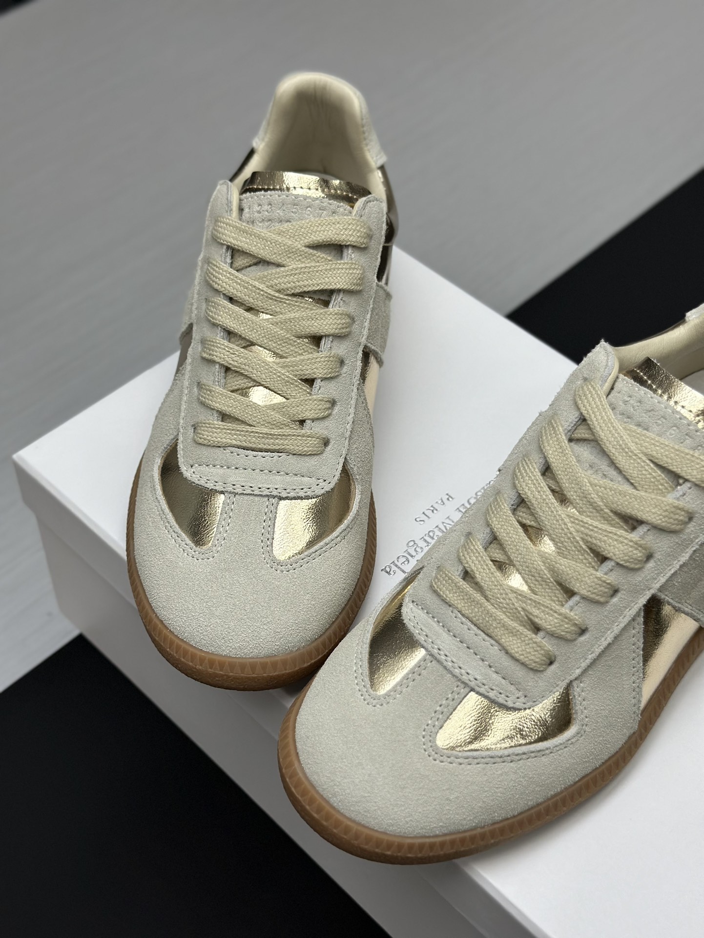 这款鞋子是AAAAA 1:1 质量 (非常棒). 使用了和原版一模一样的材料. 商标部分也保持了和Maison Margiela一样. 图片拍摄是实物鞋子拍摄, 您所收到的实物保证和我们图片一模一样.