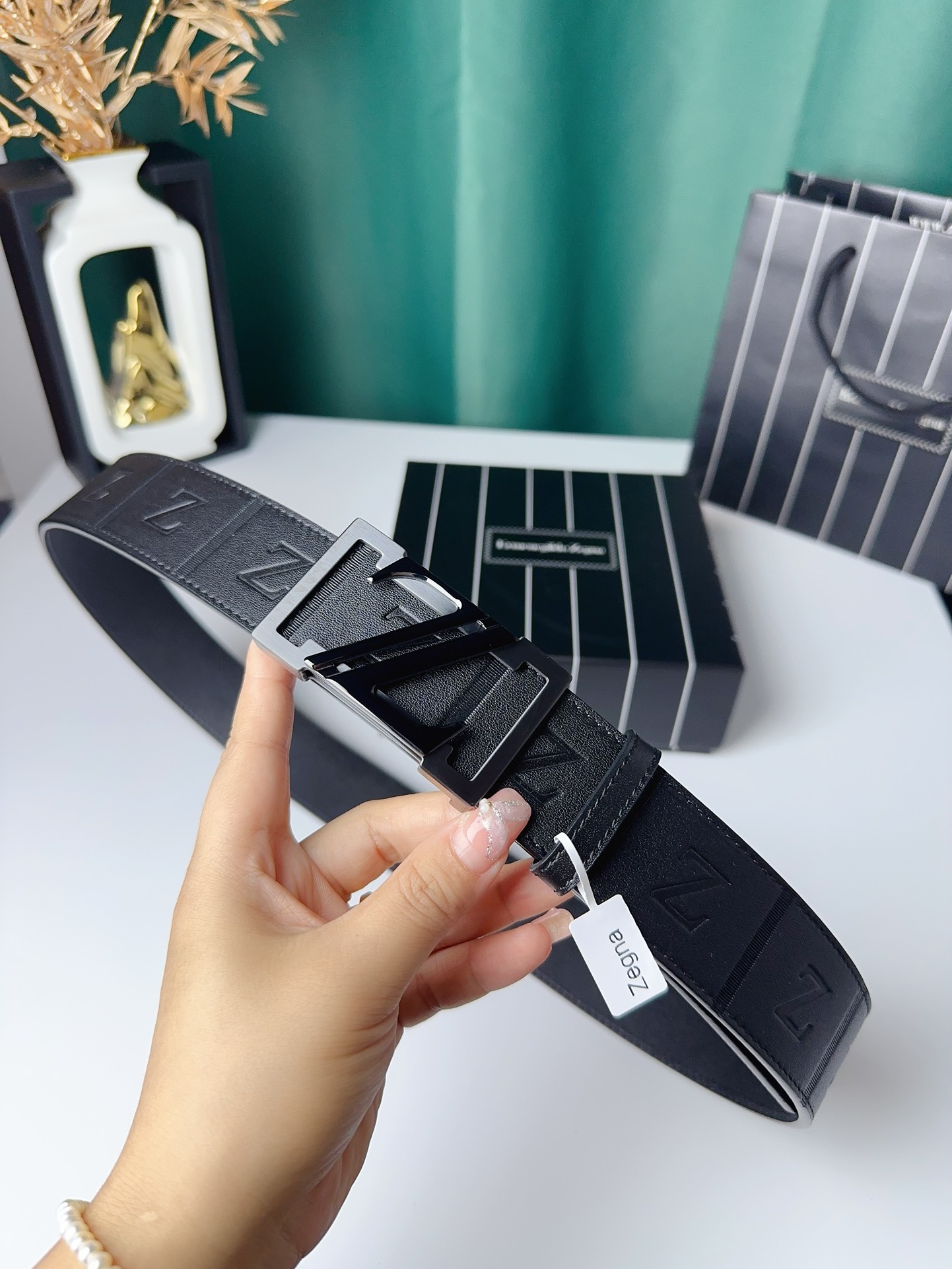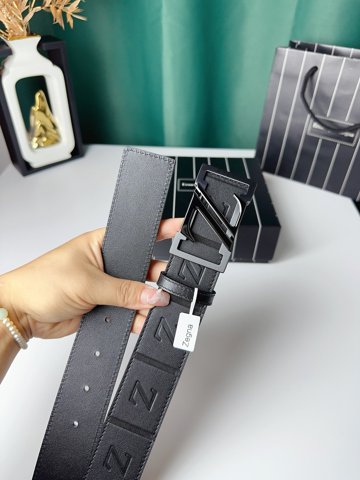 这款皮带是AAAAA 1:1 质量 (非常棒). 使用了和原版一模一样的材料. 商标部分也保持了和杰尼亚/Zegna一样. 图片拍摄是实物皮带拍摄, 您所收到的实物保证和我们图片一模一样.