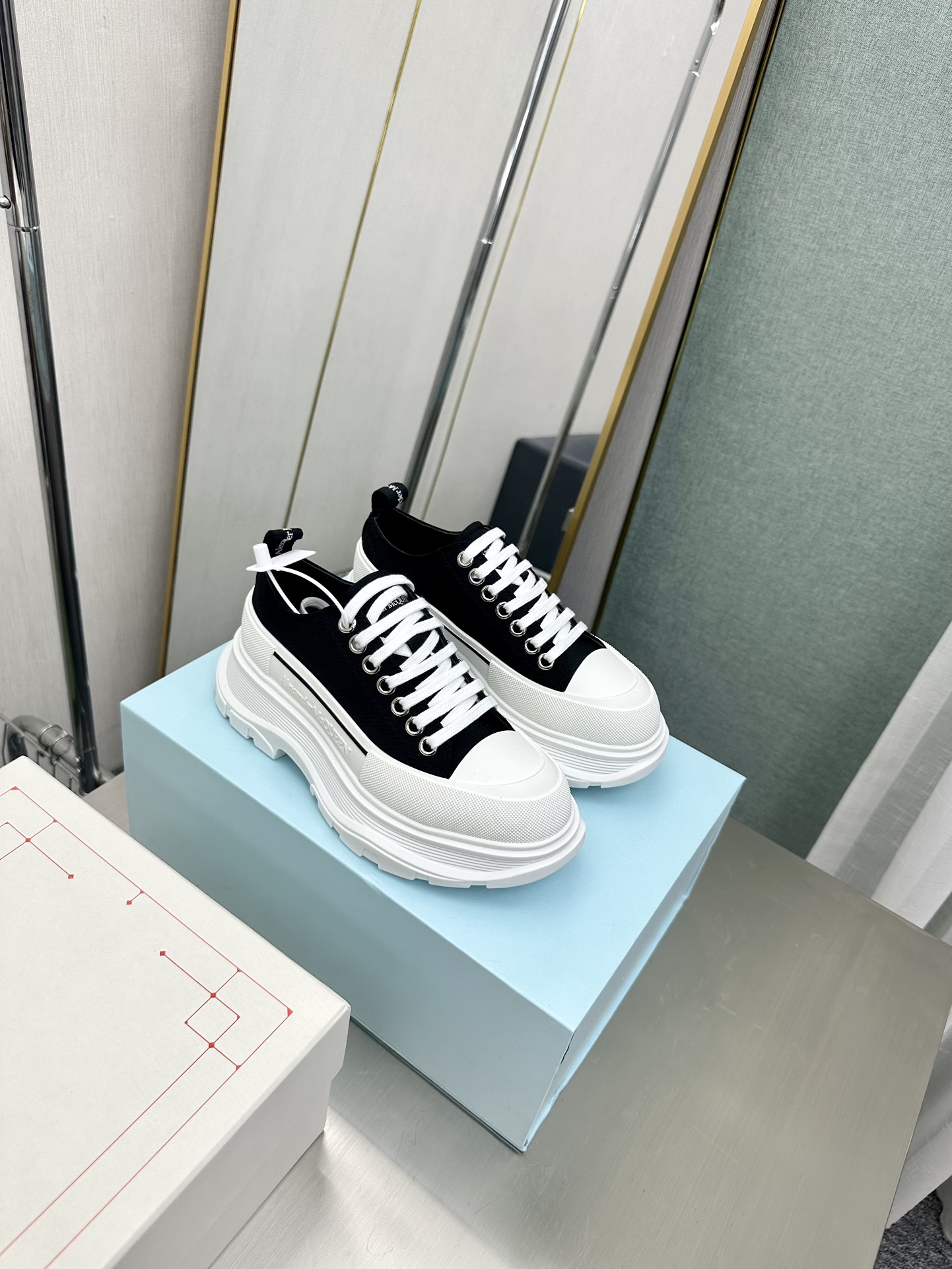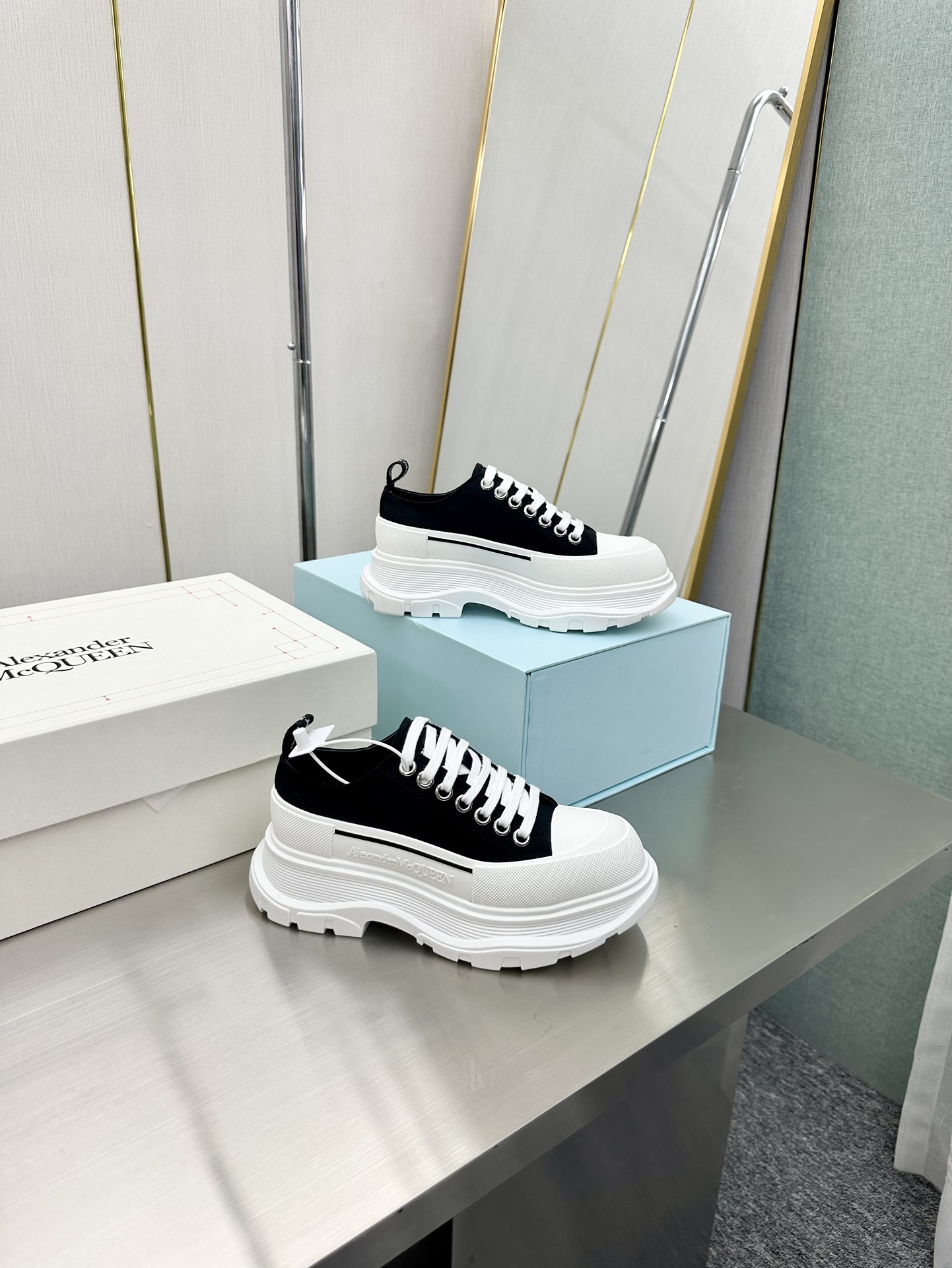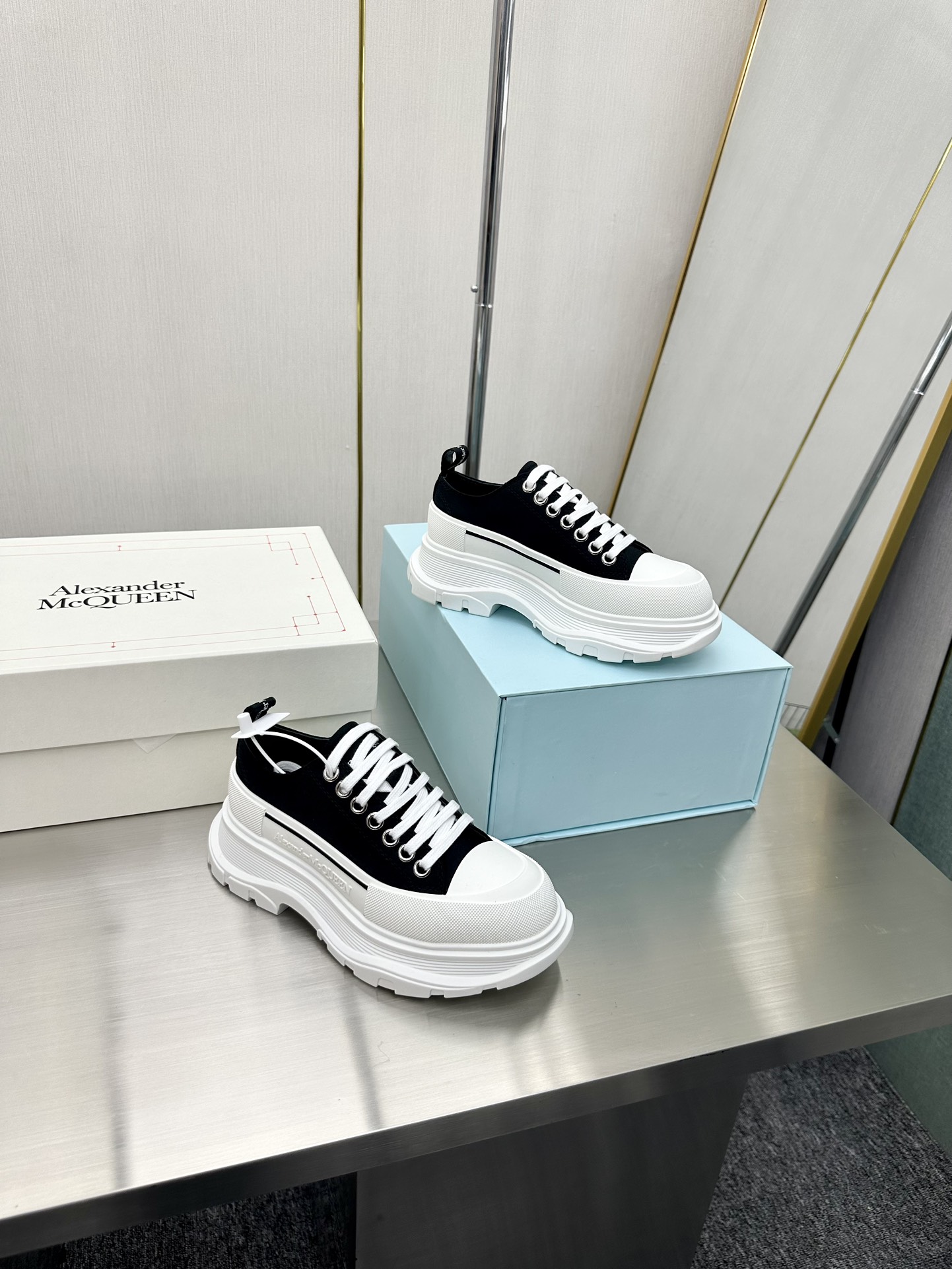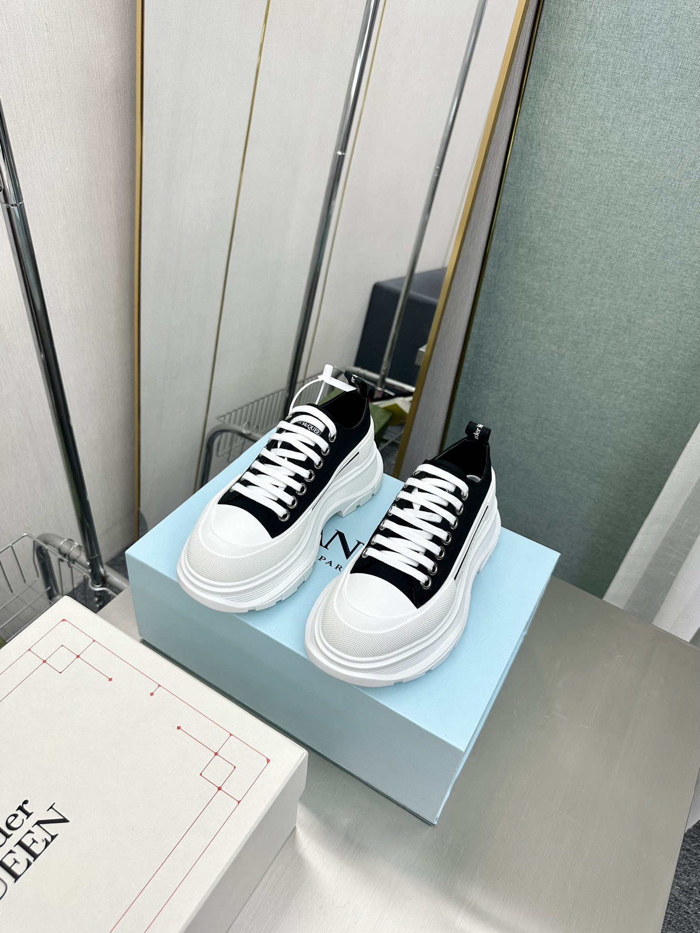 这款鞋子是AAAAA 1:1 质量 (非常棒). 使用了和原版一模一样的材料. 商标部分也保持了和亚历山大·麦昆/McQueen一样. 图片拍摄是实物鞋子拍摄, 您所收到的实物保证和我们图片一模一样.