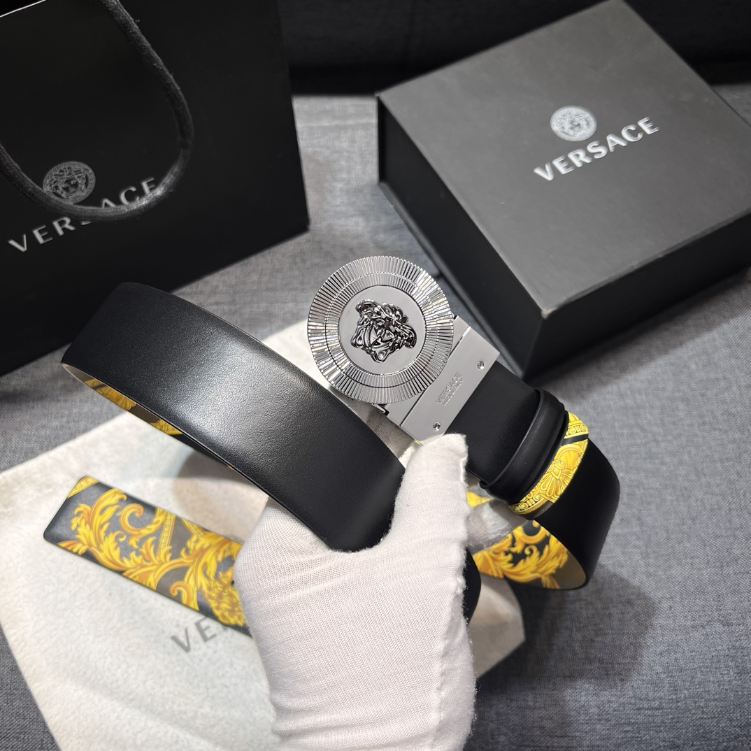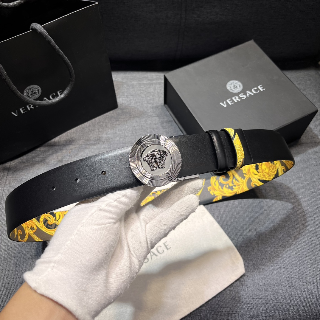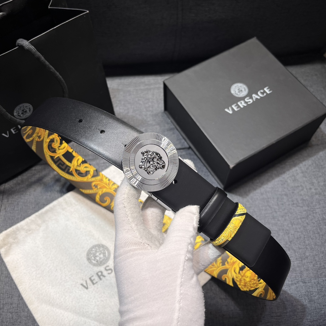 这款皮带是AAAAA 1:1 质量 (非常棒). 使用了和原版一模一样的材料. 商标部分也保持了和范思哲/Versace一样. 图片拍摄是实物皮带拍摄, 您所收到的实物保证和我们图片一模一样.
