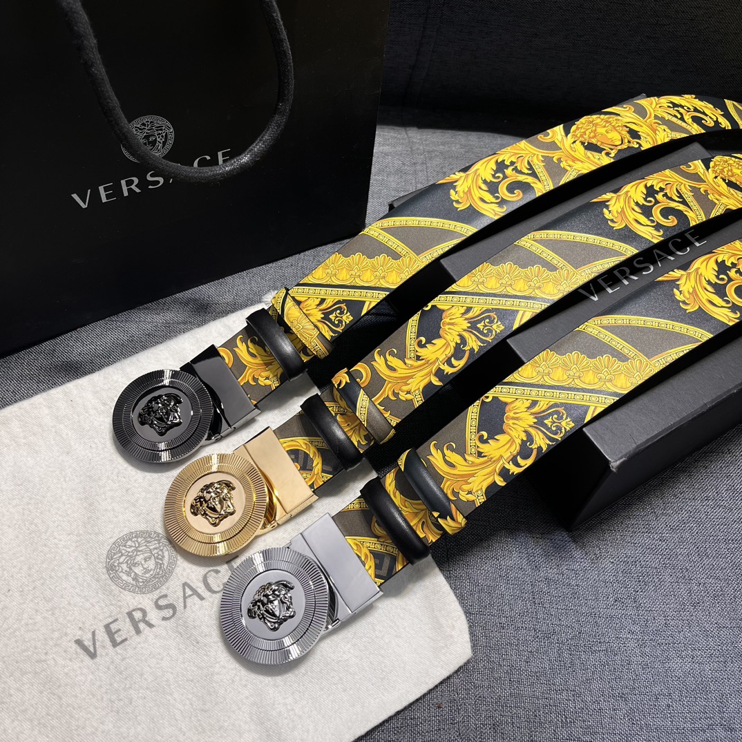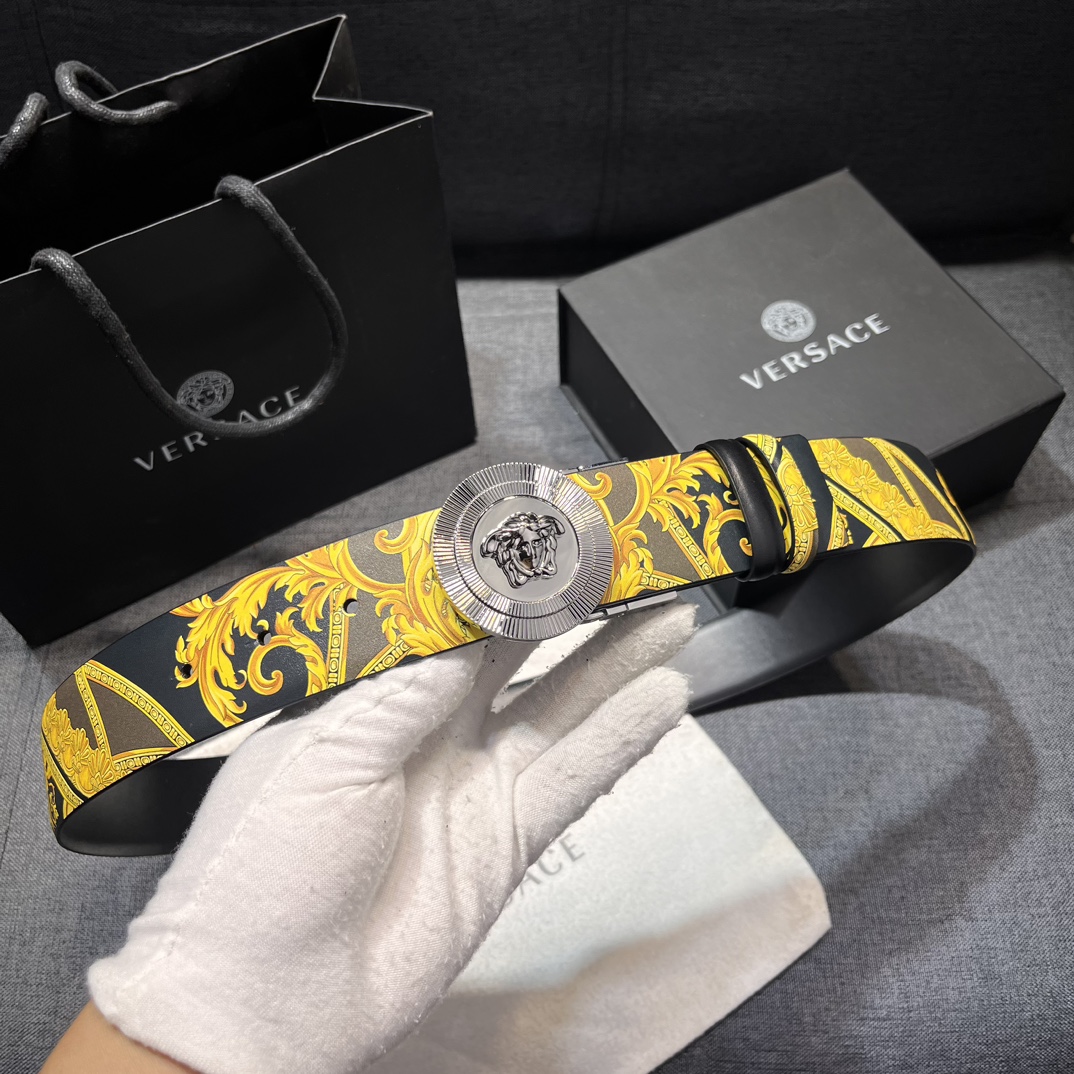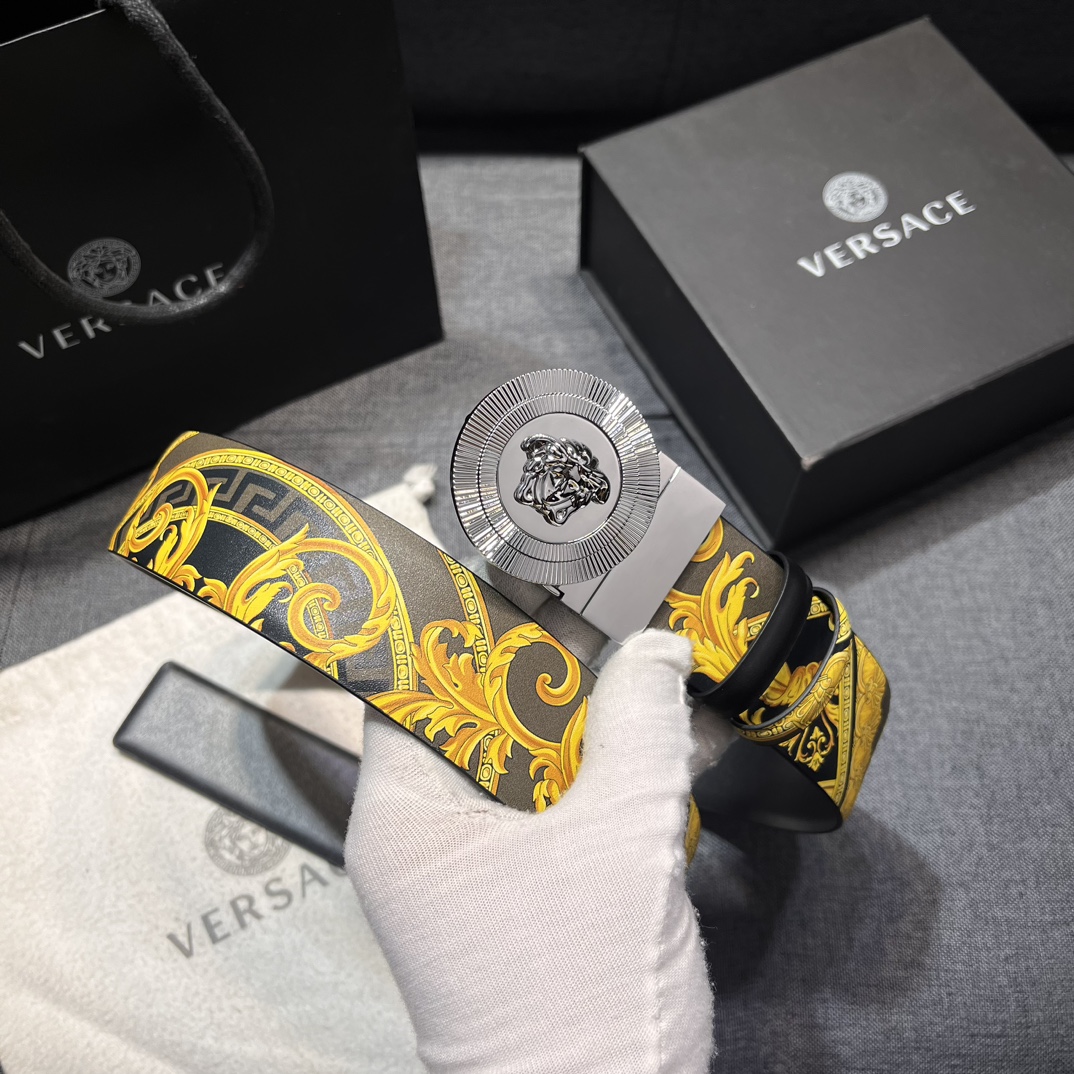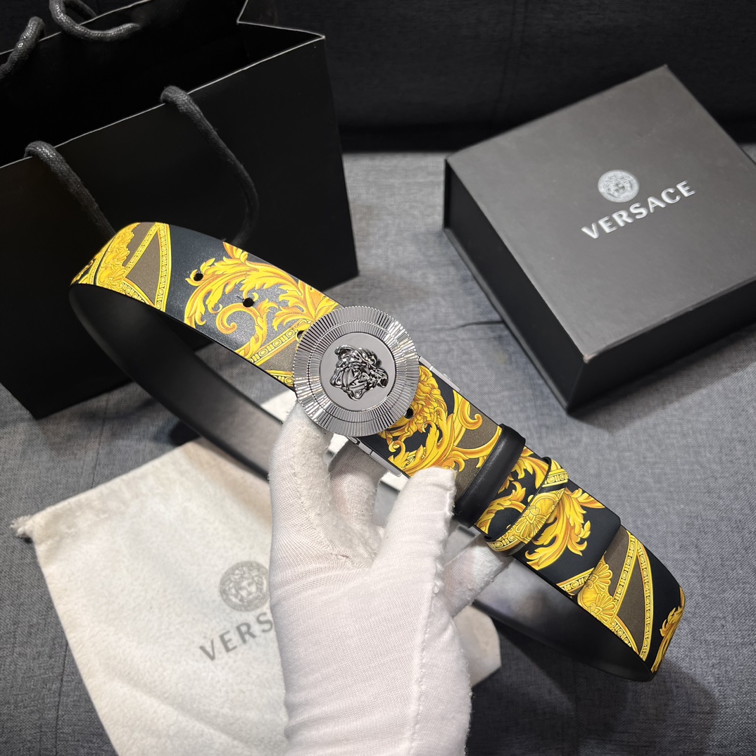 这款皮带是AAAAA 1:1 质量 (非常棒). 使用了和原版一模一样的材料. 商标部分也保持了和范思哲/Versace一样. 图片拍摄是实物皮带拍摄, 您所收到的实物保证和我们图片一模一样.