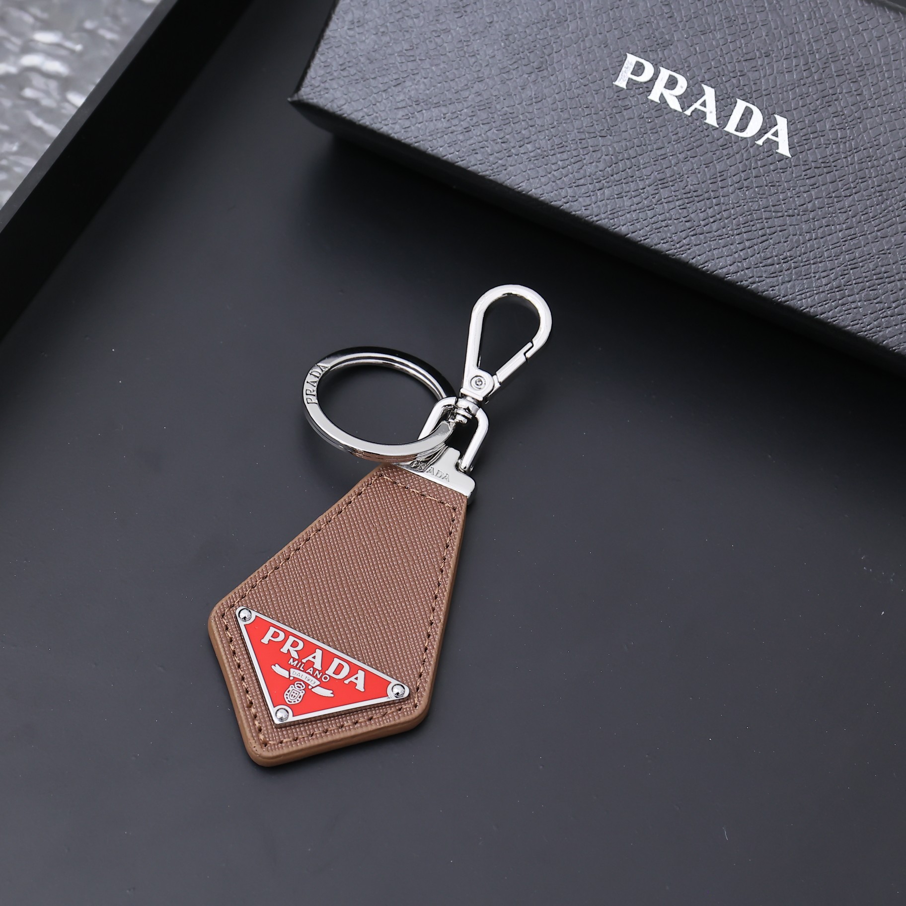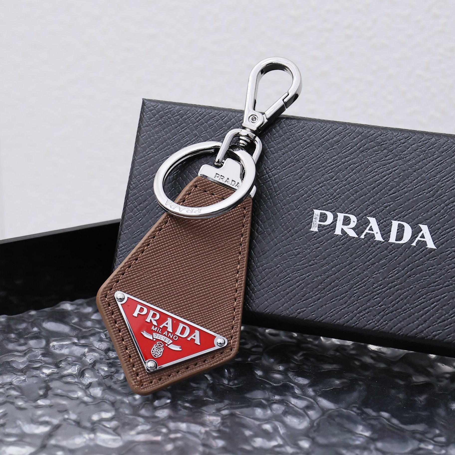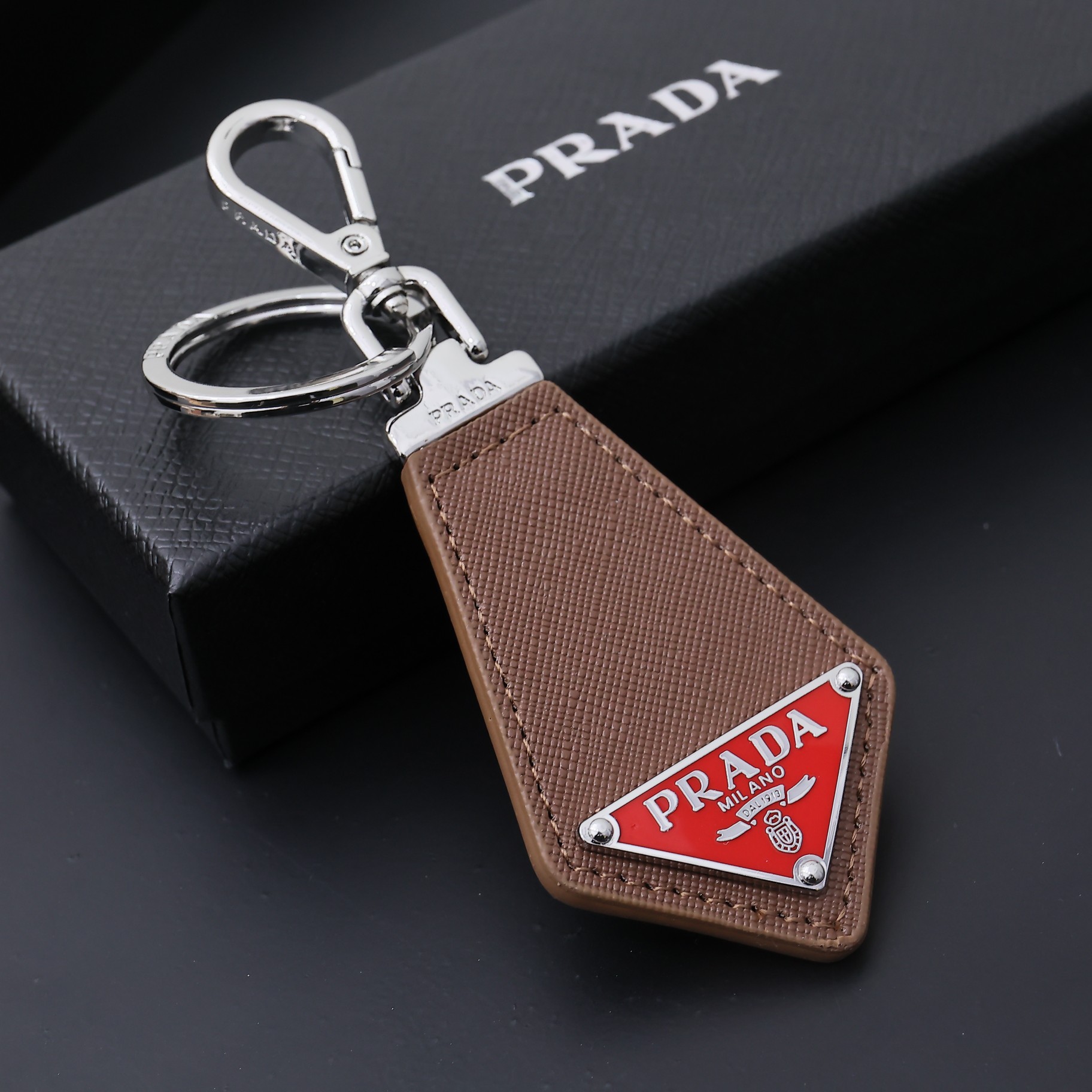 这款keychain是AAAAA 1:1 质量 (非常棒). 使用了和原版一模一样的材料. 商标部分也保持了和普拉达/Prada一样. 图片拍摄是实物keychain拍摄, 您所收到的实物保证和我们图片一模一样.