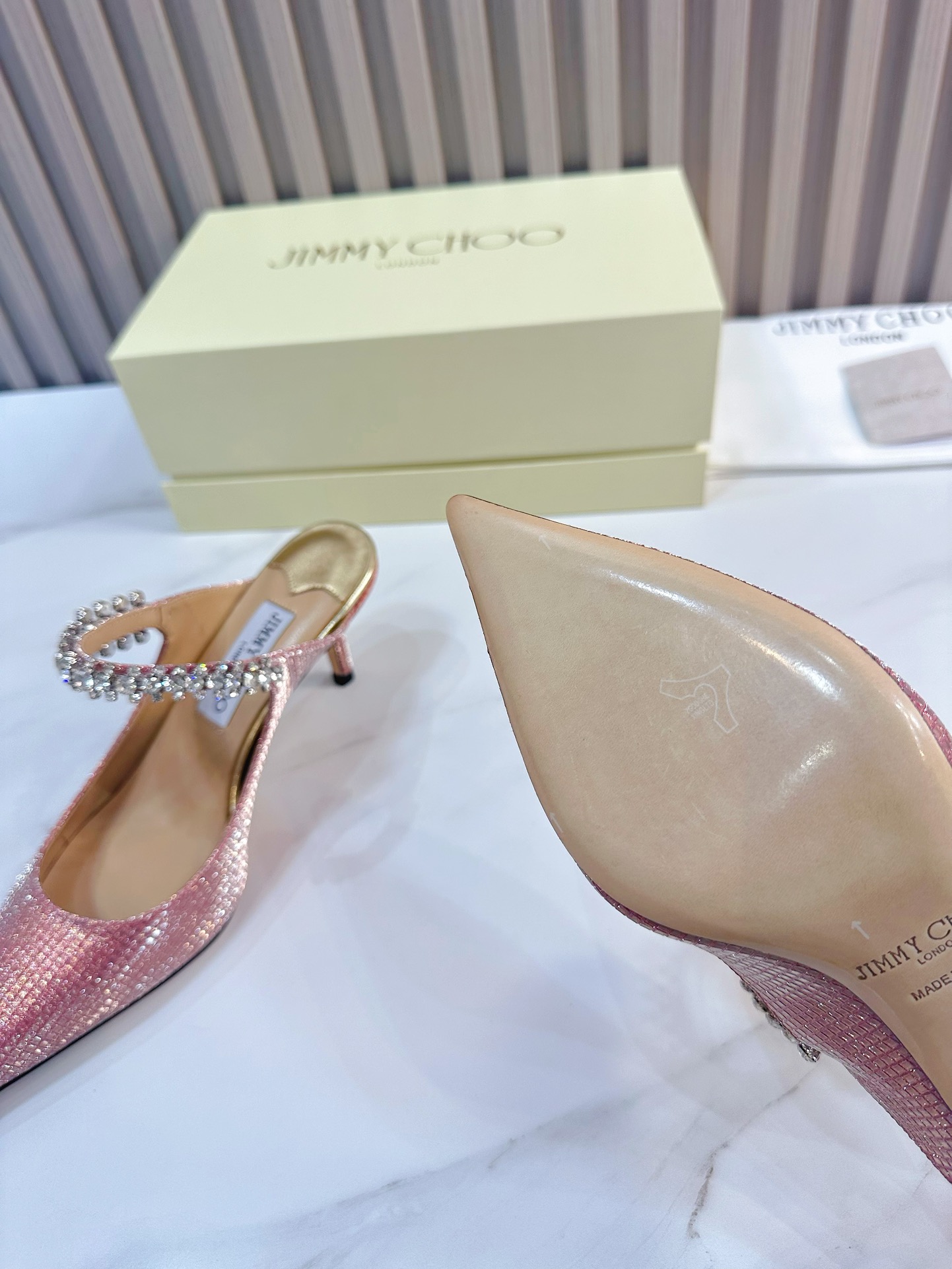这款鞋子是AAAAA 1:1 质量 (非常棒). 使用了和原版一模一样的材料. 商标部分也保持了和吉米乔/JIMMY CHOO一样. 图片拍摄是实物鞋子拍摄, 您所收到的实物保证和我们图片一模一样.