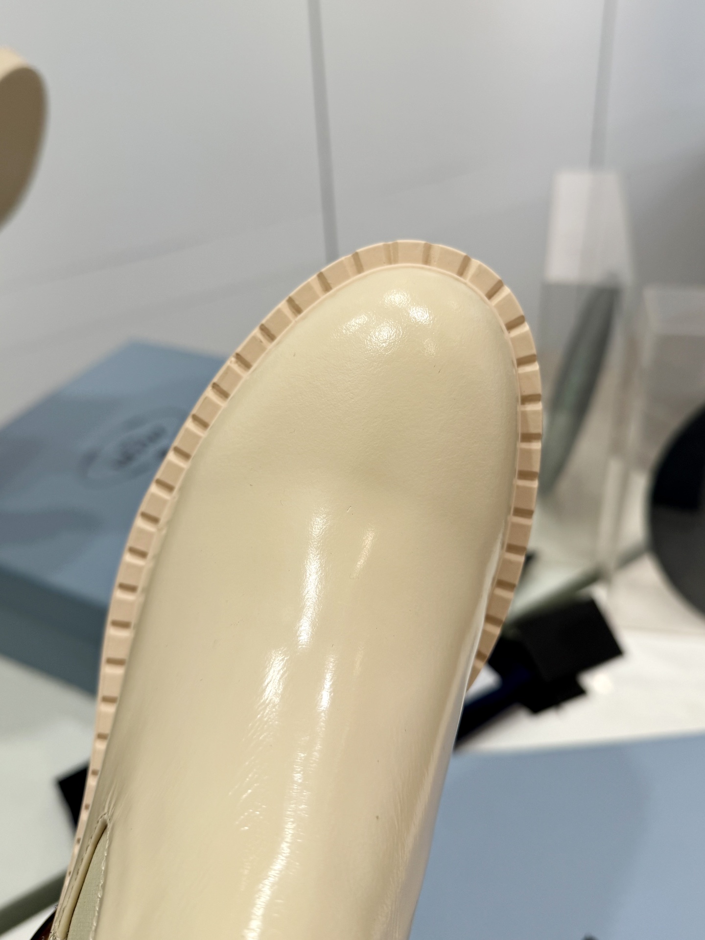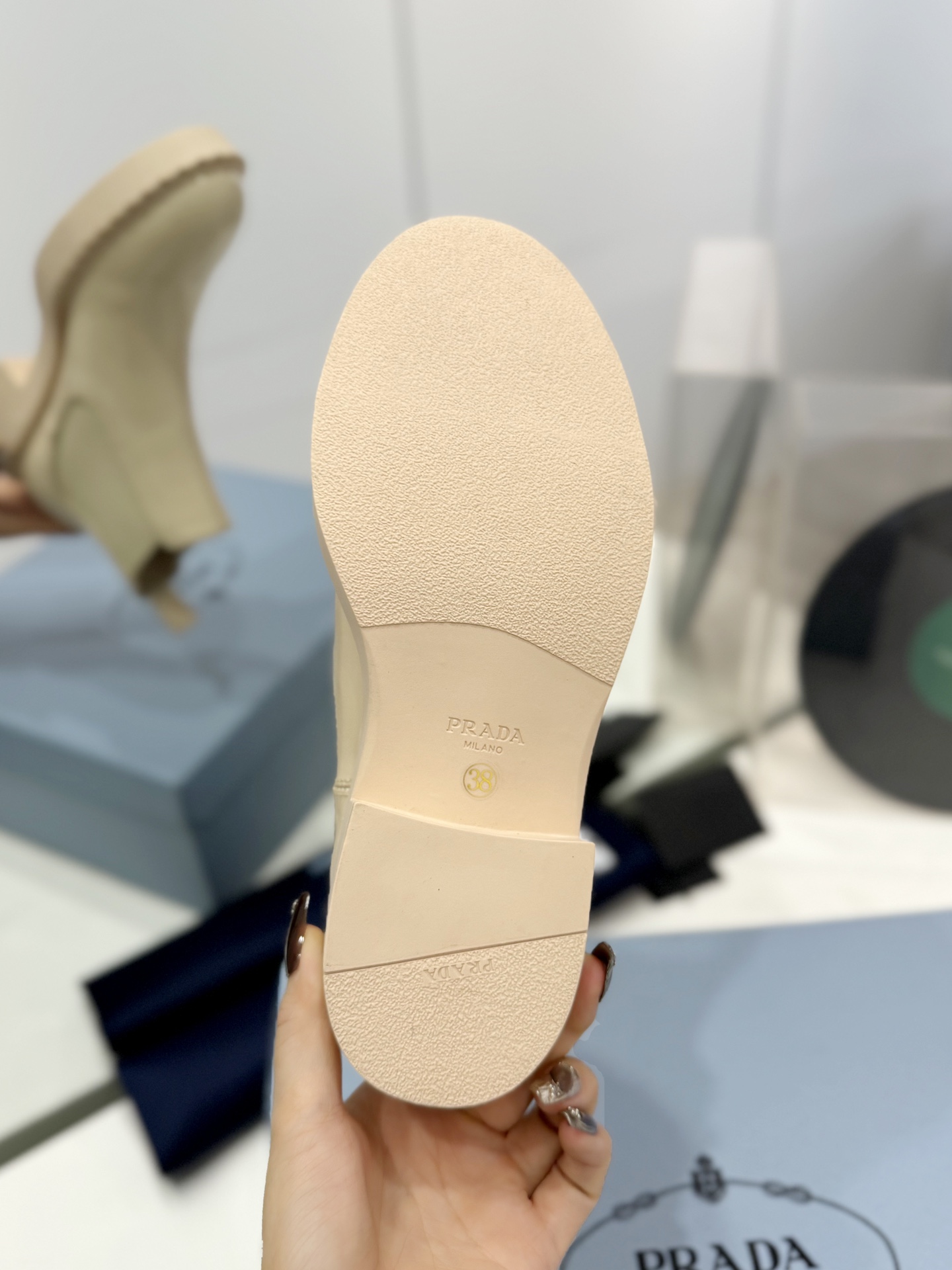 这款鞋子是AAAAA 1:1 质量 (非常棒). 使用了和原版一模一样的材料. 商标部分也保持了和普拉达/Prada一样. 图片拍摄是实物鞋子拍摄, 您所收到的实物保证和我们图片一模一样.