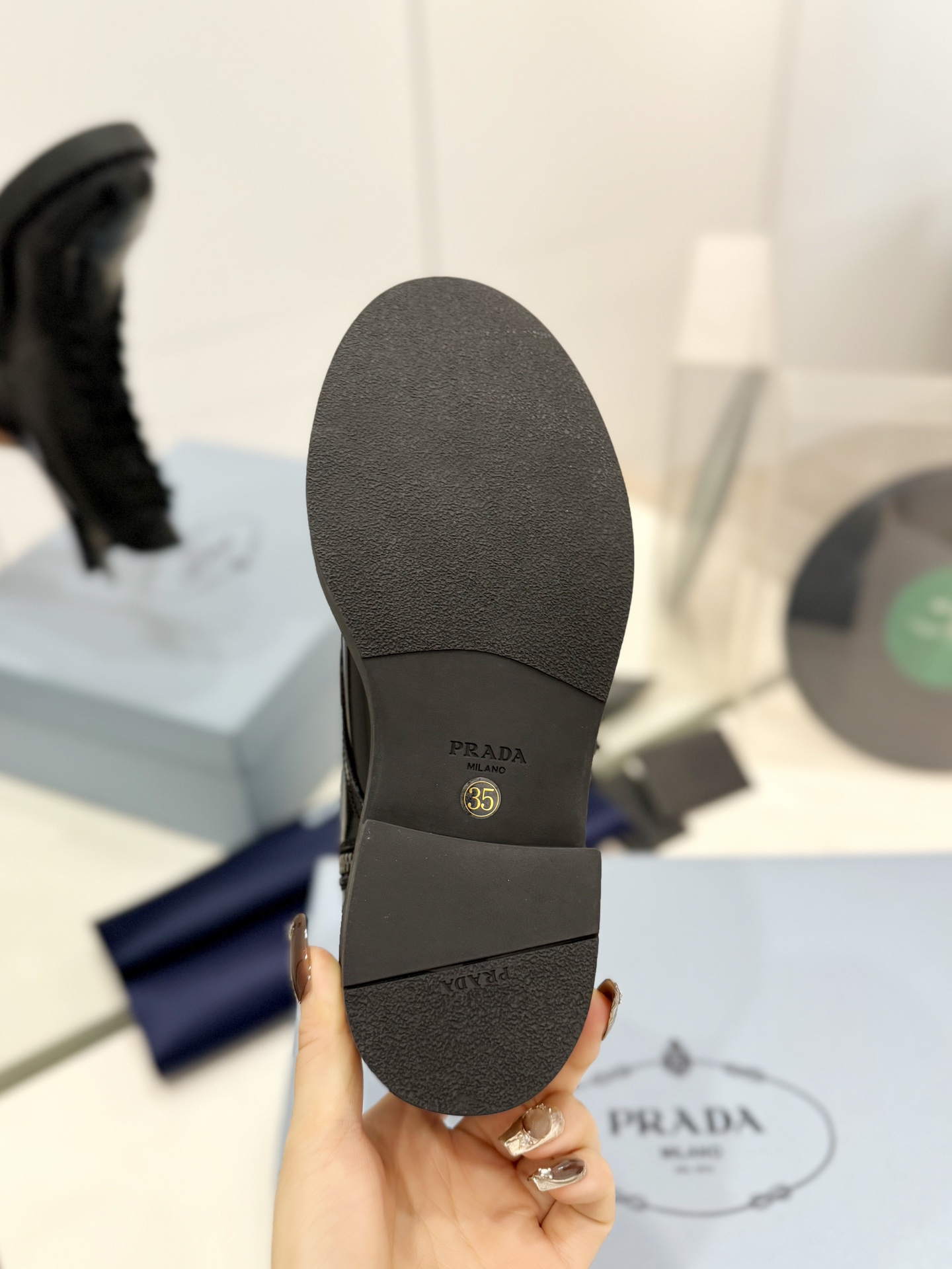 这款鞋子是AAAAA 1:1 质量 (非常棒). 使用了和原版一模一样的材料. 商标部分也保持了和普拉达/Prada一样. 图片拍摄是实物鞋子拍摄, 您所收到的实物保证和我们图片一模一样.