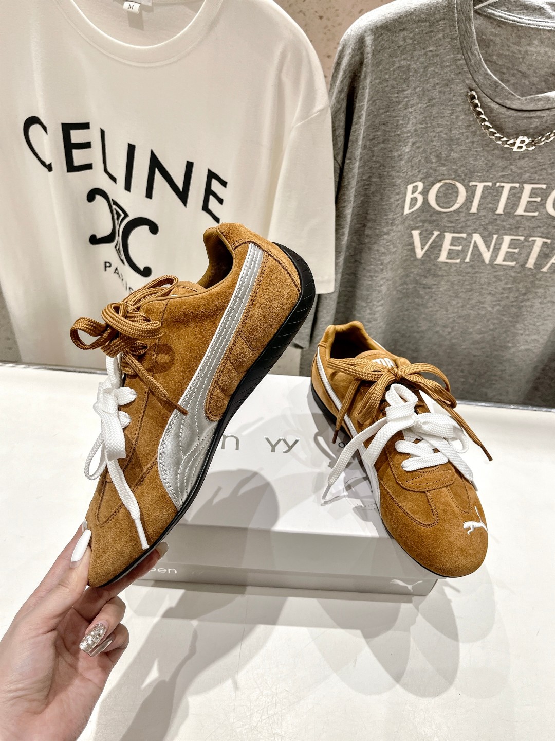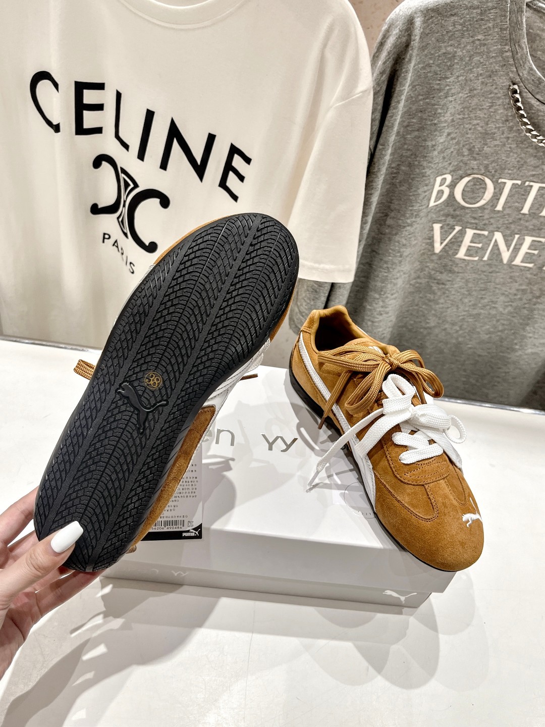这款鞋子是AAAAA 1:1 质量 (非常棒). 使用了和原版一模一样的材料. 商标部分也保持了和FENTY一样. 图片拍摄是实物鞋子拍摄, 您所收到的实物保证和我们图片一模一样.