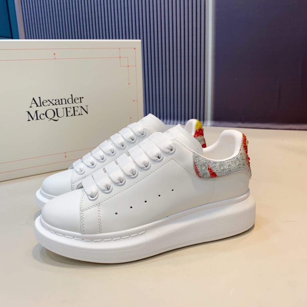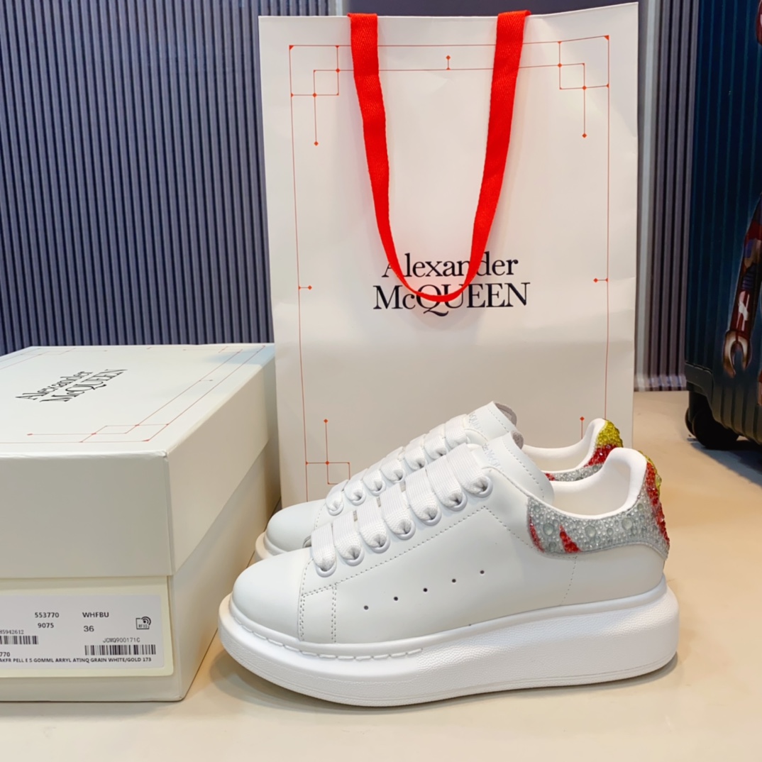 这款鞋子是AAAAA 1:1 质量 (非常棒). 使用了和原版一模一样的材料. 商标部分也保持了和亚历山大·麦昆/McQueen一样. 图片拍摄是实物鞋子拍摄, 您所收到的实物保证和我们图片一模一样.