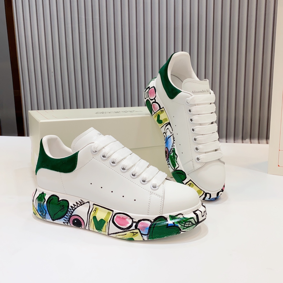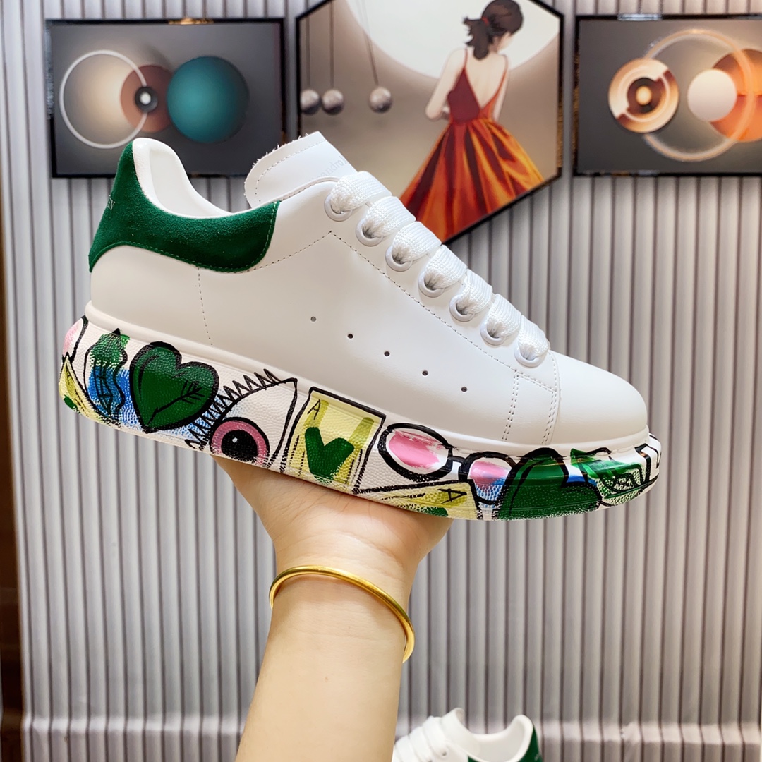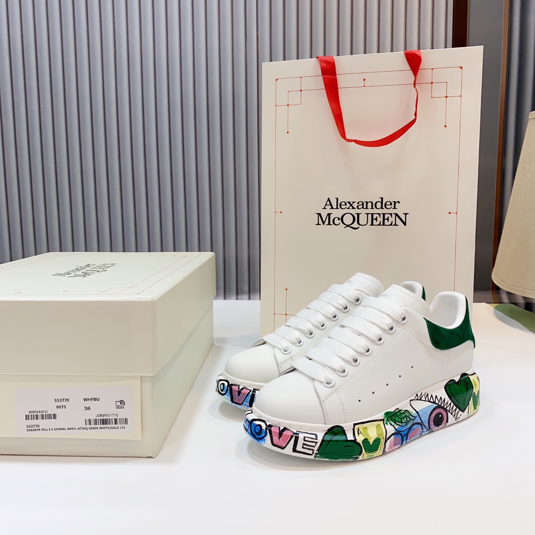 这款鞋子是AAAAA 1:1 质量 (非常棒). 使用了和原版一模一样的材料. 商标部分也保持了和亚历山大·麦昆/McQueen一样. 图片拍摄是实物鞋子拍摄, 您所收到的实物保证和我们图片一模一样.