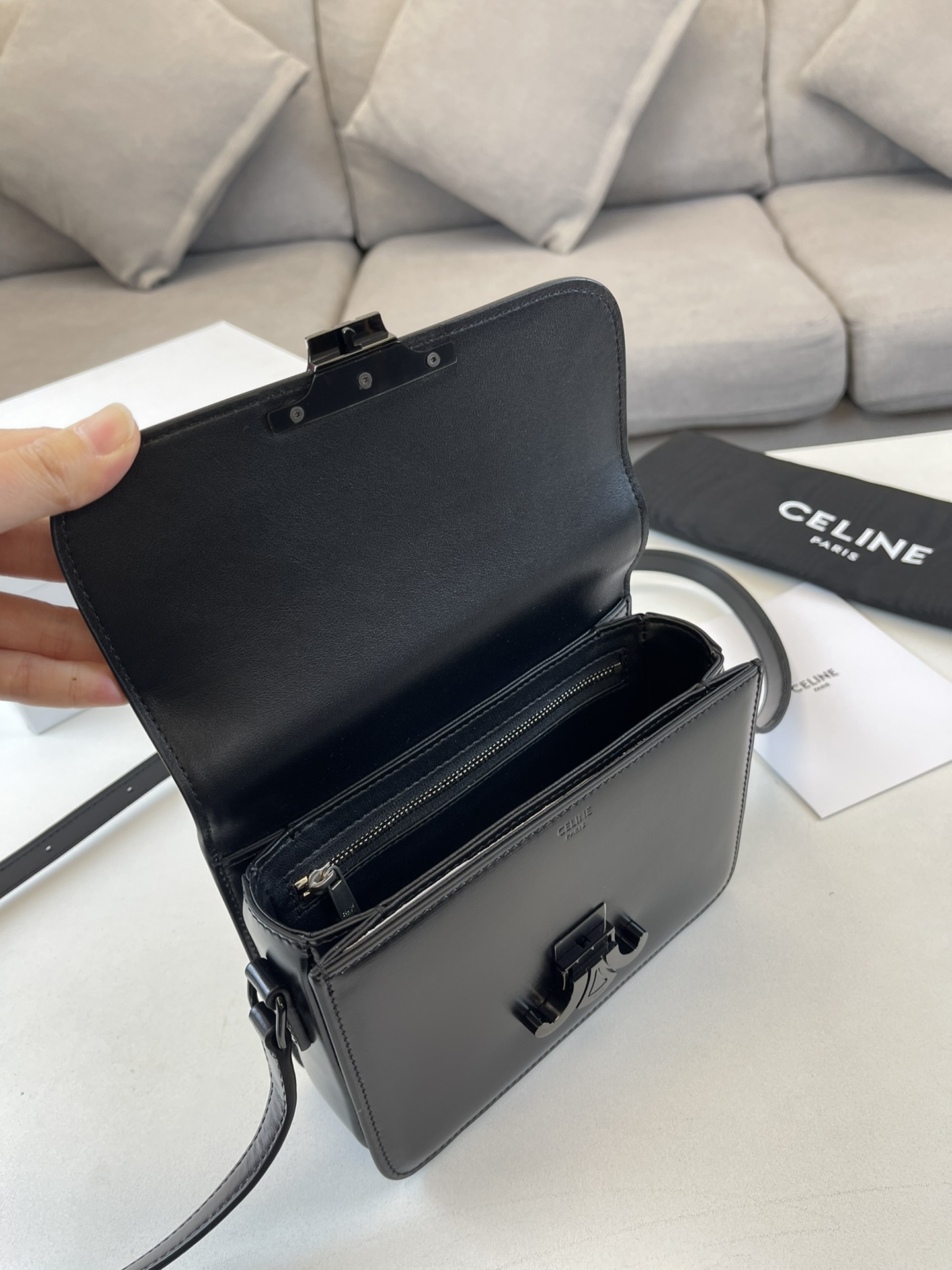 这款包包是AAAAA 1:1 质量 (非常棒). 使用了和原版一模一样的材料. 商标部分也保持了和思琳/Celine一样. 图片拍摄是实物包包拍摄, 您所收到的实物保证和我们图片一模一样.